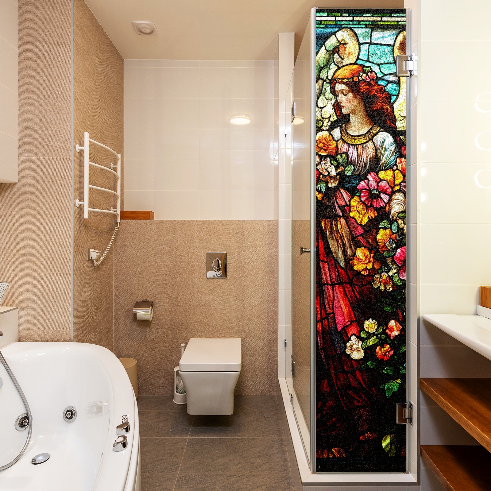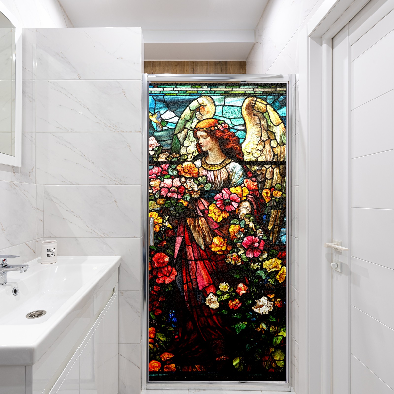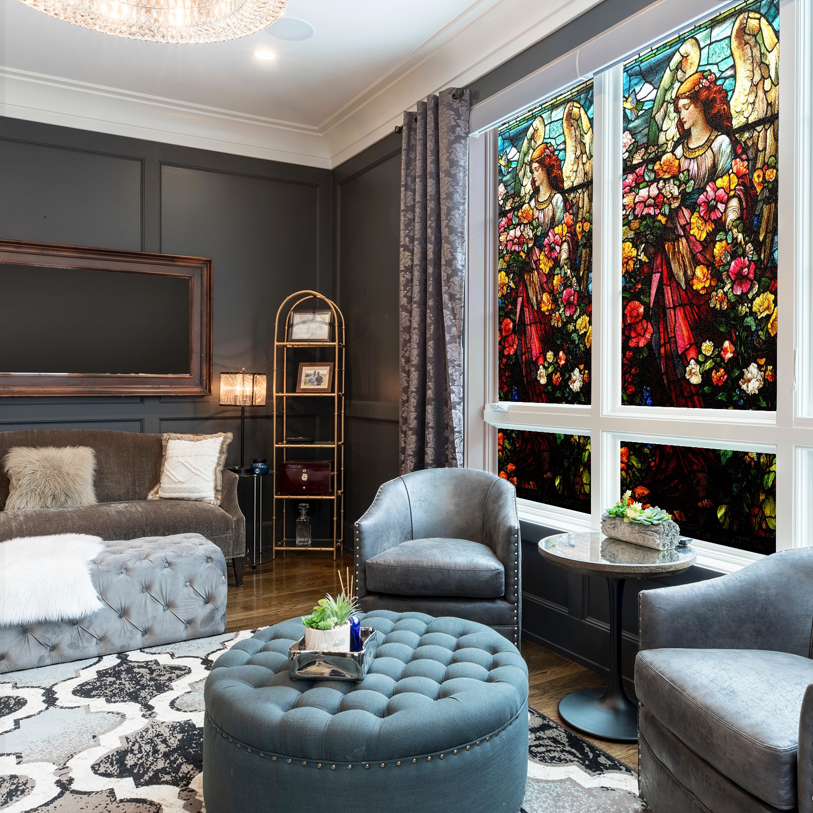 Window Privacy Film Decorative Window Decal Film Removable Static Cling Window Tint for Home Bedroom Sun Blocking Stickers 17.7 x 23.6 Inches Colorful Flower