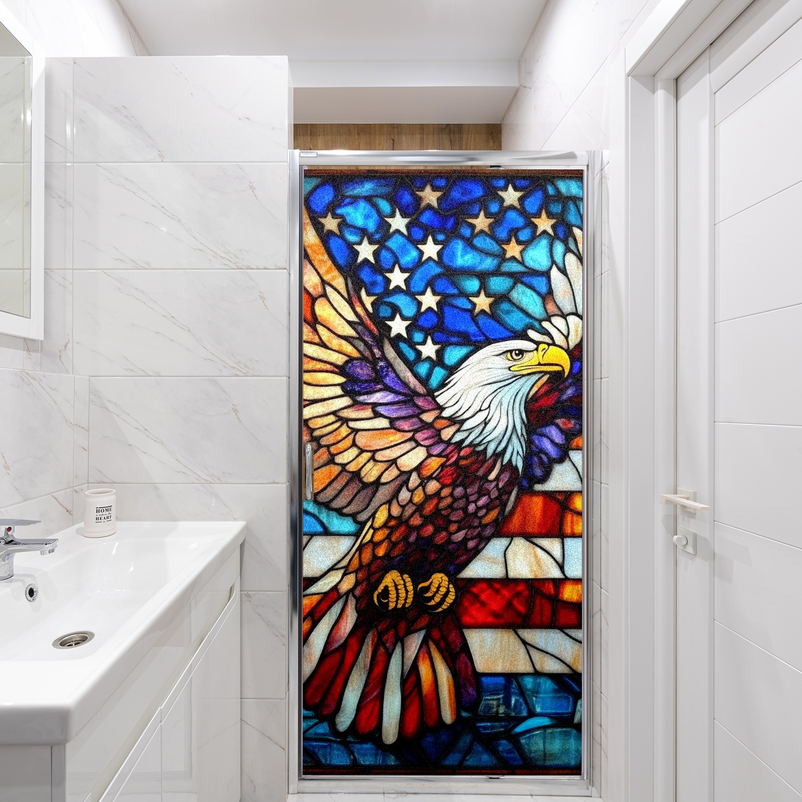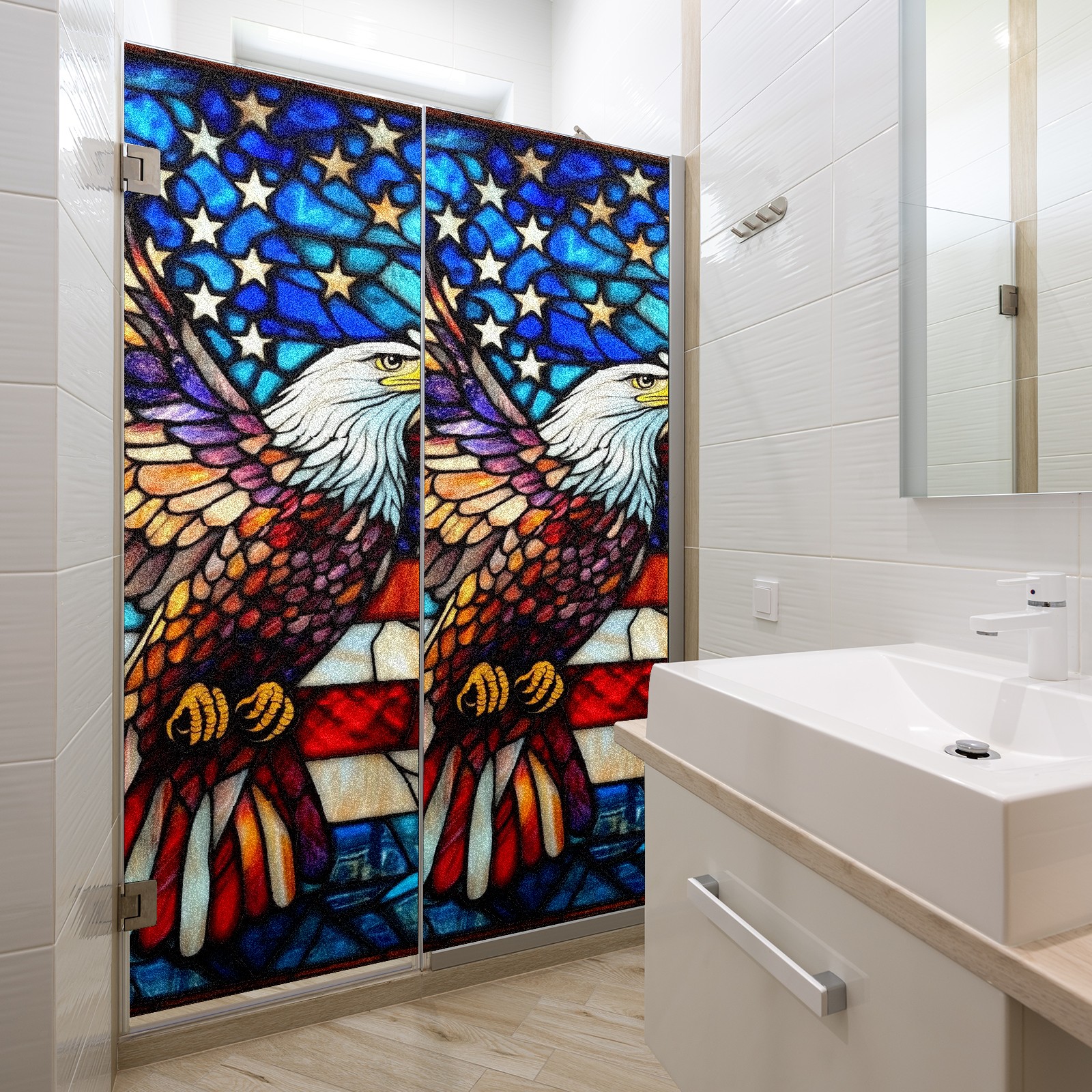 Window Privacy Film Decorative Window Decal Film Removable Static Cling Window Tint for Home Bedroom Sun Blocking Stickers 17.7 x 23.6 Inches American Flag And Flying Eagle