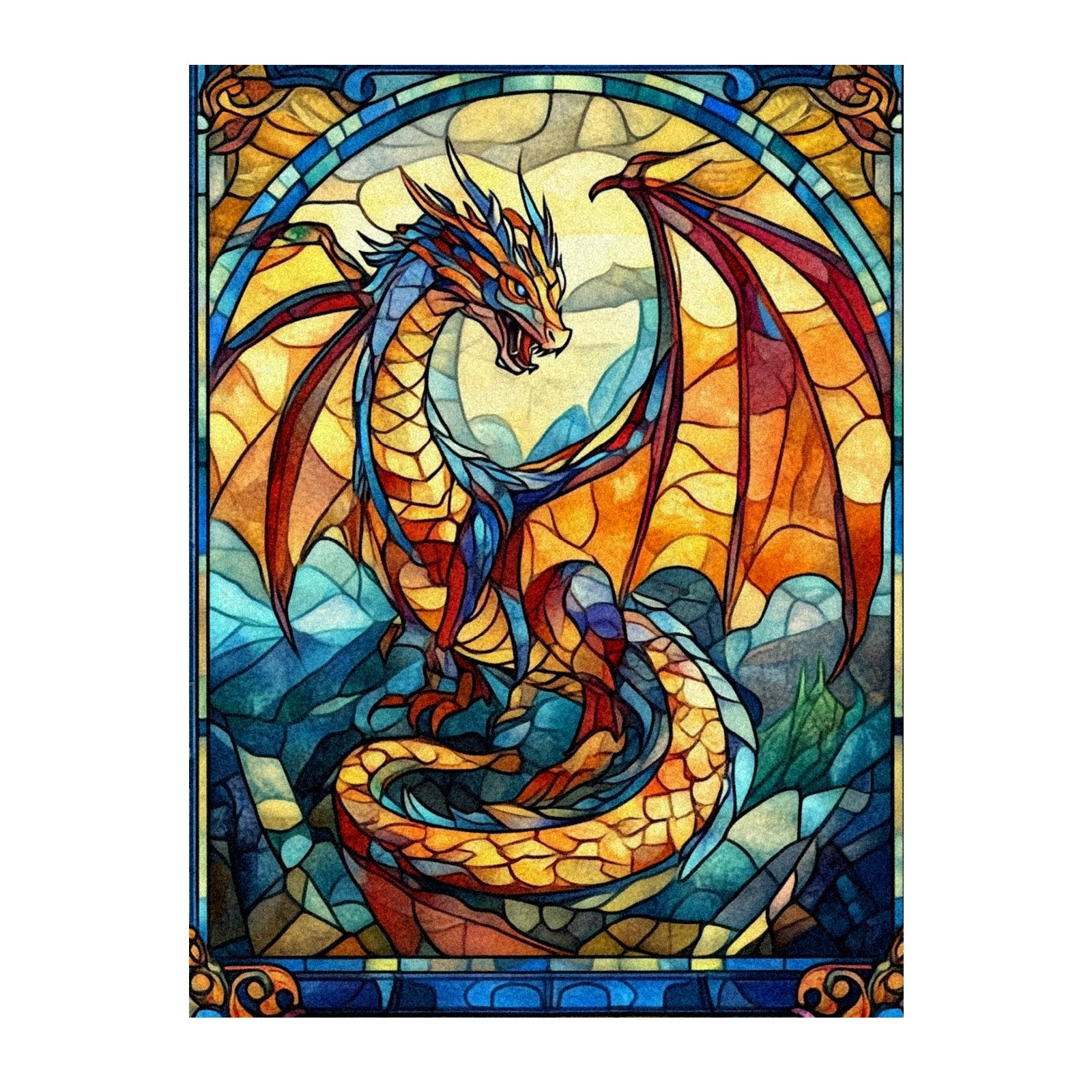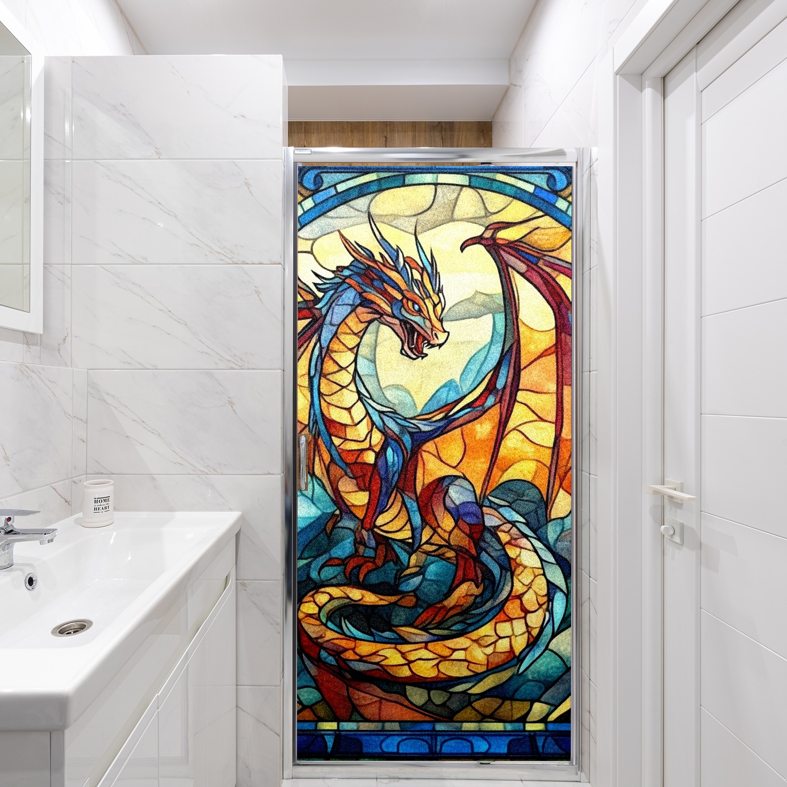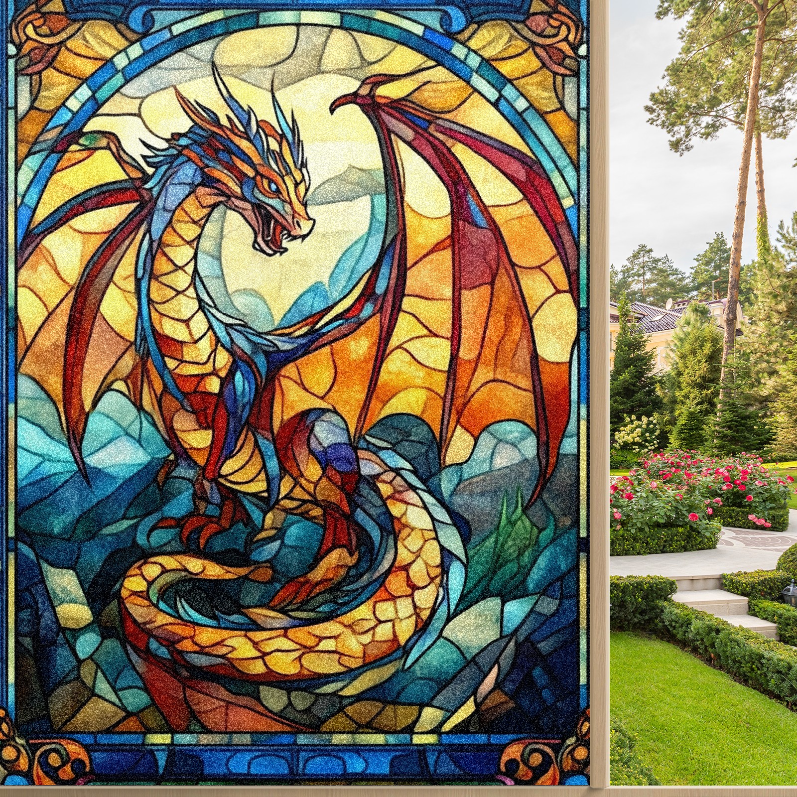 Stained Glass Window Film - Decorative Privacy Film for Windows, Peel and Stick Window Film for Bathroom/Office/Shower, Reusable and Easy to Cut 17.7"x23.6" (Dragon Pattern)