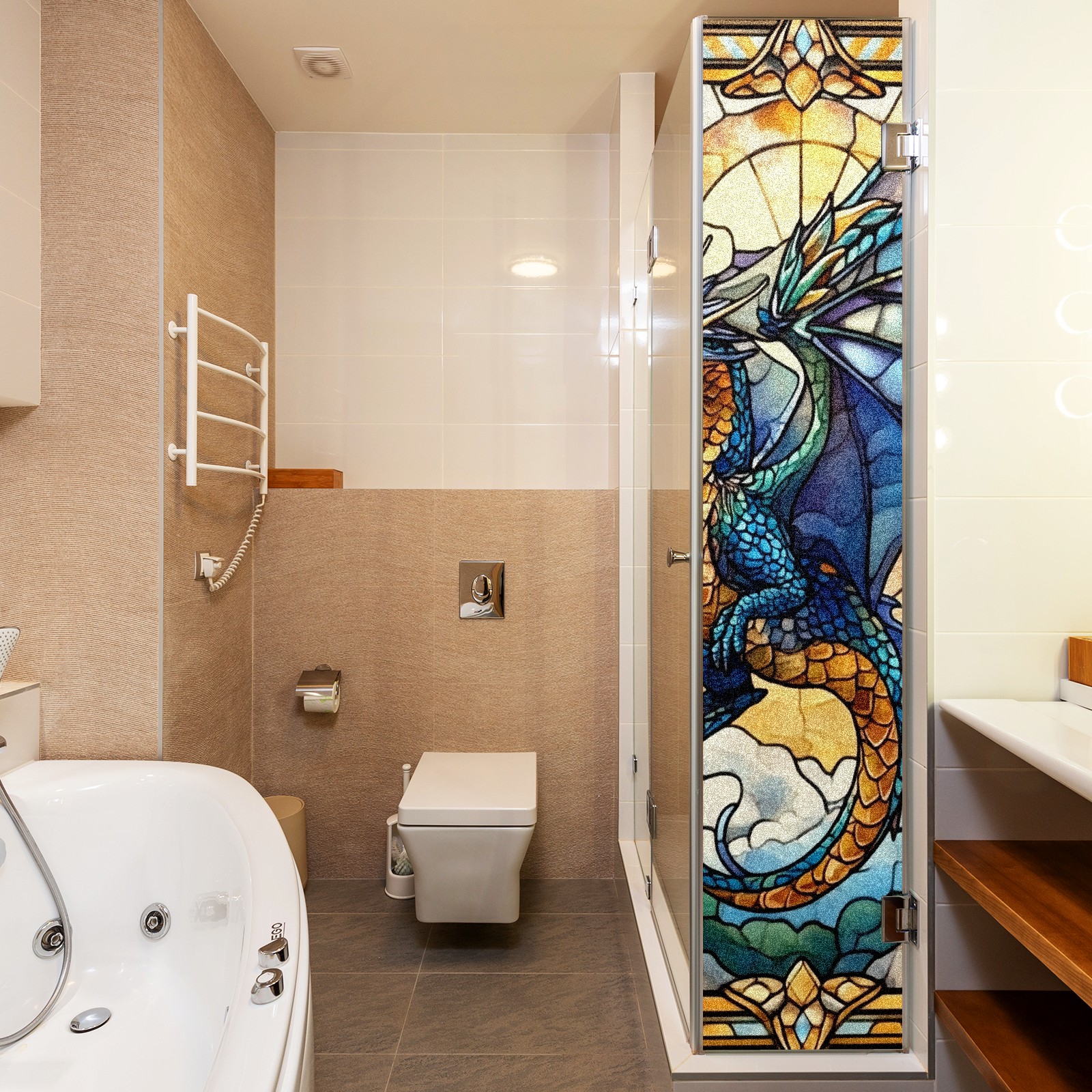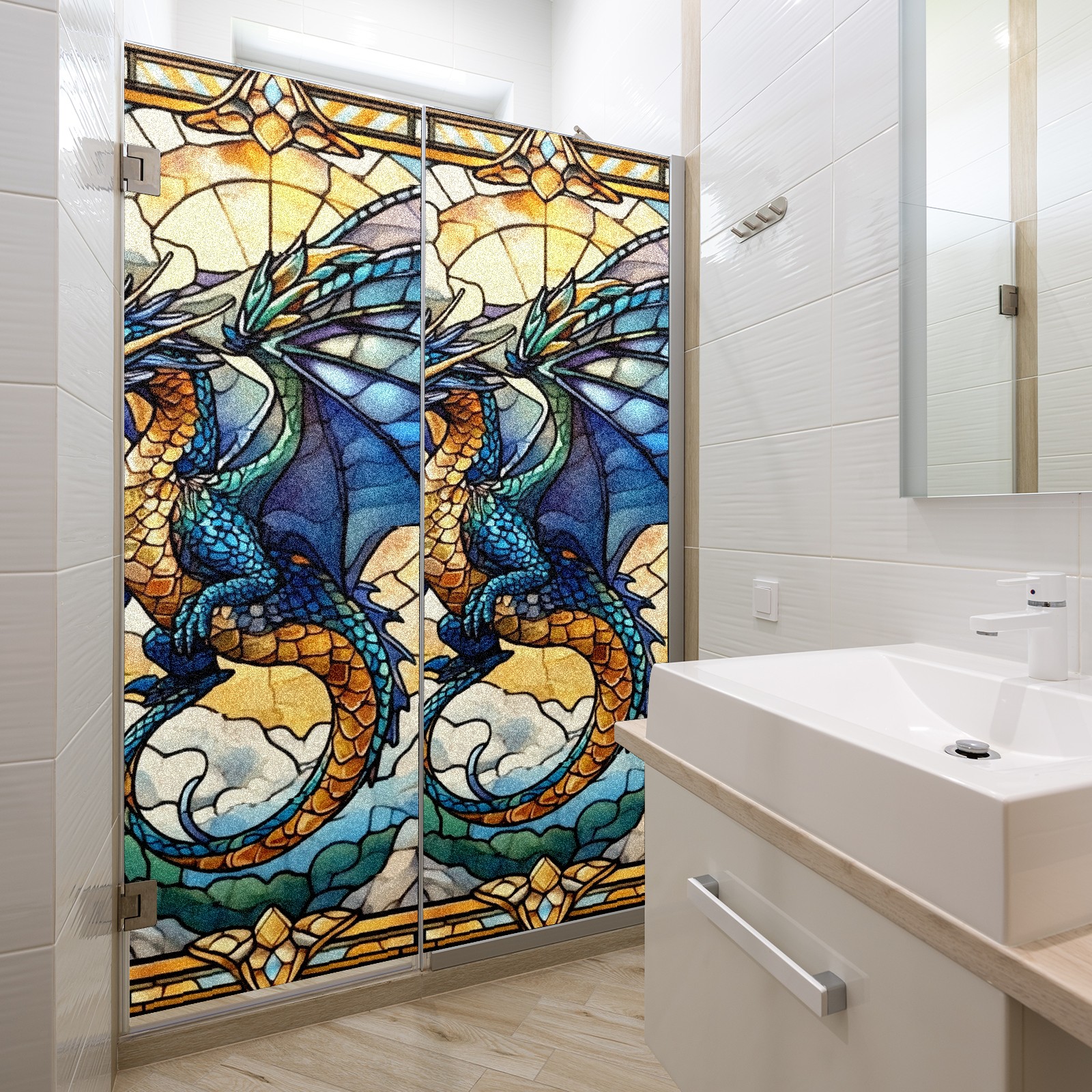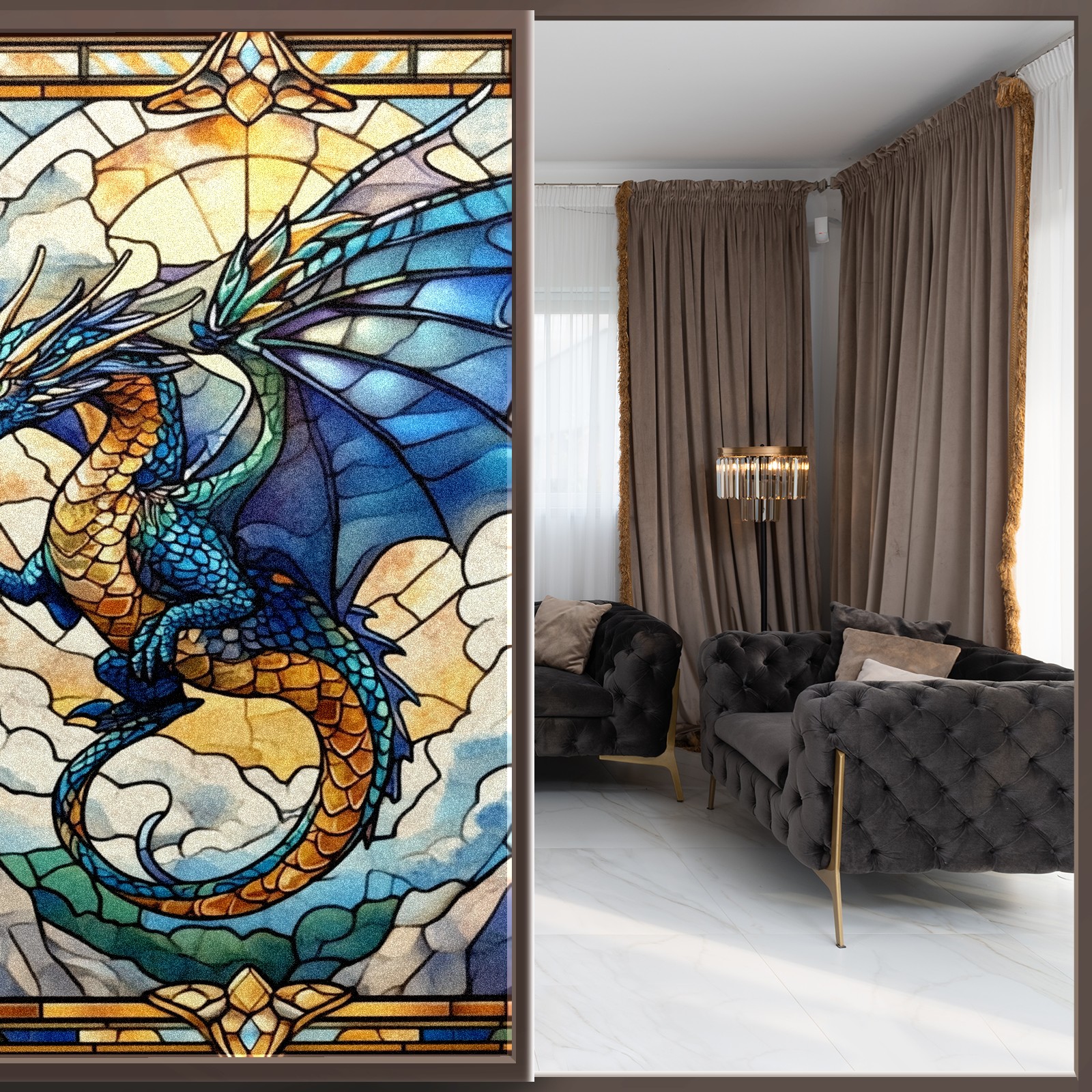Stained Glass Window Film - Decorative Privacy Film for Windows, Peel and Stick Window Film for Bathroom/Office/Shower, Reusable and Easy to Cut 17.7"x23.6" (Blue Dragon)
