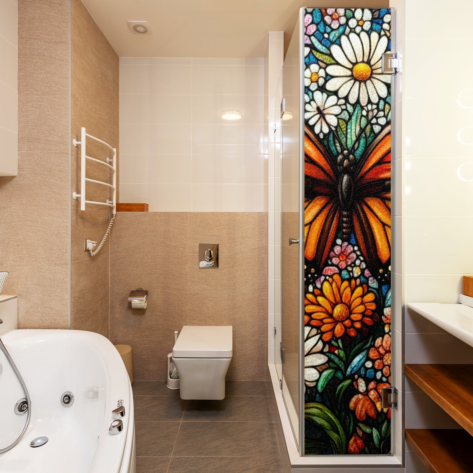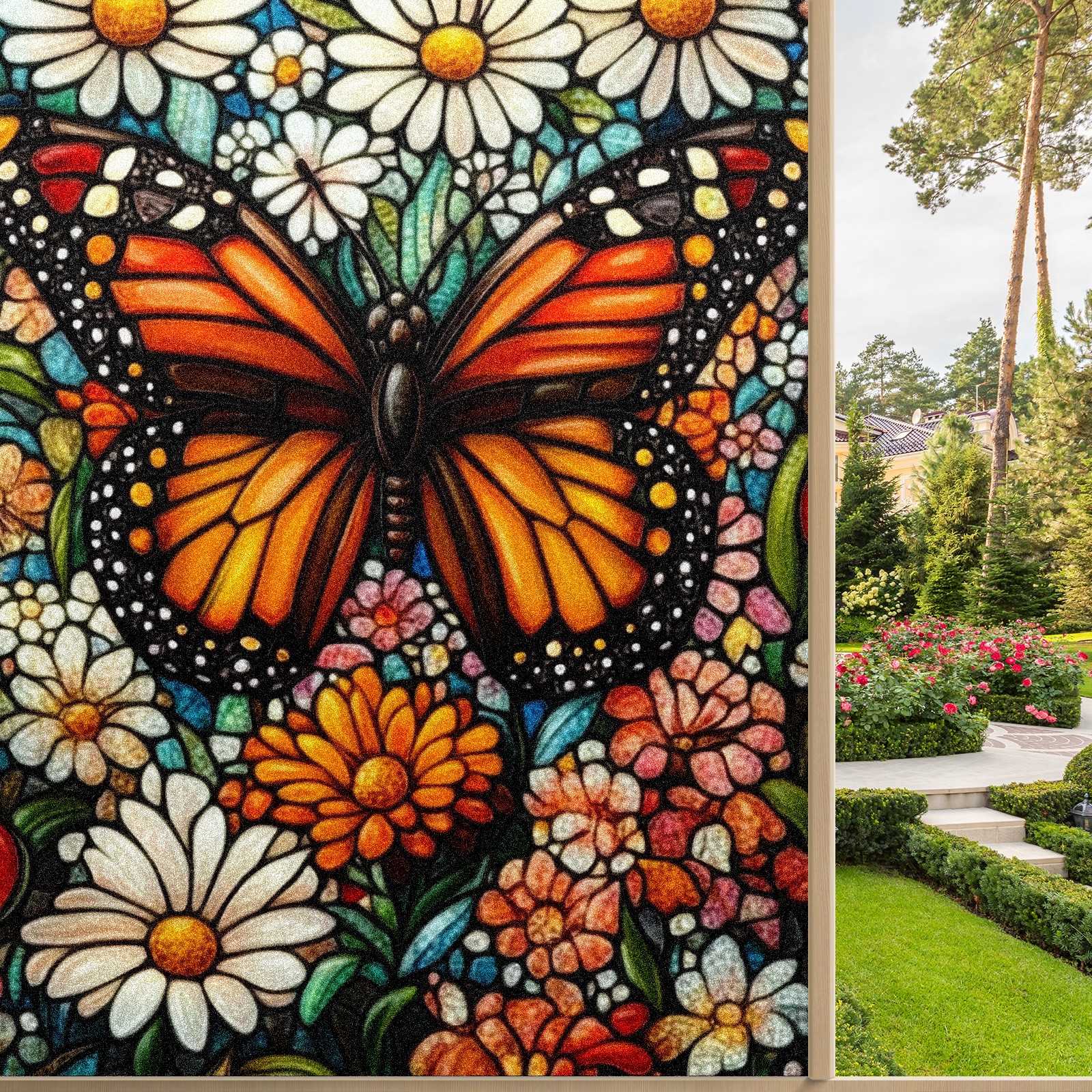 Stained Glass Window Film - Decorative Privacy Film for Windows, Peel and Stick Window Film for Bathroom/Office/Shower, Reusable and Easy to Cut 17.7"x23.6" (Butterfly)