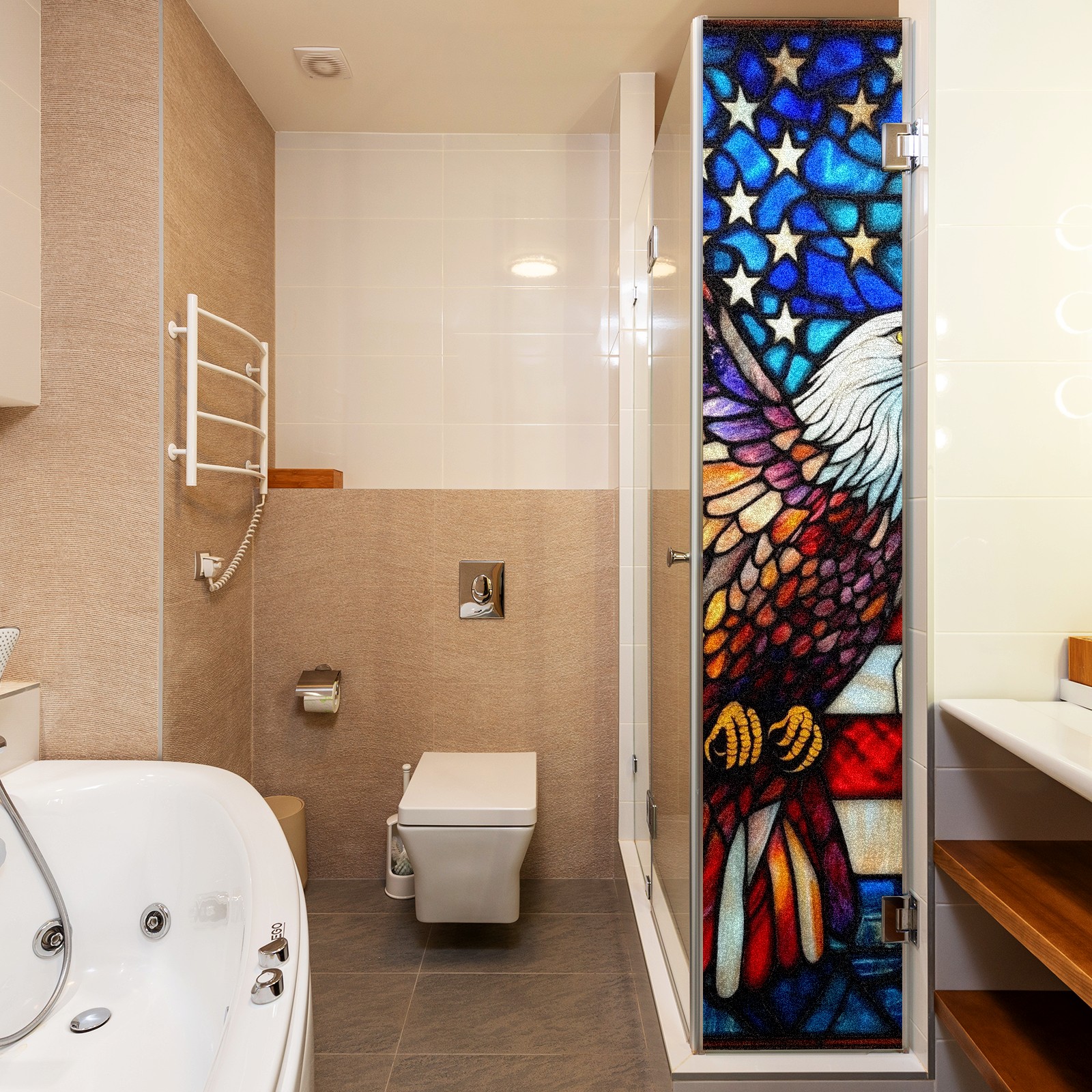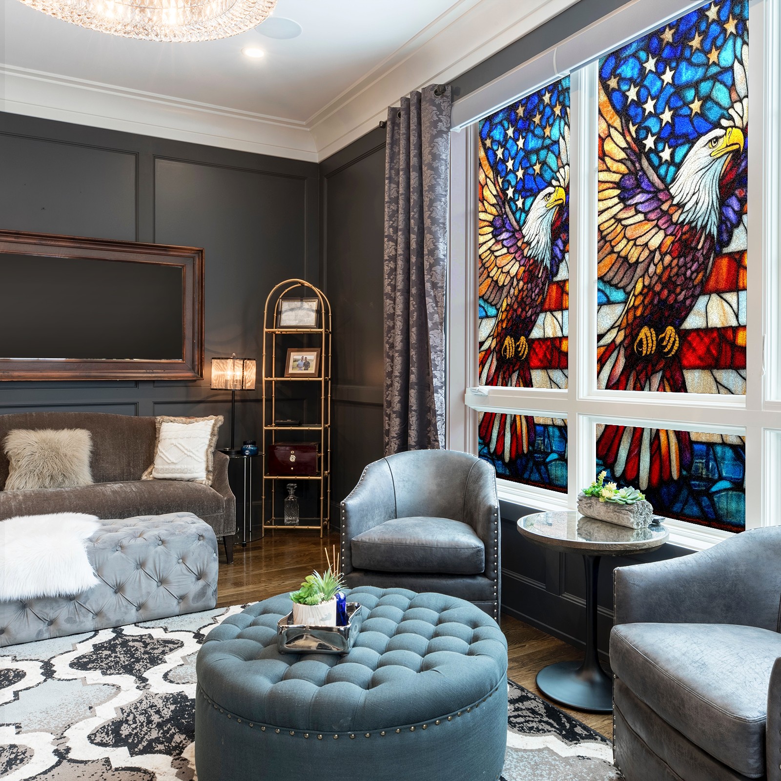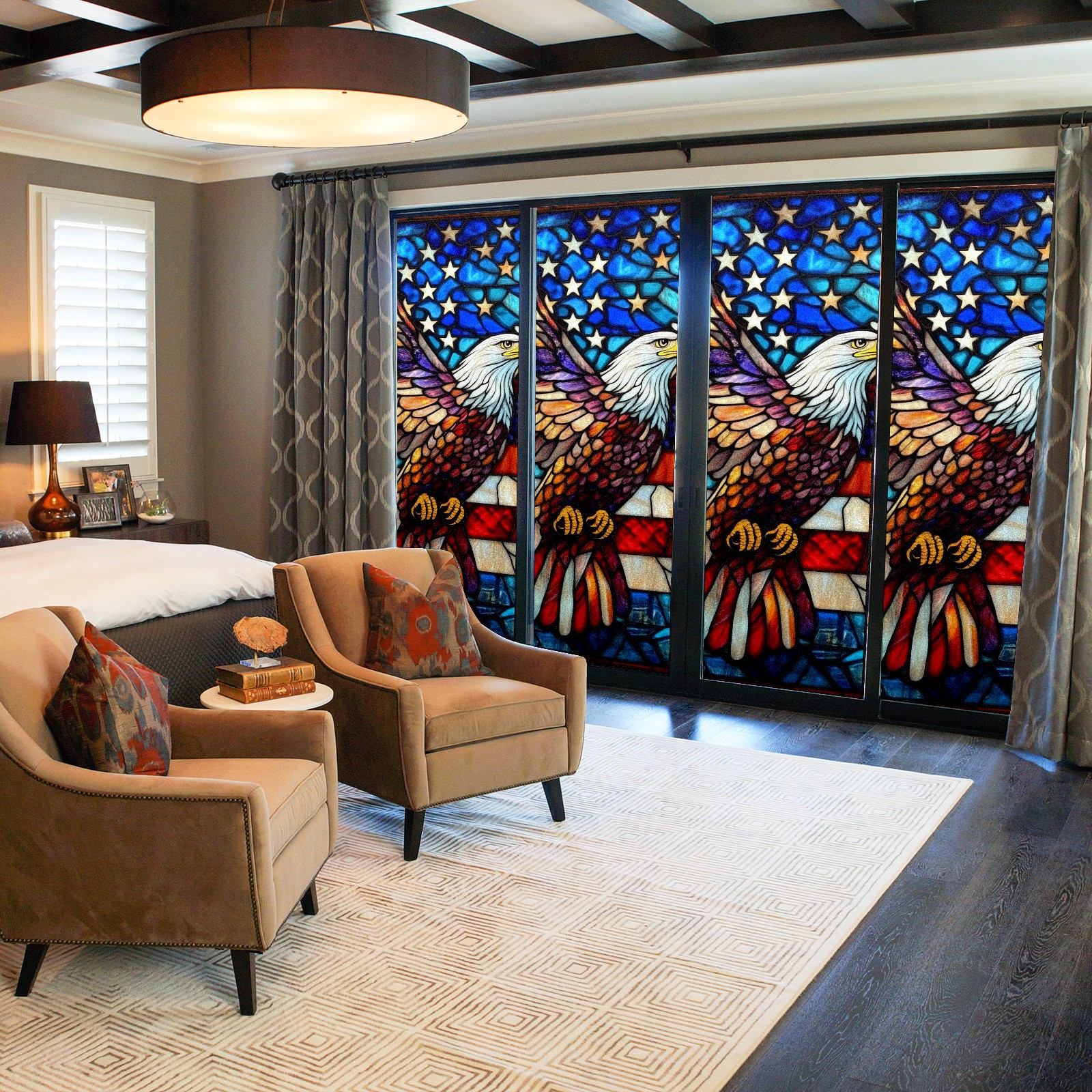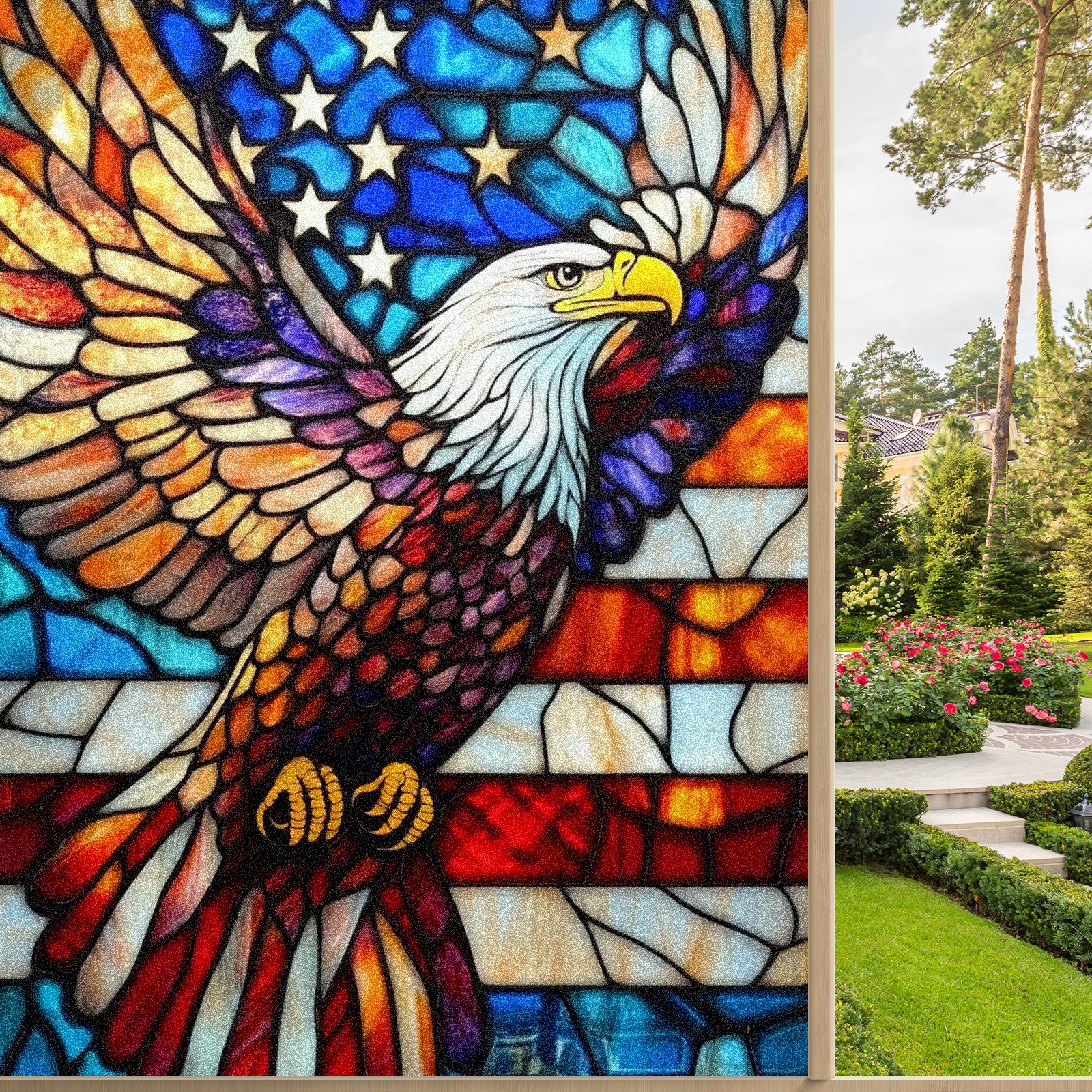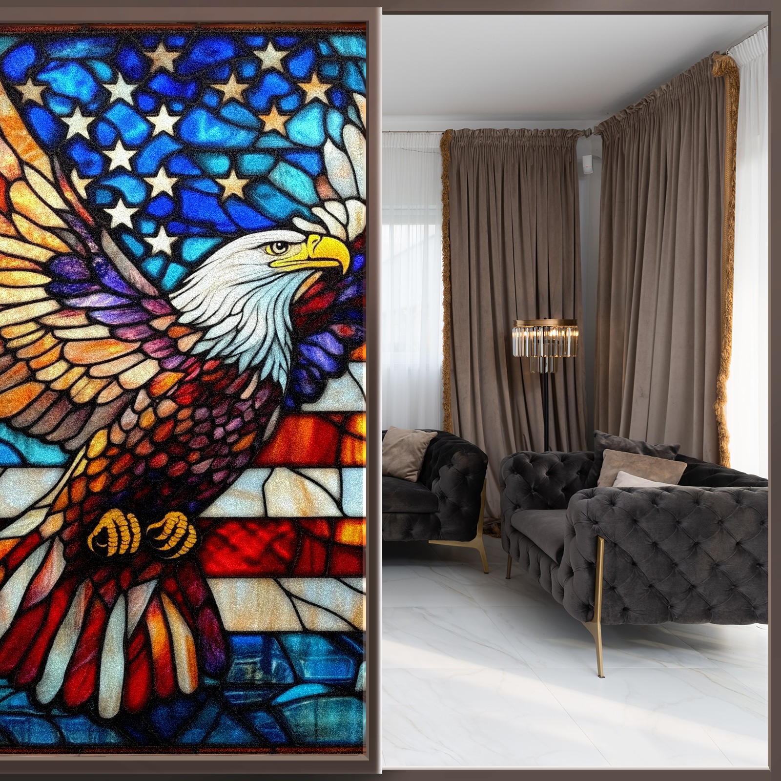 Stained Glass Window Film - Decorative Privacy Film for Windows, Peel and Stick Window Film for Bathroom/Office/Shower, Reusable and Easy to Cut 17.7"x23.6" (American Flag And Flying Eagle)