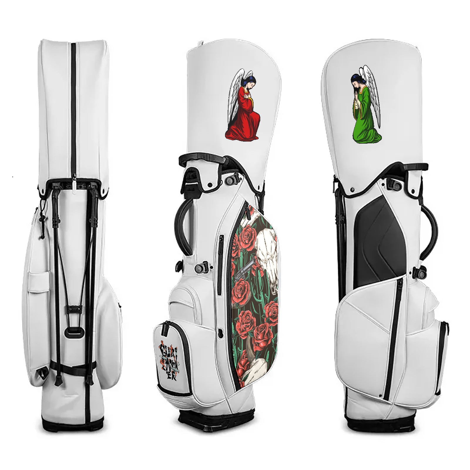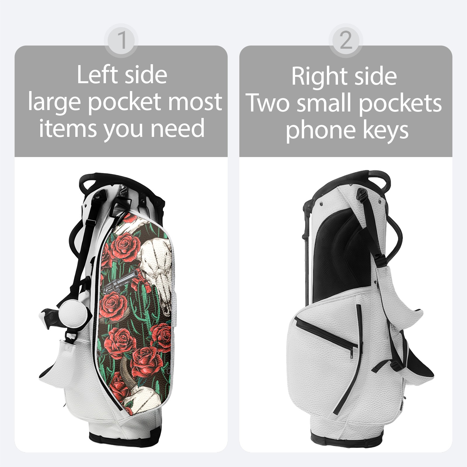 Golf Stand Bag - 14/5 Way Top Dividers, 8 Pockets, Waterproof for Men & Women PU Leather, Customizable , Black/White,golf bags for menCow Rose And Passion, Vintage Diablo