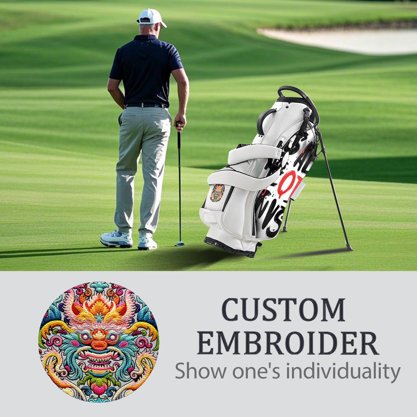 <p>The Golf Stand Bag, designed specifically for golf enthusiasts, offers a choice of 5 - way and 14 - way top dividers. Its 5/14 - compartment design with independent full - size club compartments safeguards clubs from collisions. Equipped with a rain cover, waterproof zippered pockets (tested to resist moderate to heavy rain), and a high - performance cooler pouch that can keep drinks cold for hours, it ensures a convenient golfing experience. The bag features thickened, breathable neoprene shoulder straps and an adjustable chest buckle, reducing shoulder fatigue by 35% compared to regular bags, and its automatic aluminum alloy stand provides stable support on various terrains. Crafted from top - tier, water - resistant litchi - grain PU leather, with double - stitched edges, reliable zippers tested for over 15,000 cycles, and anti - abrasion bottom studs, it guarantees durability. You can personalize it with embroidery on the front pocket and rain cover side (15*15cm area), and it comes in classic black and white, with a matte finish and litchi - grain texture that combines business and leisure styles. Measuring 130 cm in height, 37 cm in width, and 31 cm in depth (including rain cover) and 90 cm x 31 cm x 37 cm (excluding rain cover), it strikes a balance between storage and portability, capable of holding 14 standard - sized clubs and other essentials, and it also includes a dust cover. It's truly the perfect choice for golfers.<br></p>