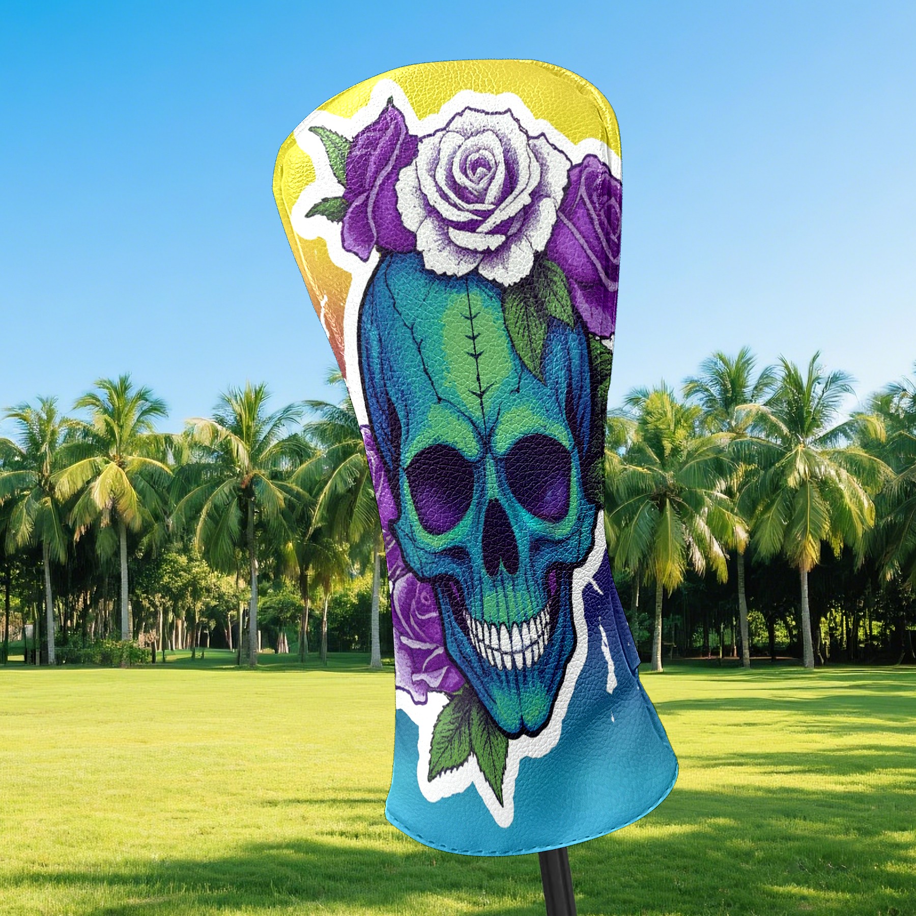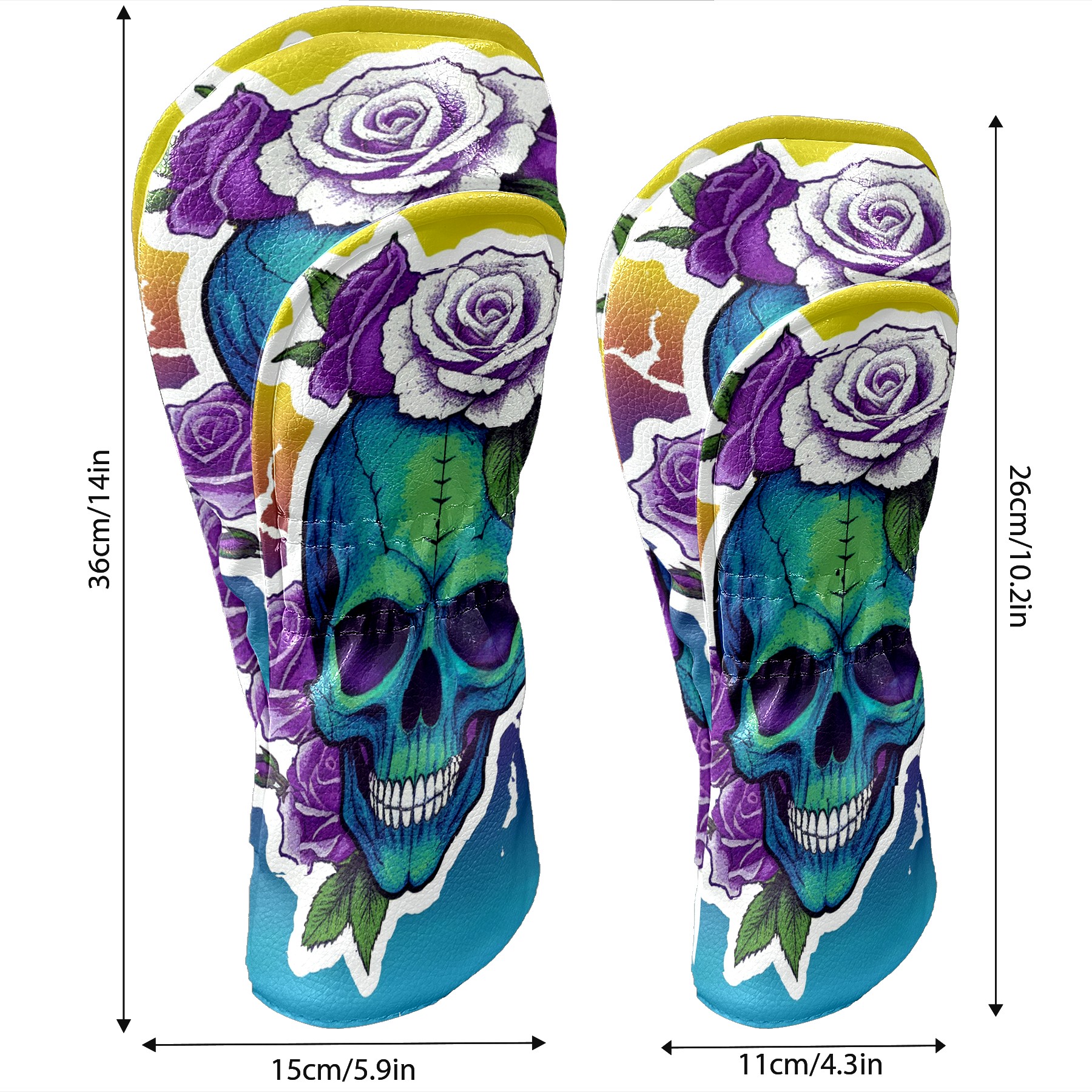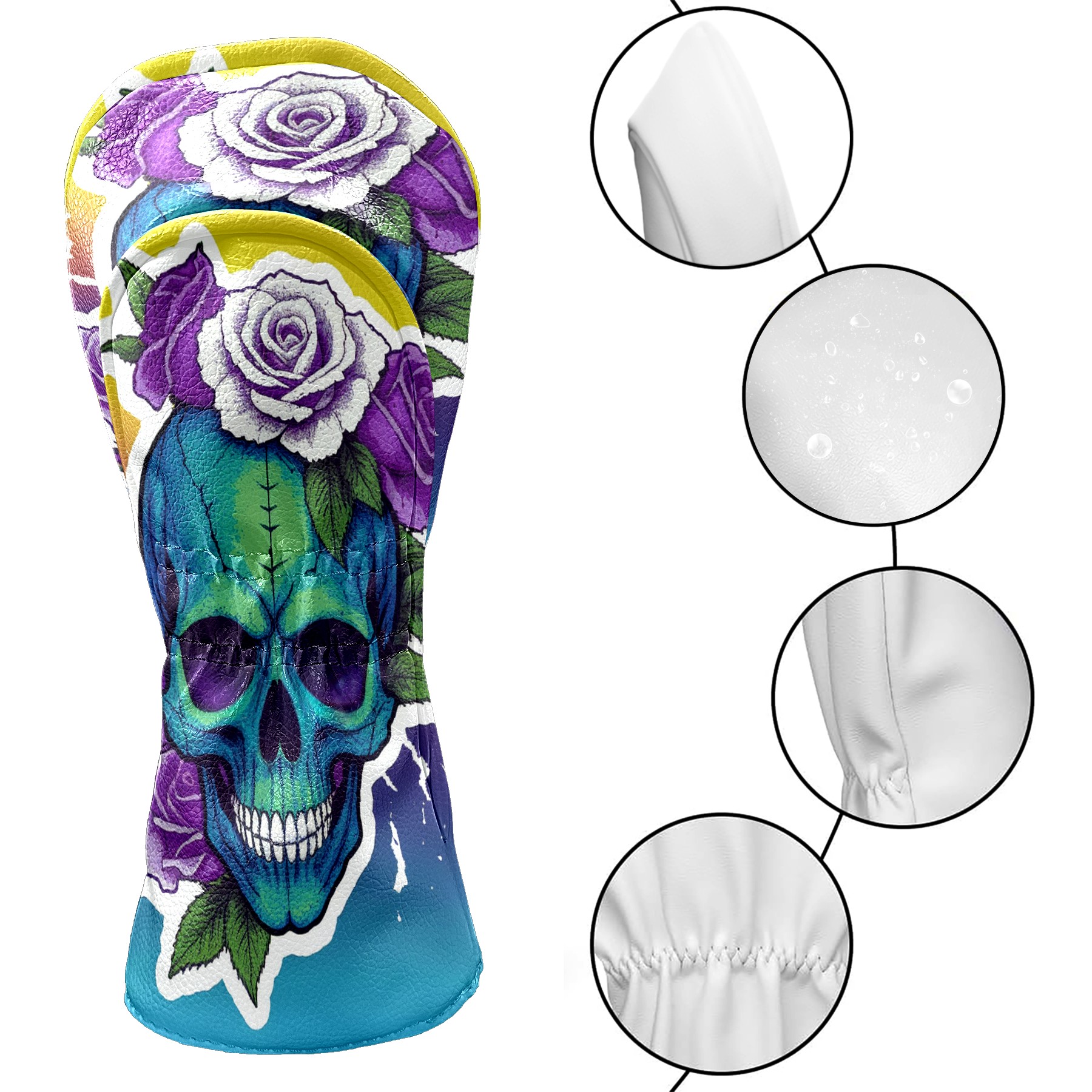 Golf Club Covers Tie Dye Skull Rose Driver Headcover, Leather Golf Club Head Covers for Driver Fairway Woods Waterproof Golf Headcovers with Anti-Scratch Lining for Men Women