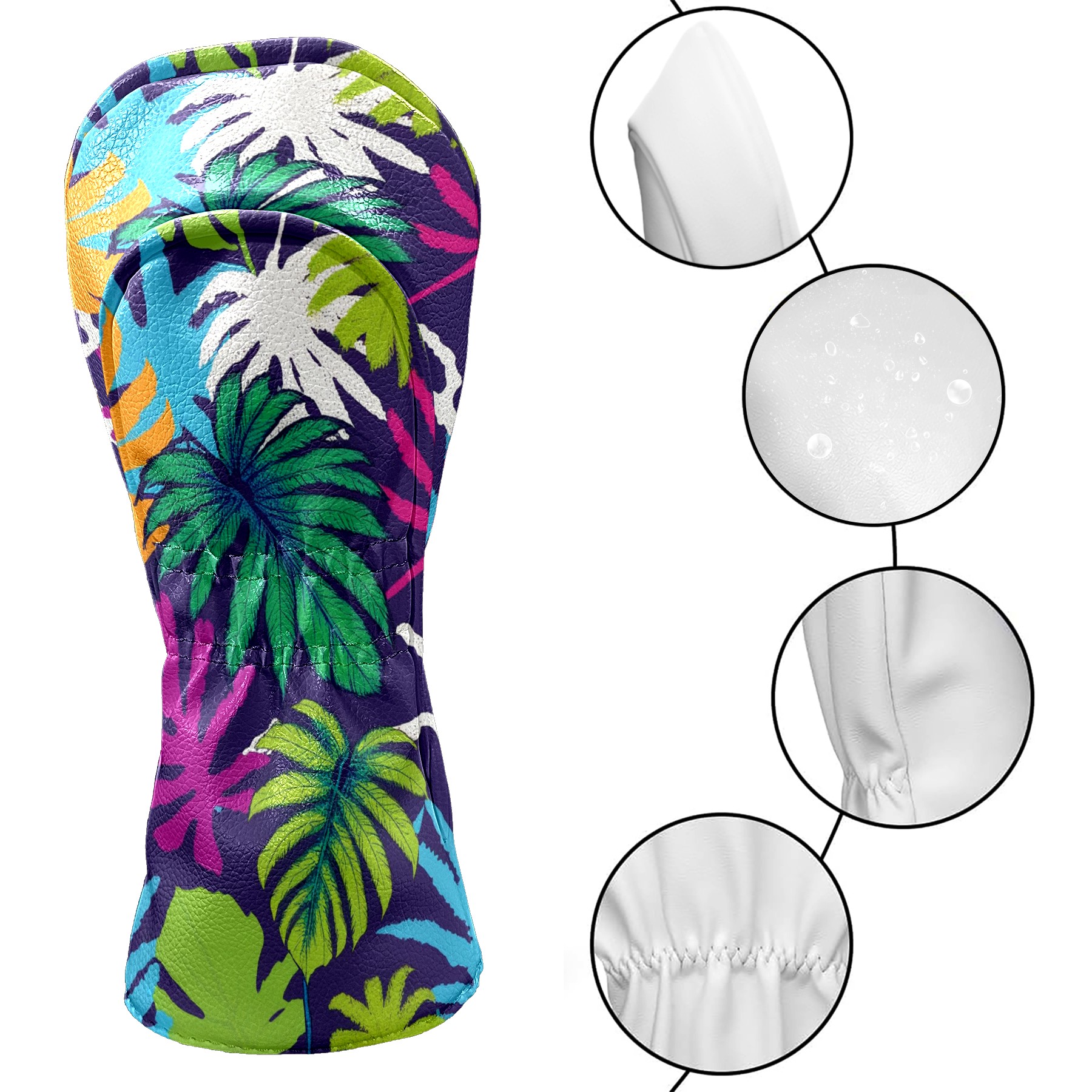 Golf Club Covers Tropical Leaves Driver Headcover, Leather Golf Club Head Covers for Driver Fairway Woods Waterproof Golf Headcovers with Anti-Scratch Lining for Men Women
