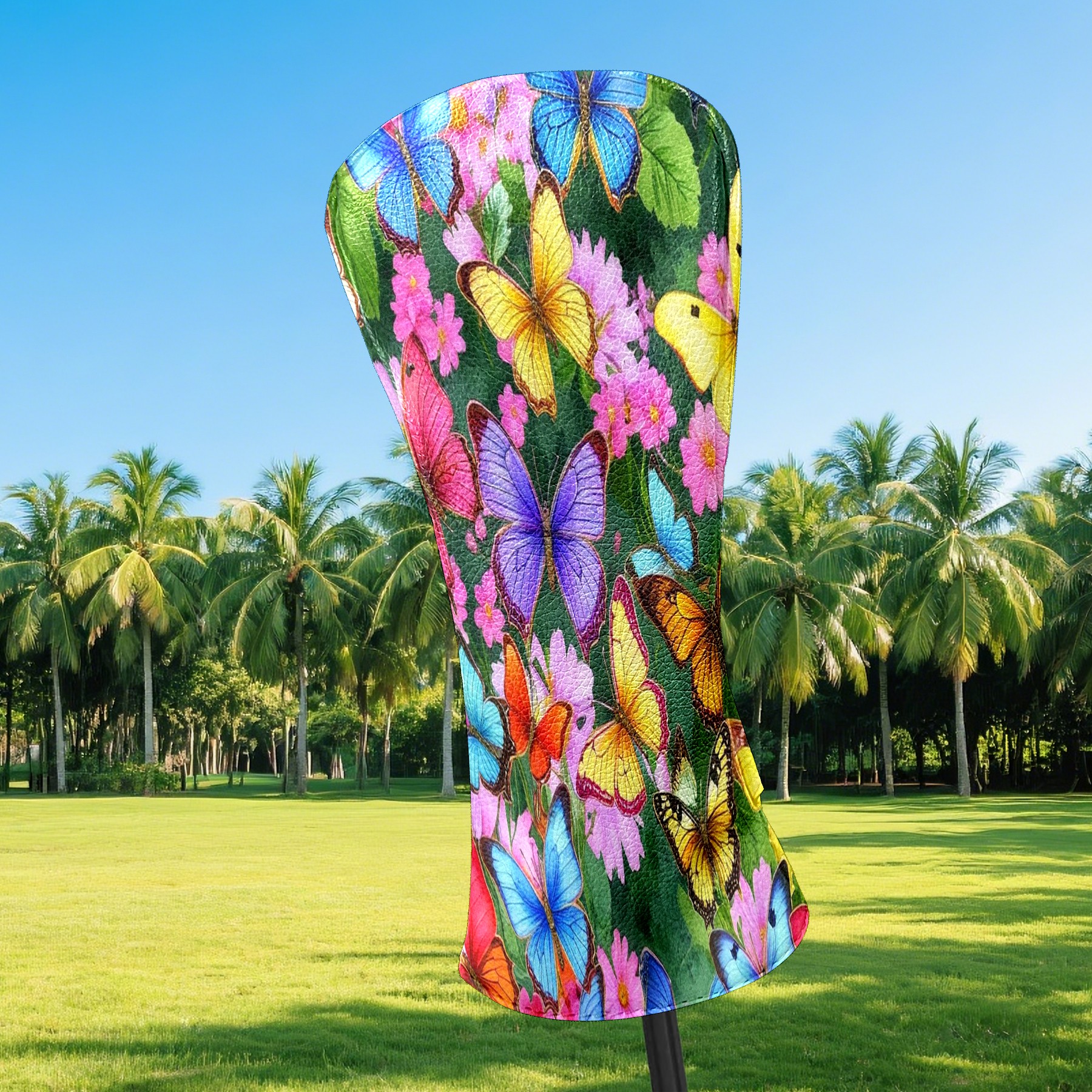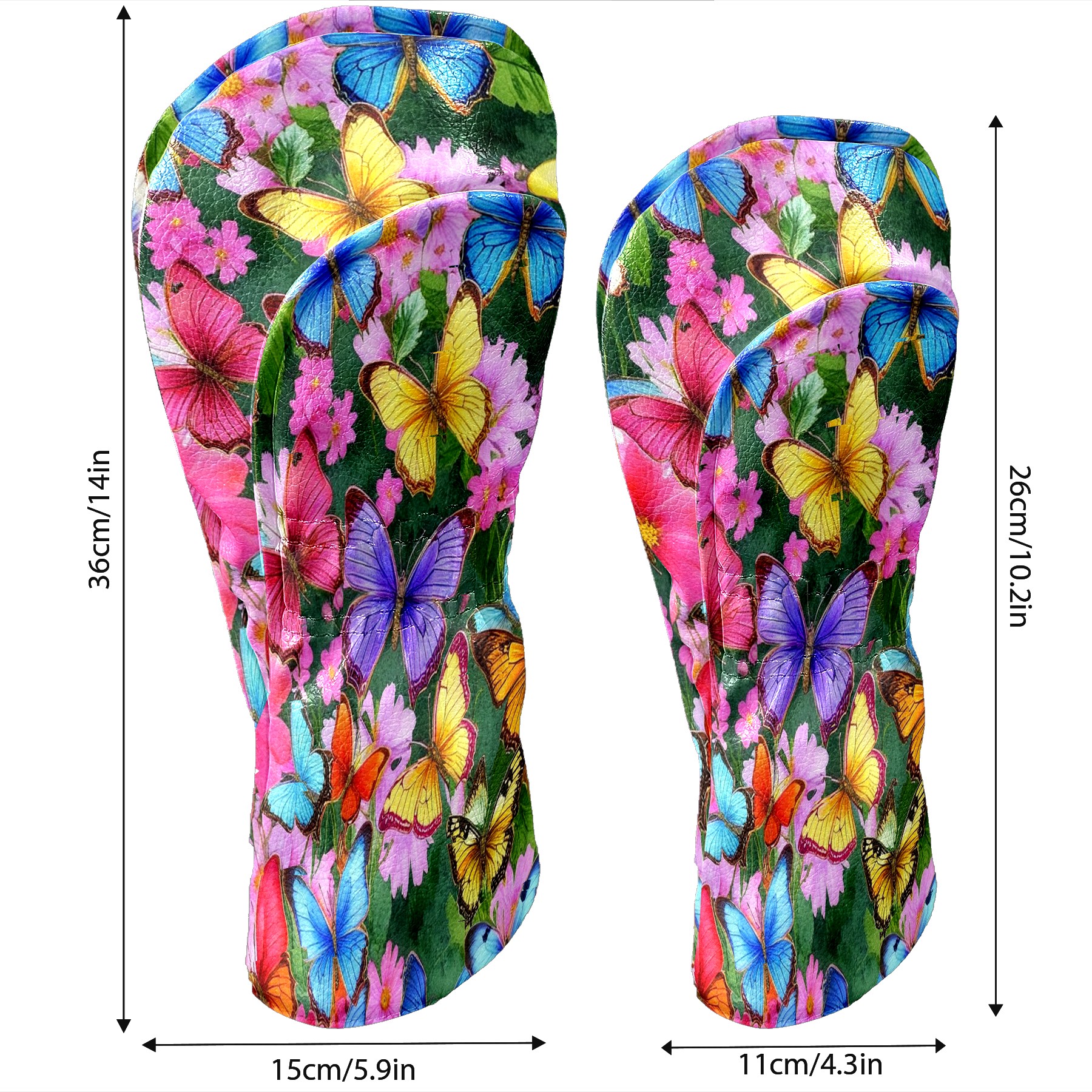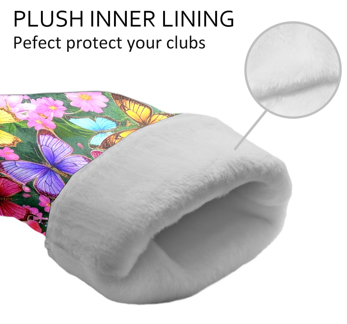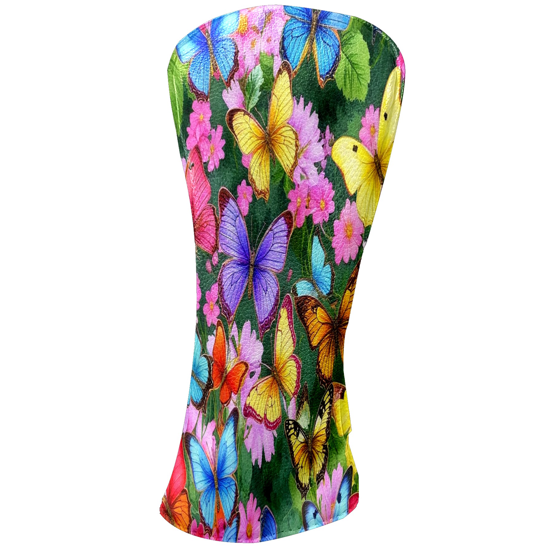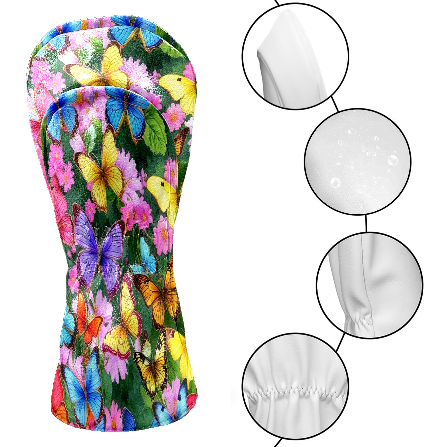 Golf Club Covers Colorful Butterflies Driver Headcover, Leather Golf Club Head Covers for Driver Fairway Woods Waterproof Golf Headcovers with Anti-Scratch Lining for Men Women