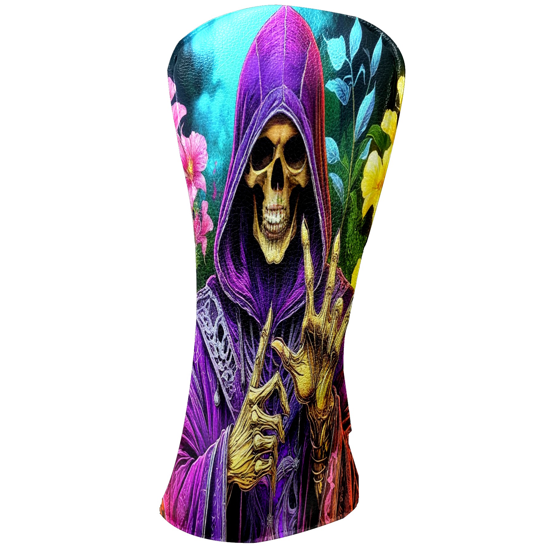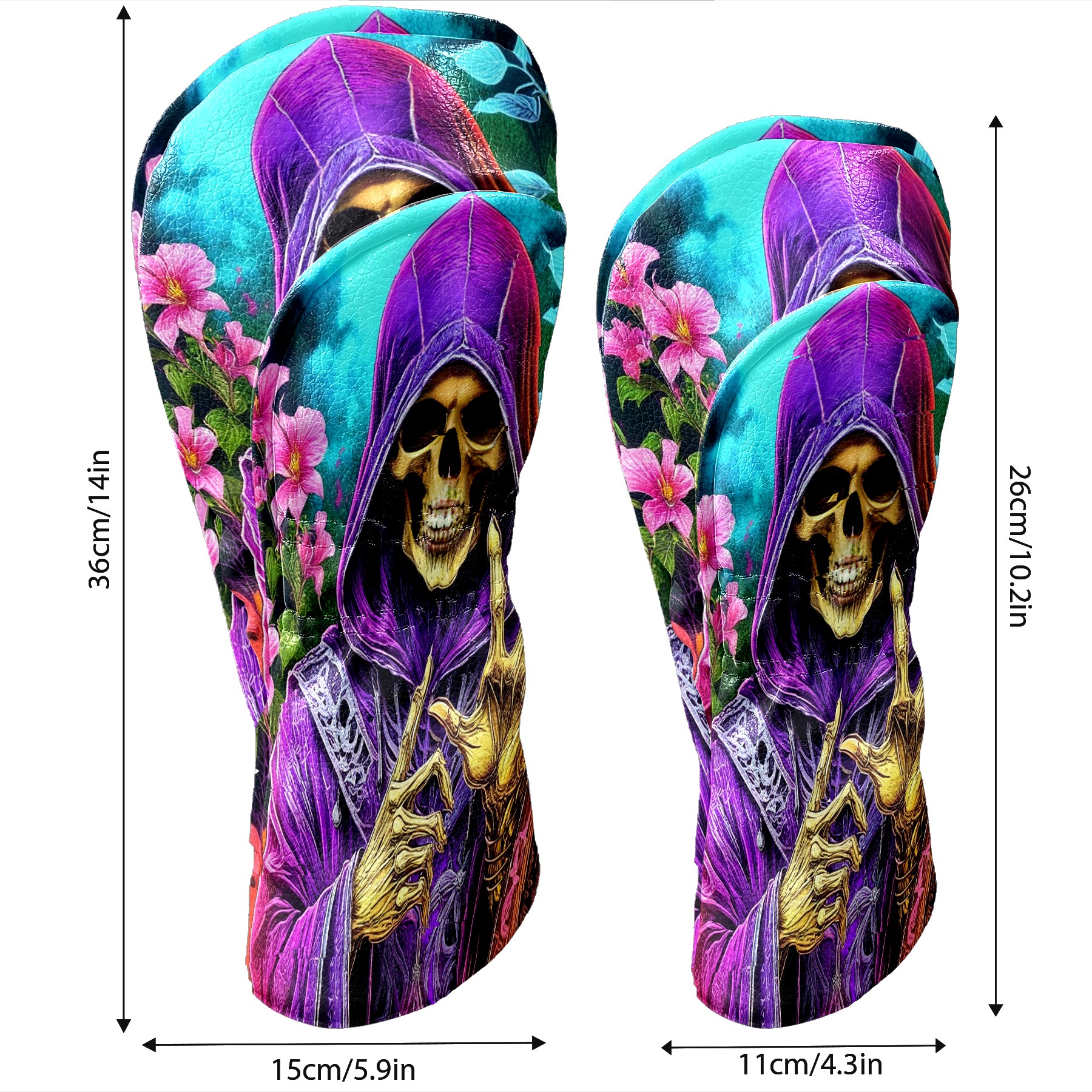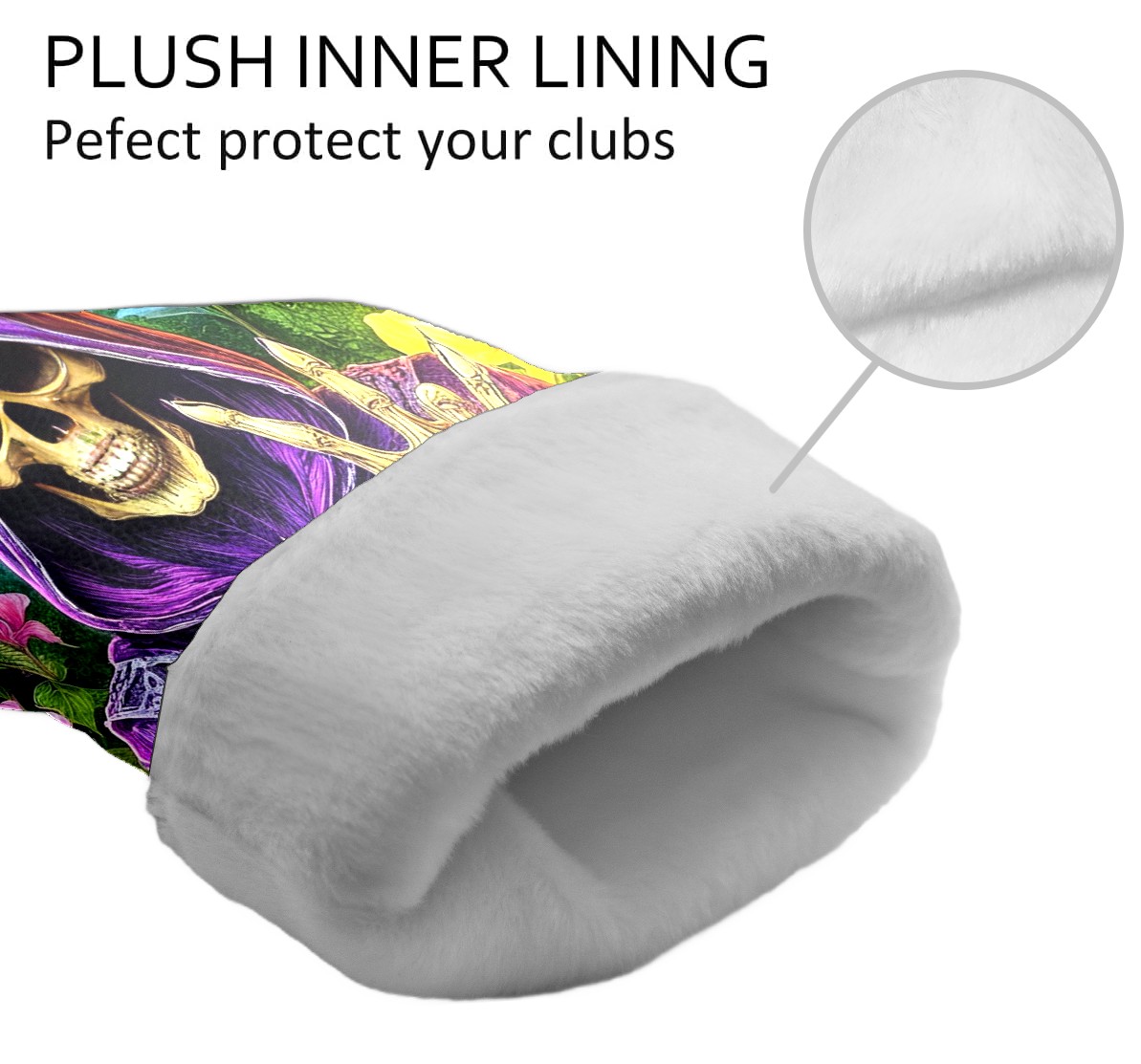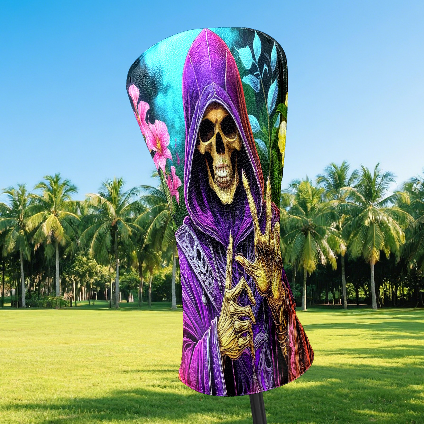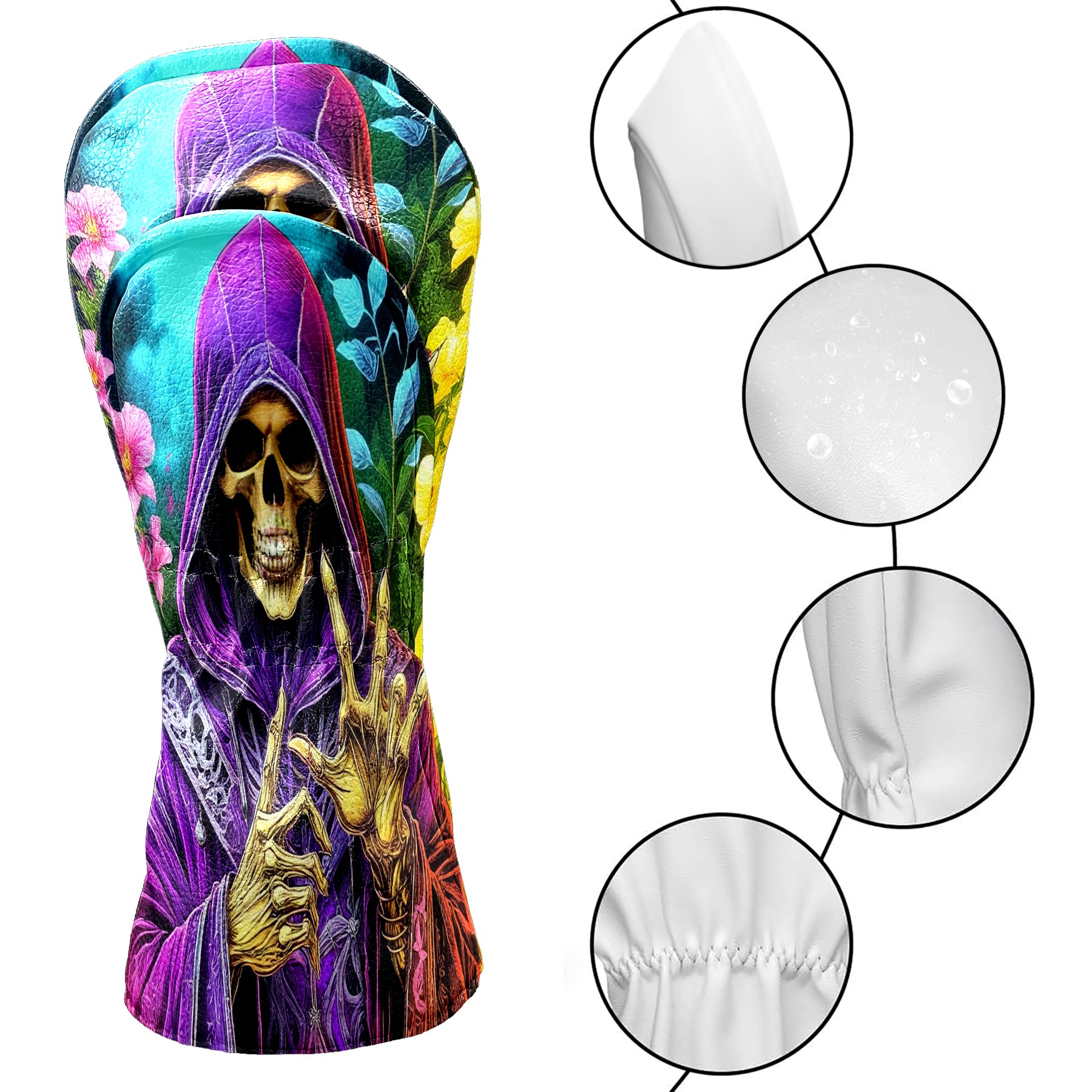 Golf Club Covers Floral Purple Skull Driver Headcover, Leather Golf Club Head Covers for Driver Fairway Woods Waterproof Golf Headcovers with Anti-Scratch Lining for Men Women
