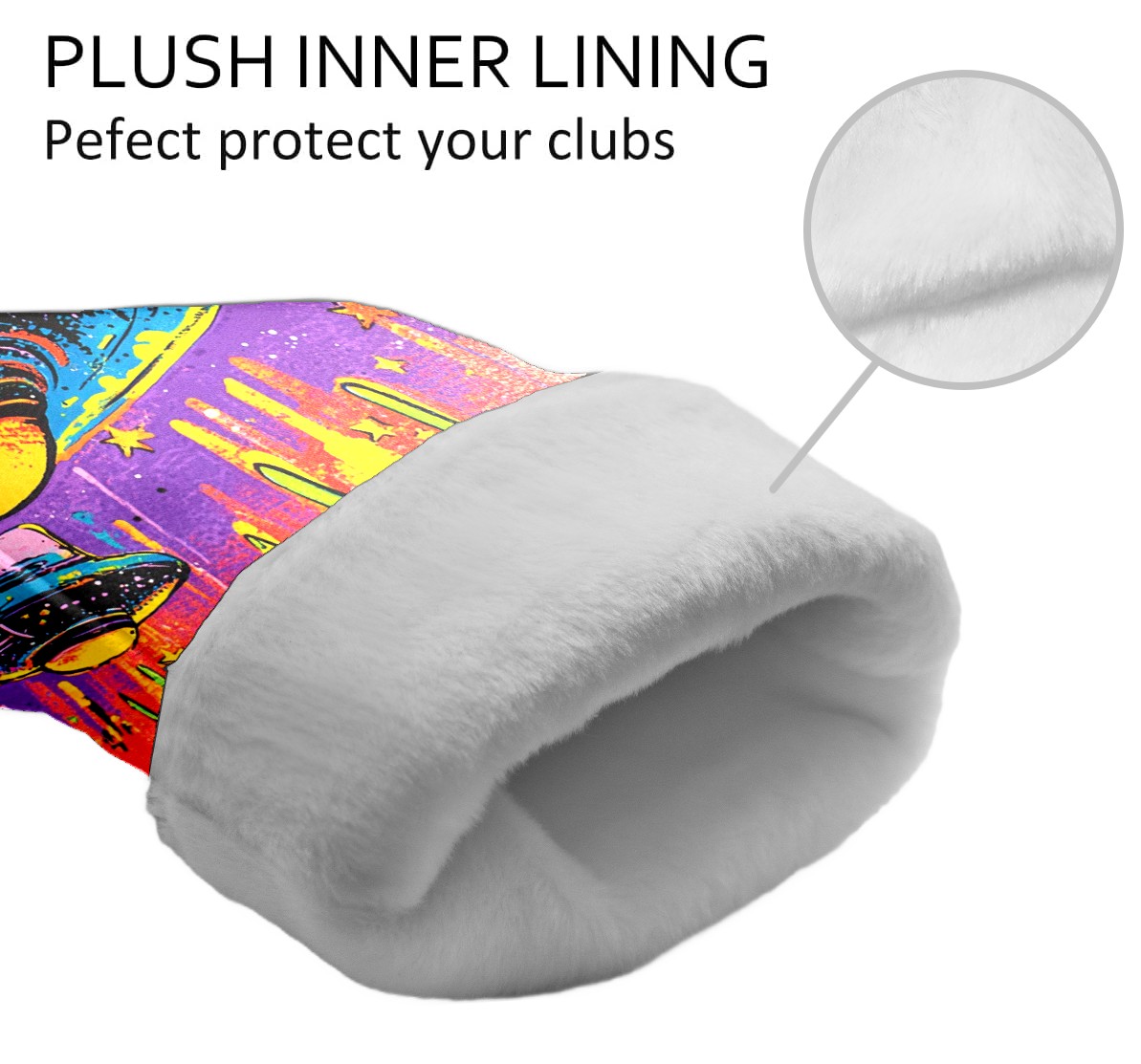 Golf Club Covers Purple Orange Driver Headcover, Leather Golf Club Head Covers for Driver Fairway Woods Waterproof Golf Headcovers with Anti-Scratch Lining for Men Women