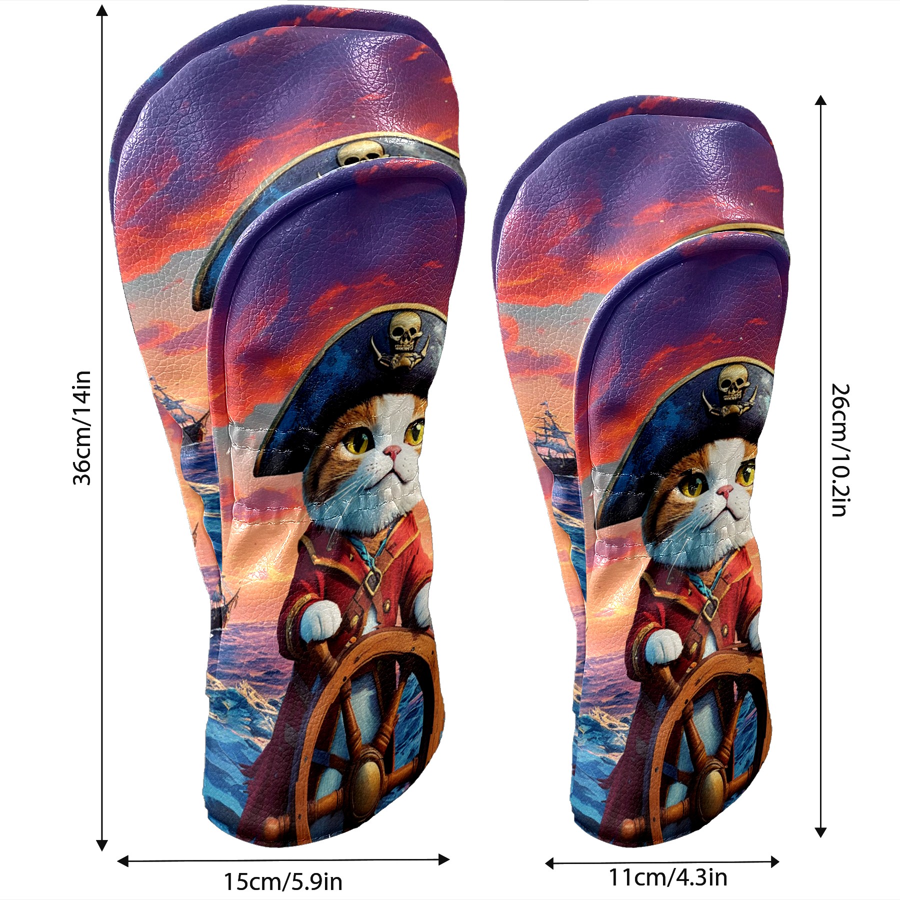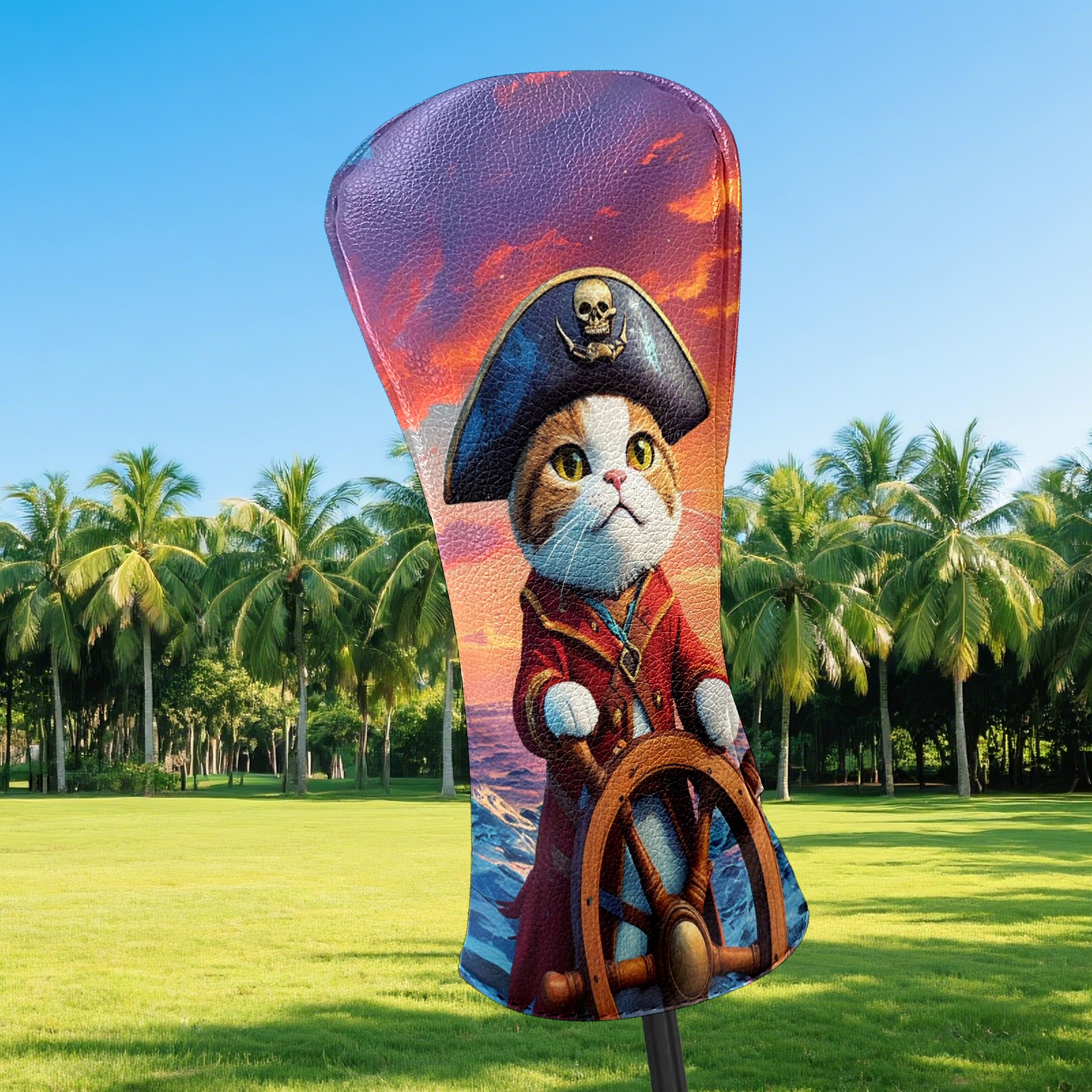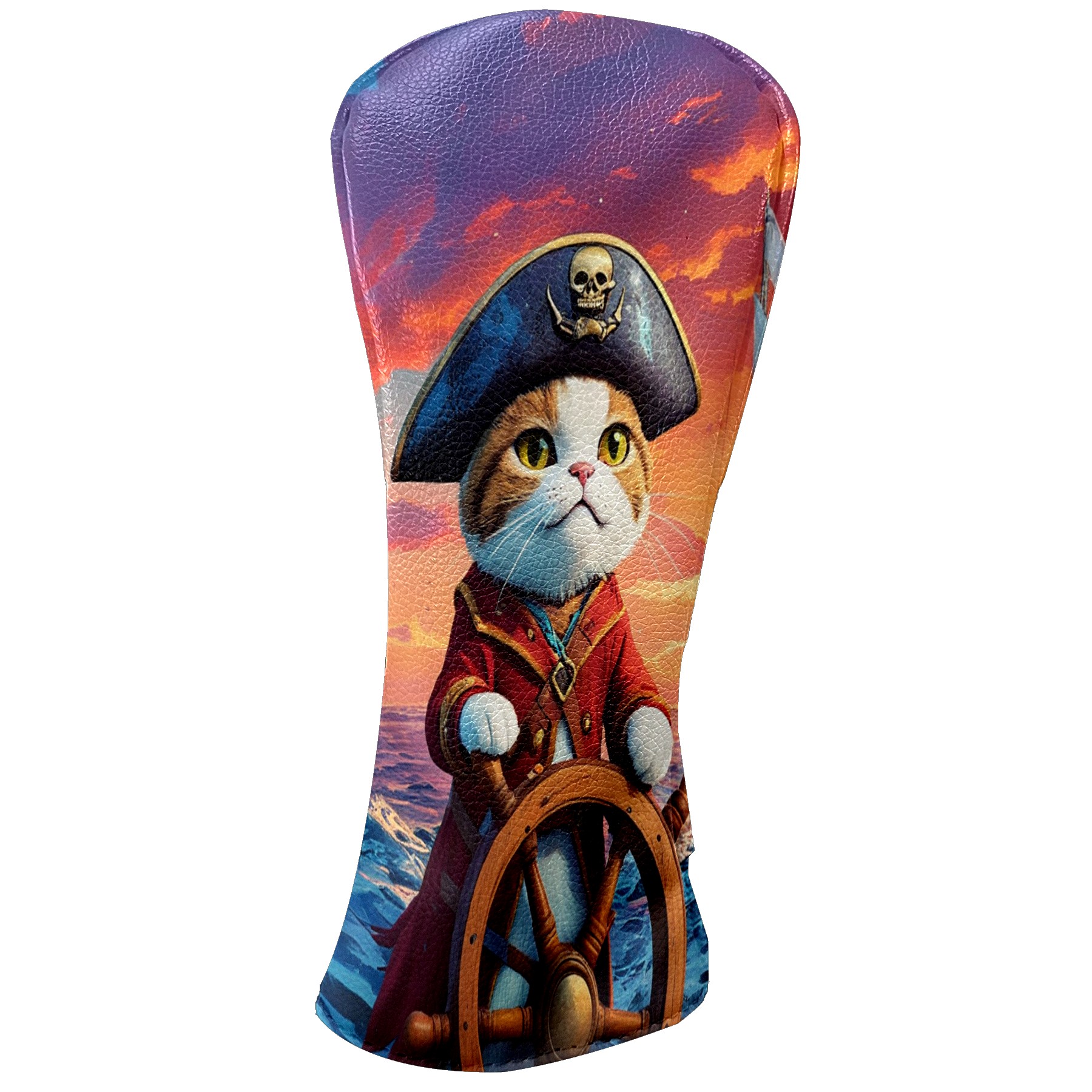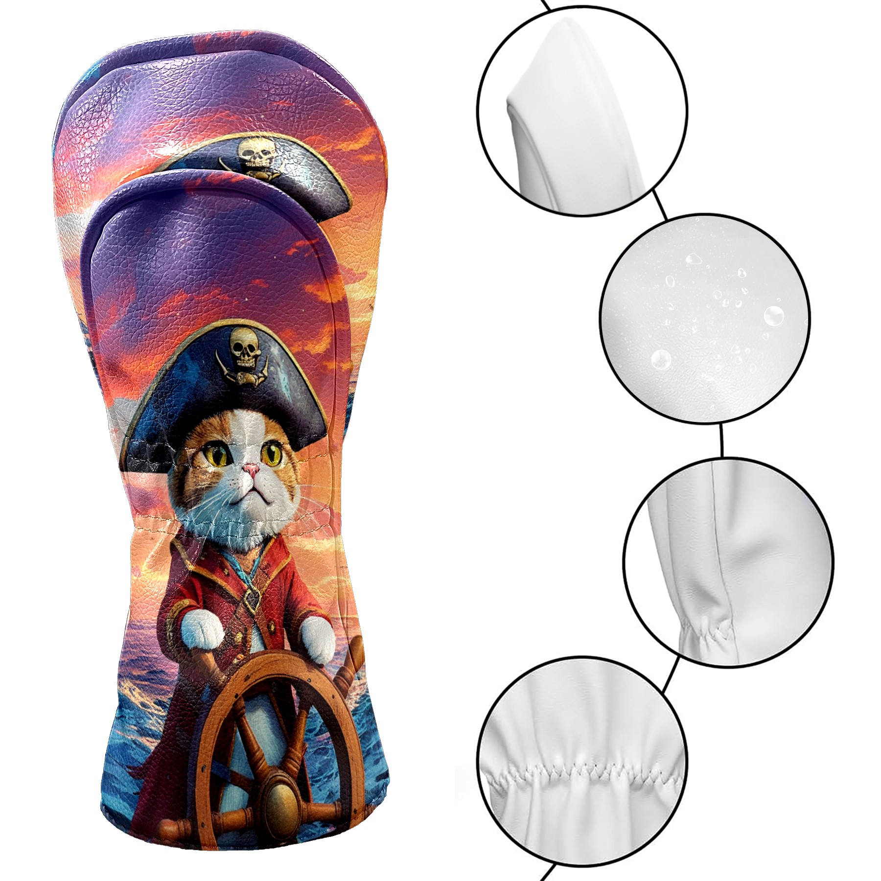 Golf Club Covers Pirate Cat Driver Headcover, Leather Golf Club Head Covers for Driver Fairway Woods Waterproof Golf Headcovers with Anti-Scratch Lining for Men Women