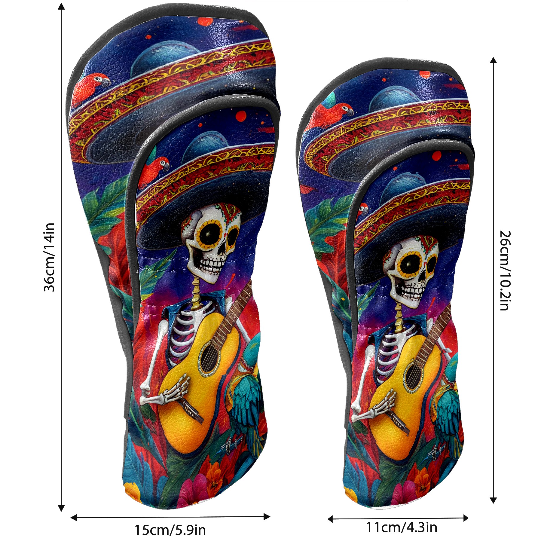 Golf Club Covers Skull Red Blue Driver Headcover, Leather Golf Club Head Covers for Driver Fairway Woods Waterproof Golf Headcovers with Anti-Scratch Lining for Men Women