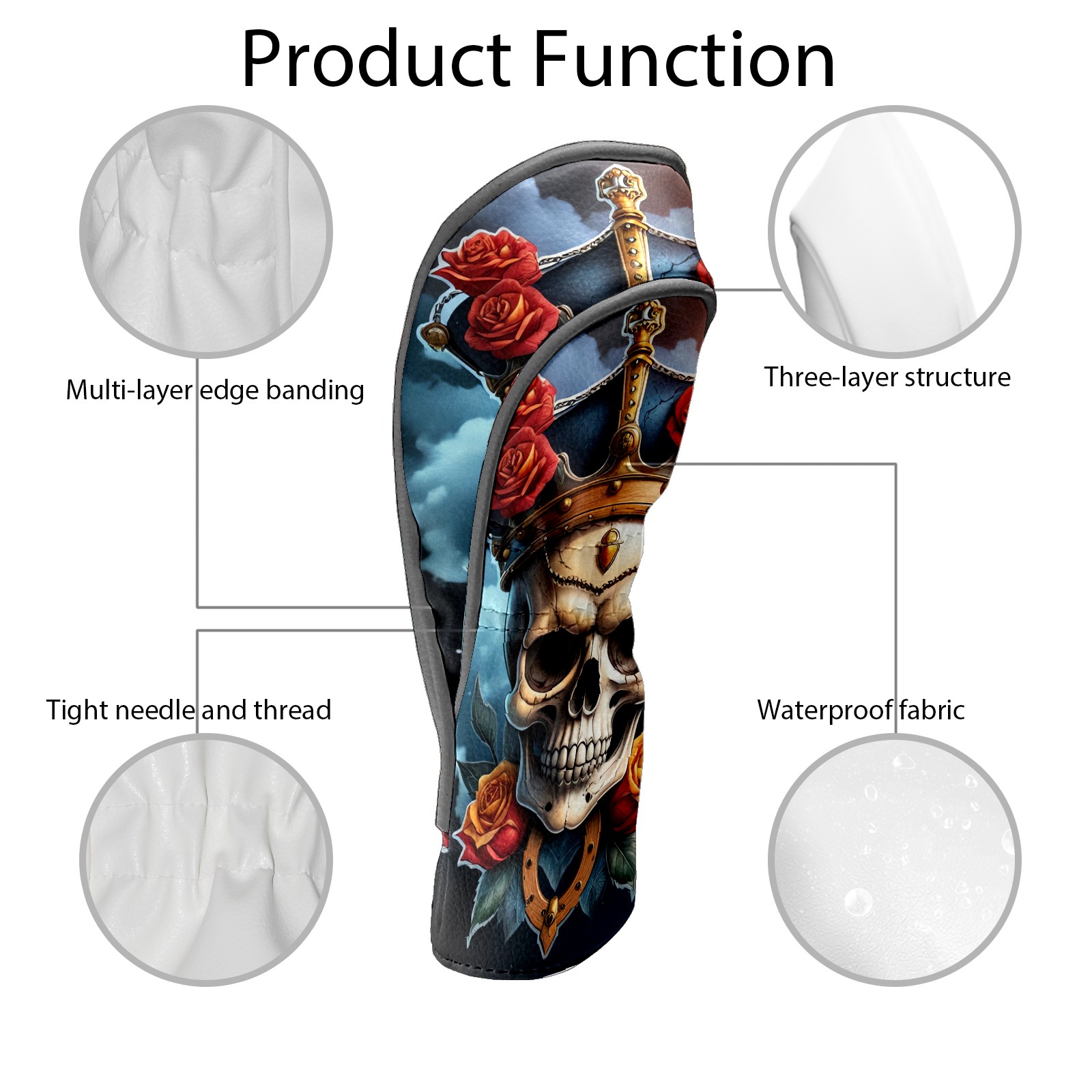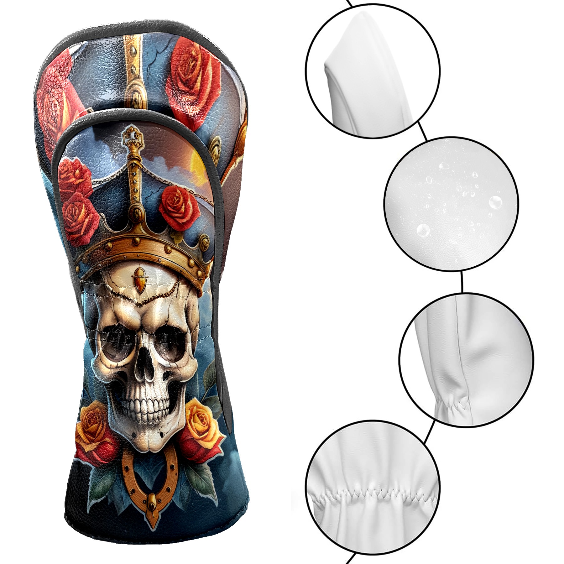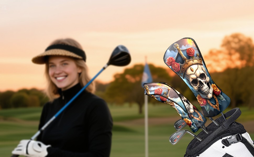 Golf Club Covers Pirate Skull Driver Headcover, Leather Golf Club Head Covers for Driver Fairway Woods Waterproof Golf Headcovers with Anti-Scratch Lining for Men Women