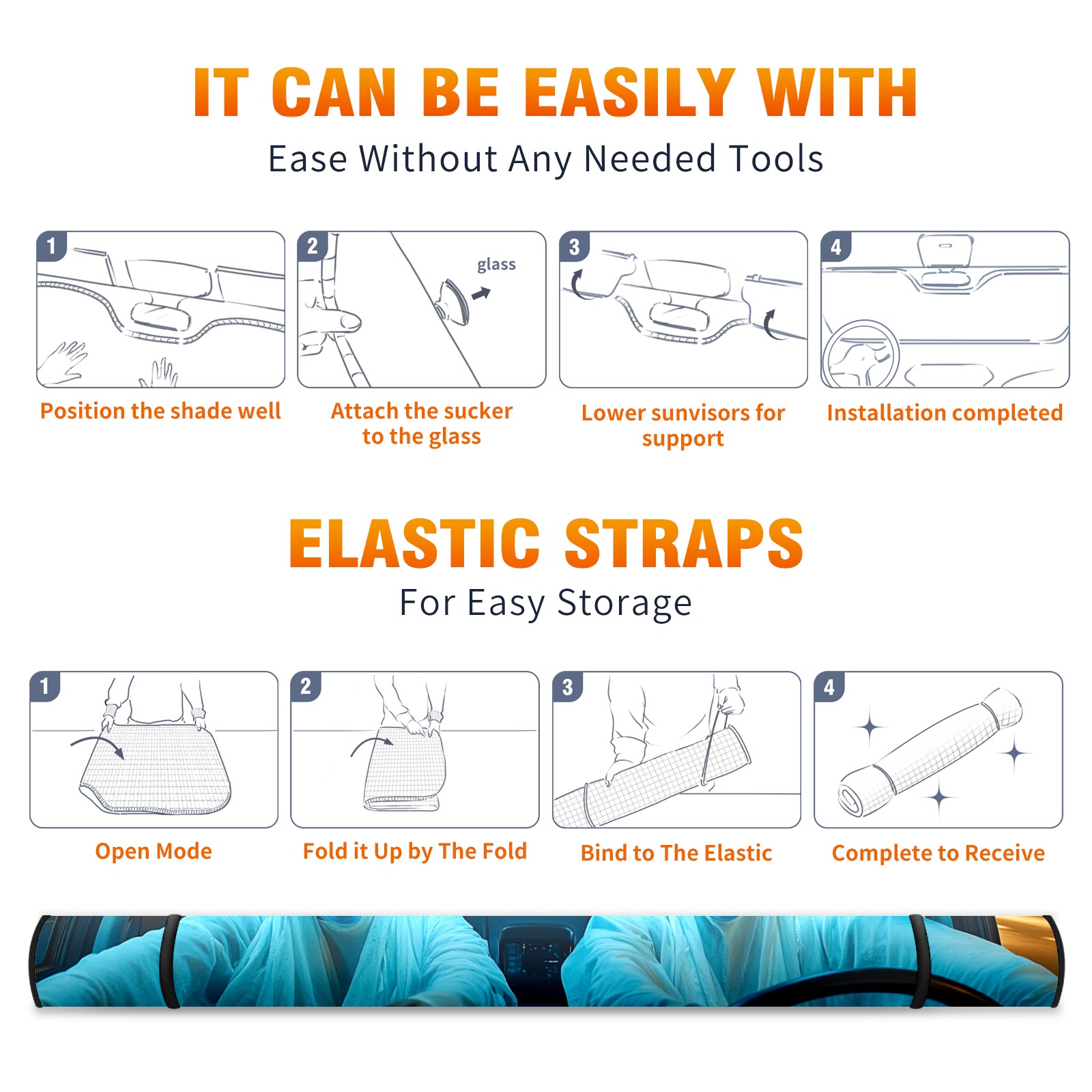 • <p>Stay cool and protect your car’s interior with our&nbsp;<strong>universal-fit windshield sun shade</strong>, designed to block&nbsp;<strong>99% of harmful UV rays</strong>&nbsp;and reduce cabin heat by up to&nbsp;<strong>60°F</strong>. Perfect for sedans, SUVs, and trucks, this&nbsp;<strong>foldable sunshade</strong>&nbsp;features a&nbsp;<strong>heavy-duty reflective surface</strong>&nbsp;that ensures maximum coverage for your&nbsp;<strong>car windshield</strong>.<br></p>
