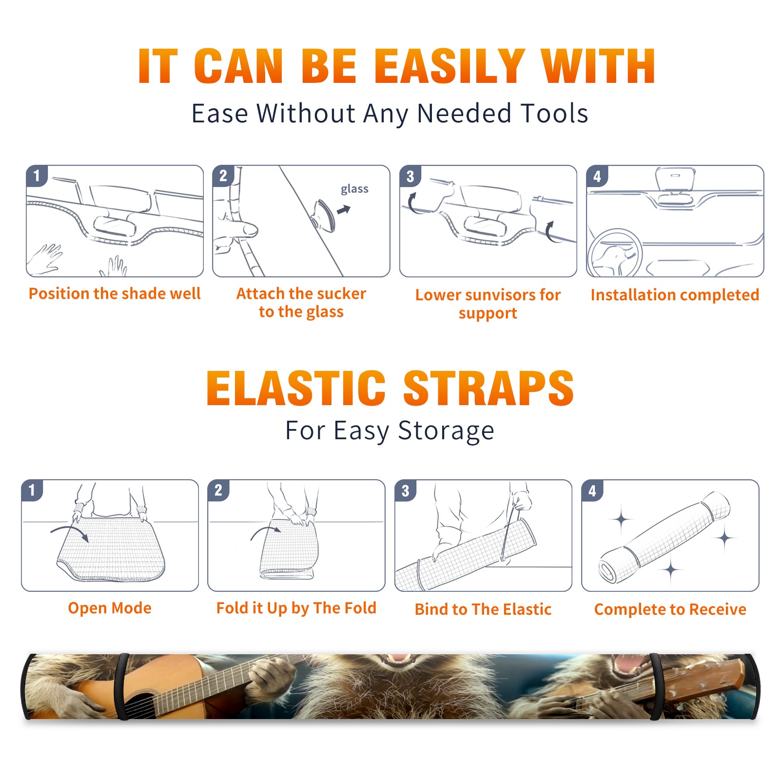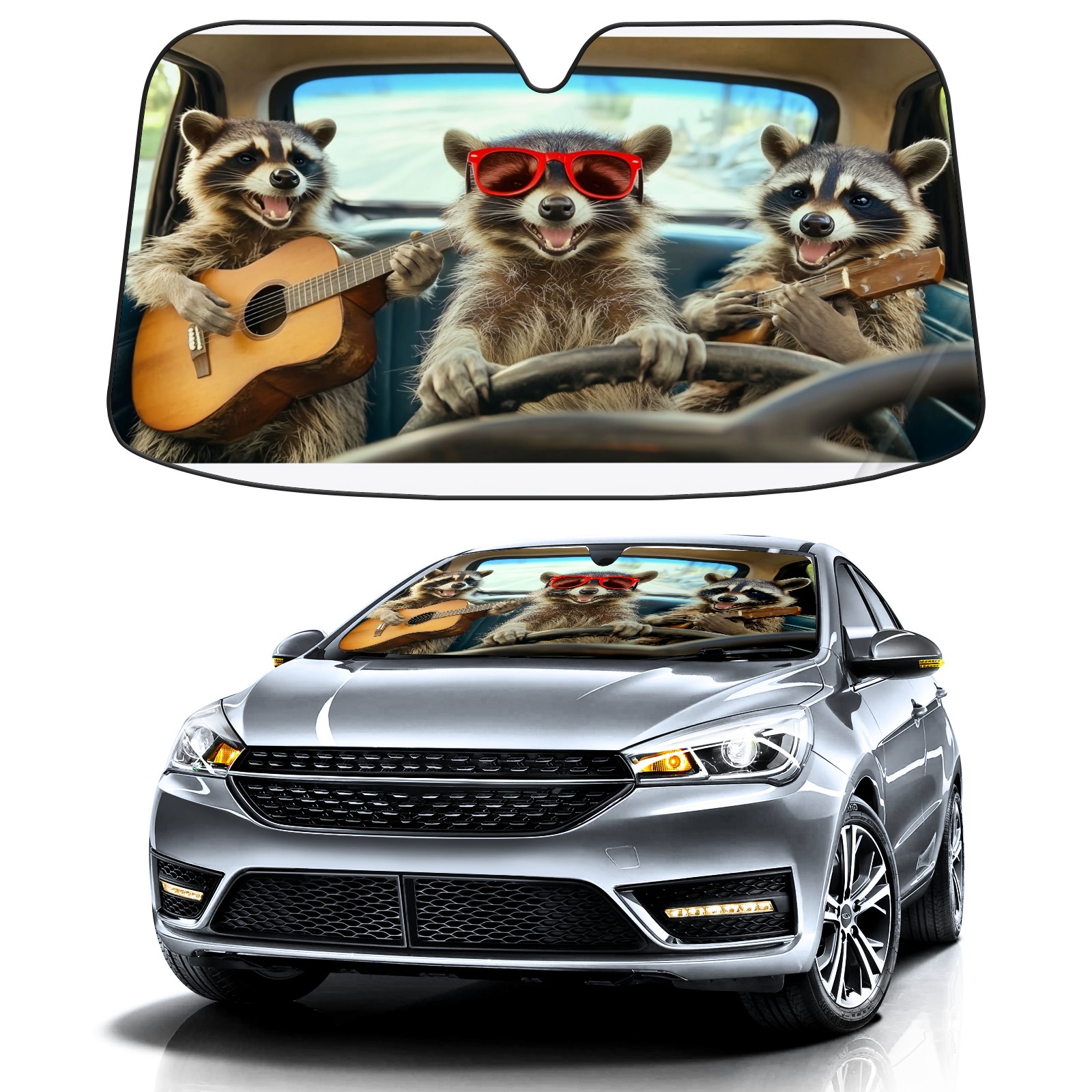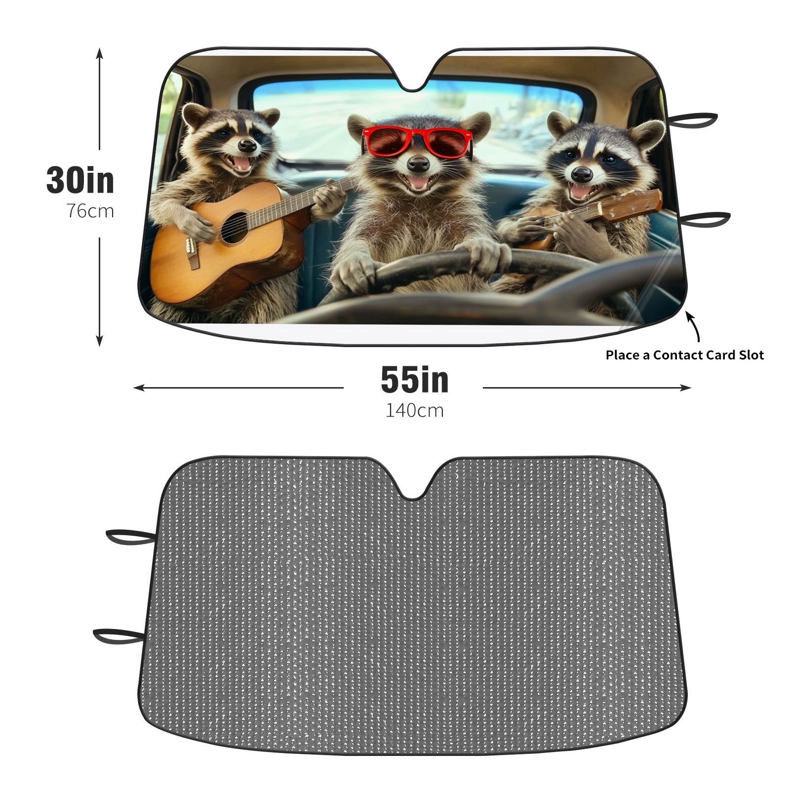 Three Smiling Raccoons Windshield Sun Shade for Car Thicken 5-Layer UV Reflector Auto Front Window Sunshade Visor Shield Cover and Keep Your Vehicle Cool(55" ¡Á 30")