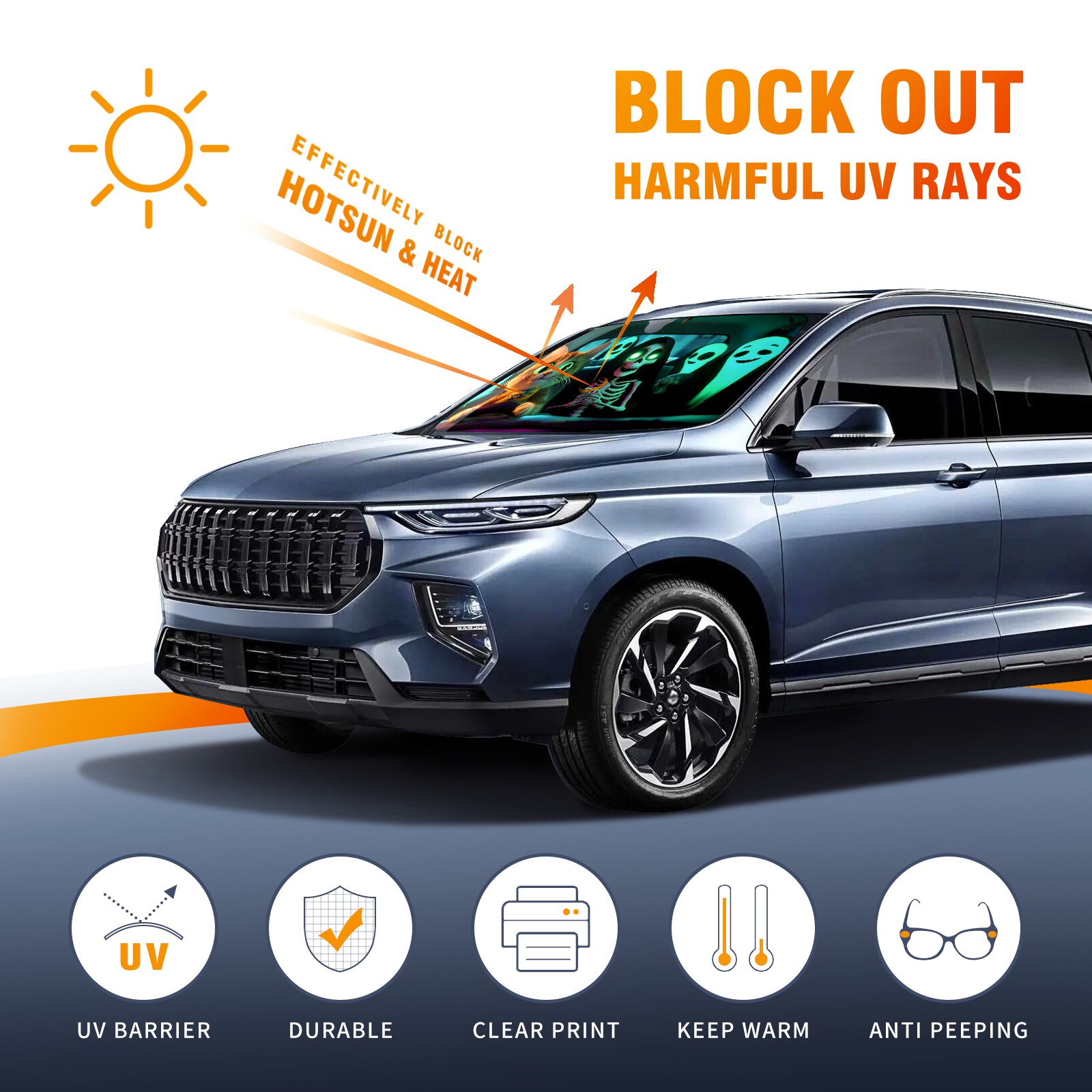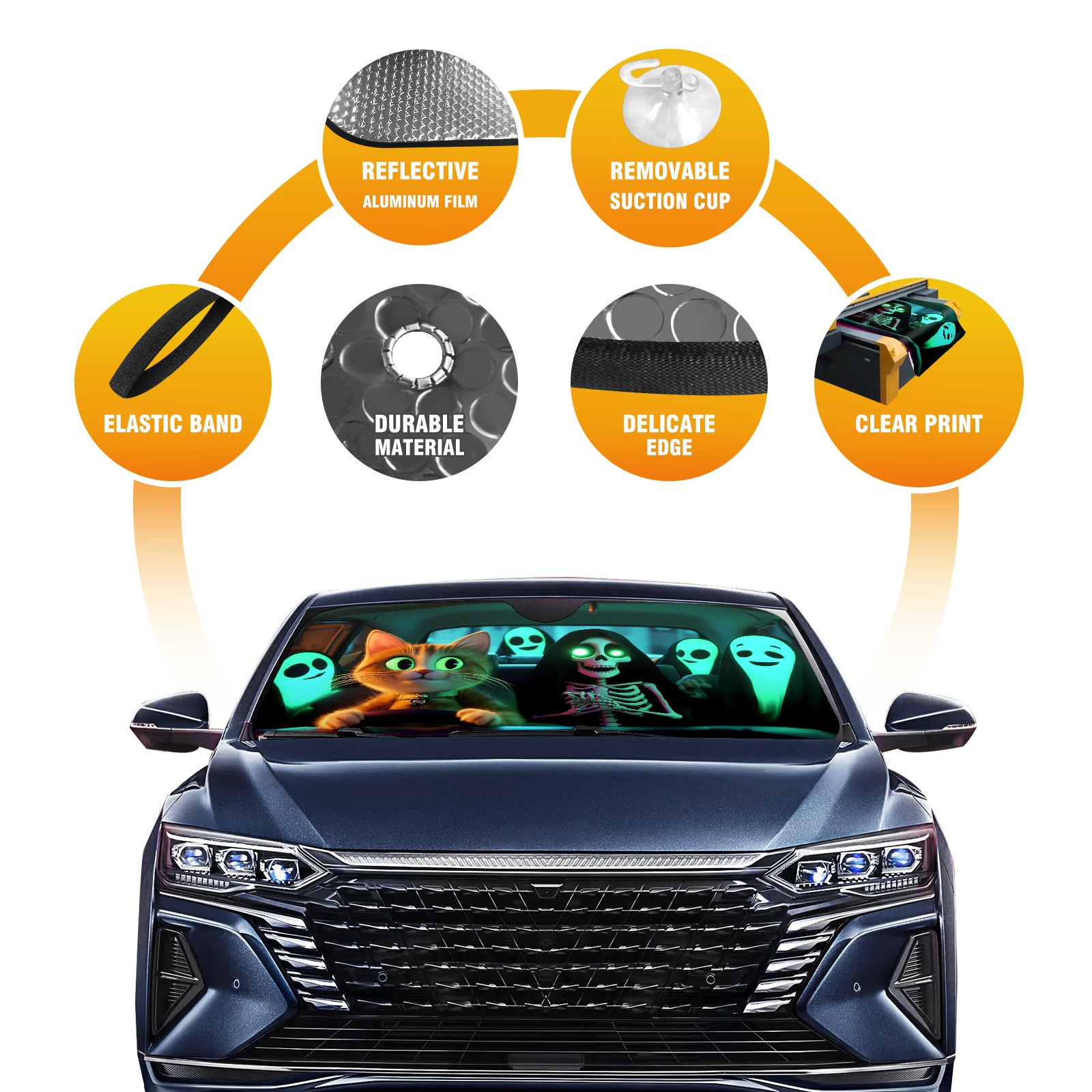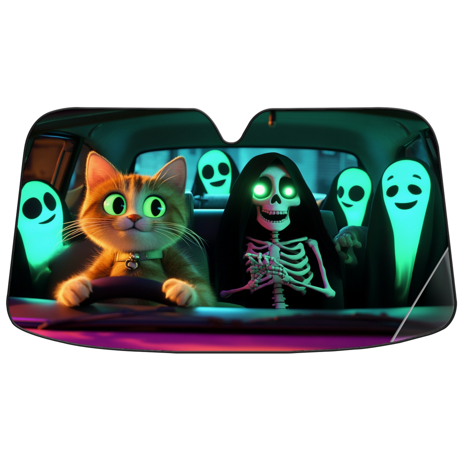 Cat Skeleton Windshield Sun Shade for Car Thicken 5-Layer UV Reflector Auto Front Window Sunshade Visor Shield Cover and Keep Your Vehicle Cool(55" ¡Á 30")
