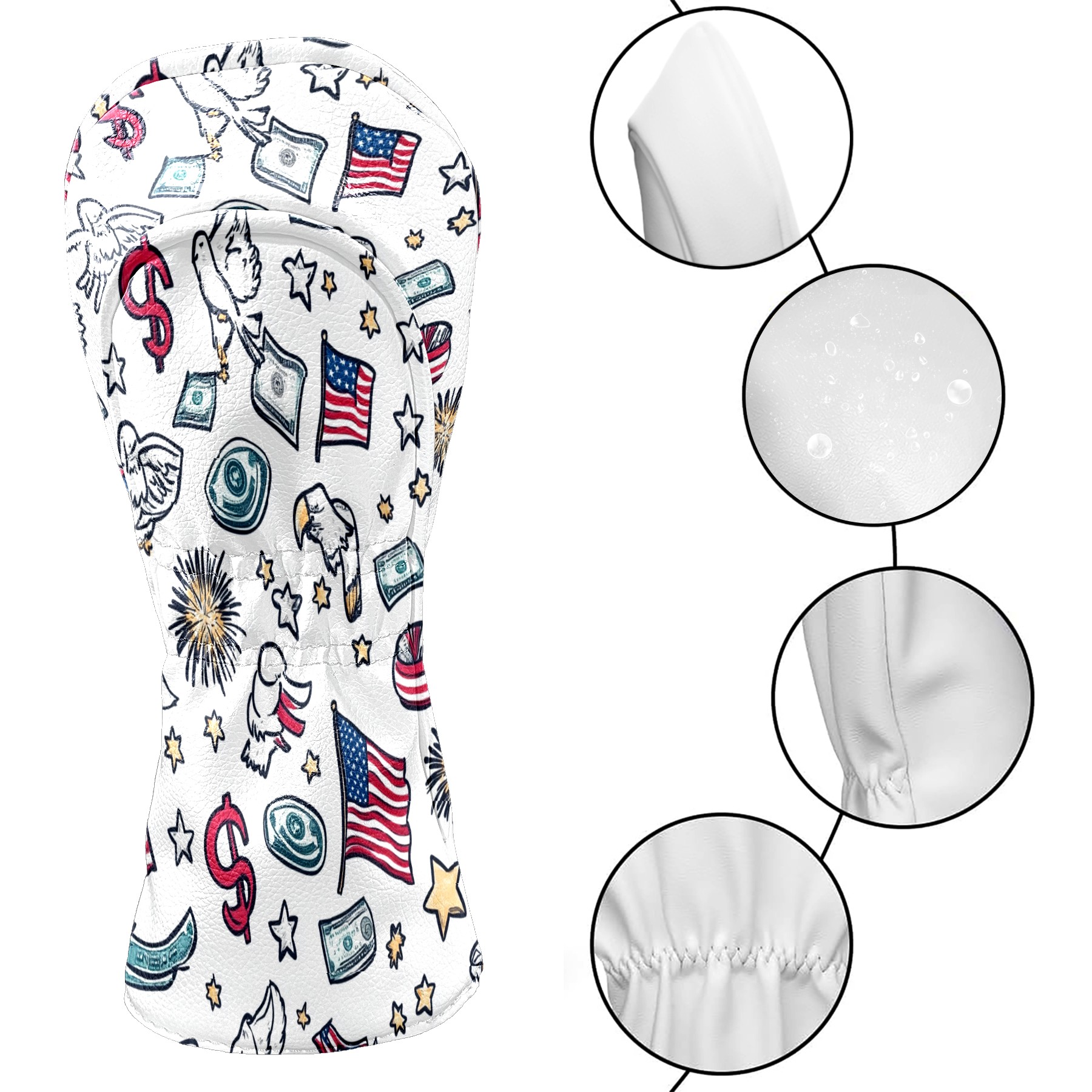 Golf Headcover for Fairway Woods and Hybrid, Waterproof Protective Cover for Golf Clubs, Ideal Golf Accessories Gift for Men Women (Patriotic Symbols)