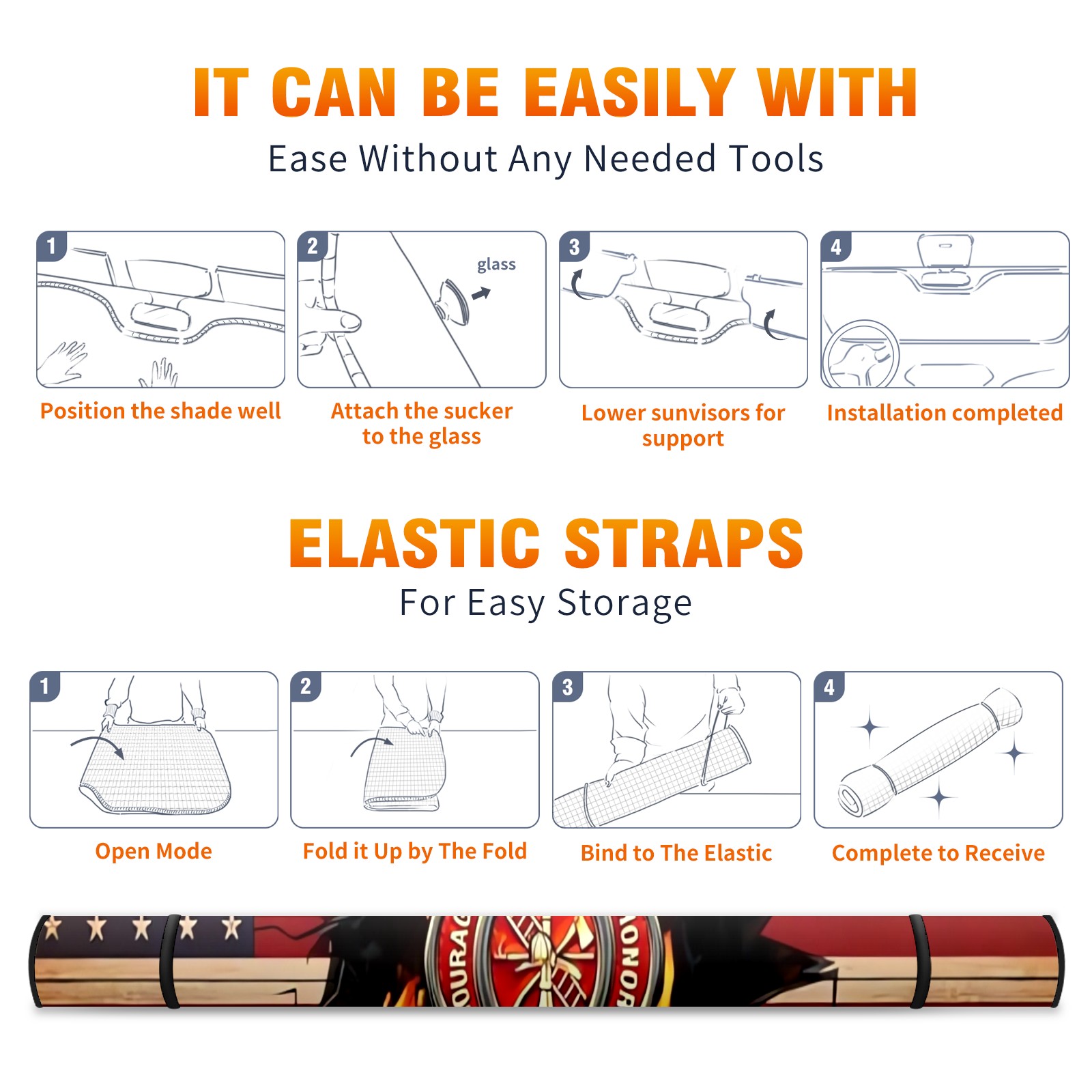 <p>[Material description] Aluminum foil + polyester</p> <p>Size: 140x76cm (55inx30in)</p> <p>[Product performance] Can effectively block the sun for your car, effectively protect your car interior, durable.</p> <p>Easy to carry: easy to fold, light and portable, reasonable size for carrying and storage, storage in the car will not take up too much space.</p> <p>Uv protection: uv protection, effectively protect your car interior, can keep your car interior cool, very suitable for internal protection, while preventing harmful UV damage to your upholstery. Protect car dashboard, steering wheel and chair from sun aging. Keep the car cool: Using high-quality aluminum foil bubbles can reduce heat, has good insulation, effectively reduce the temperature of the car, save fuel consumption, air conditioning helps to keep the car cool in hot and sunny weather.</p> <p>Suitable for car portable, outdoor travel, work out, to meet your various choices.</p>
