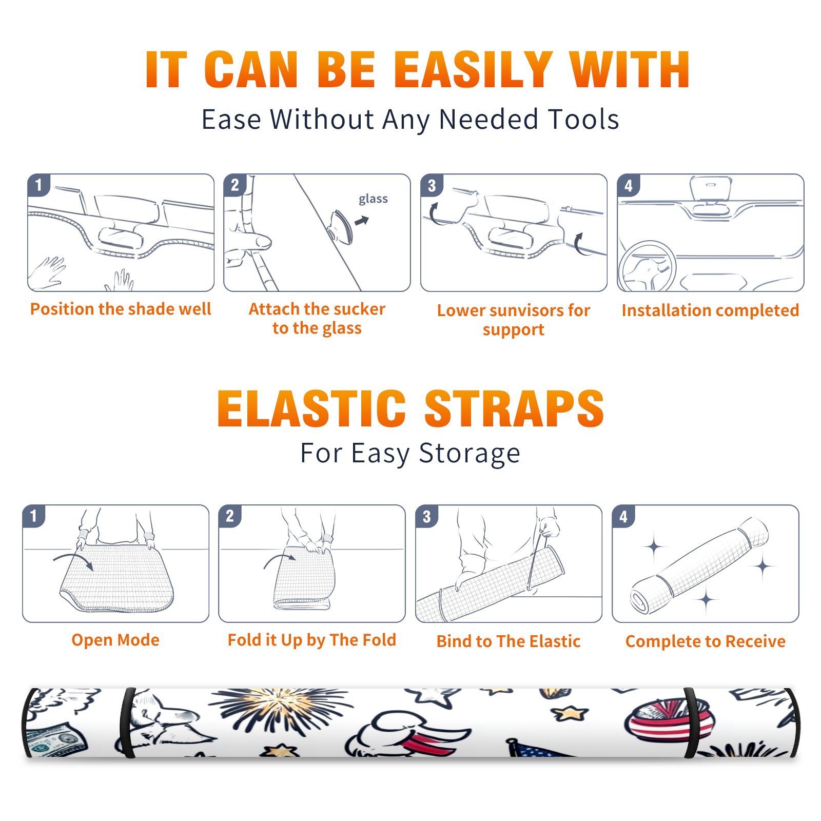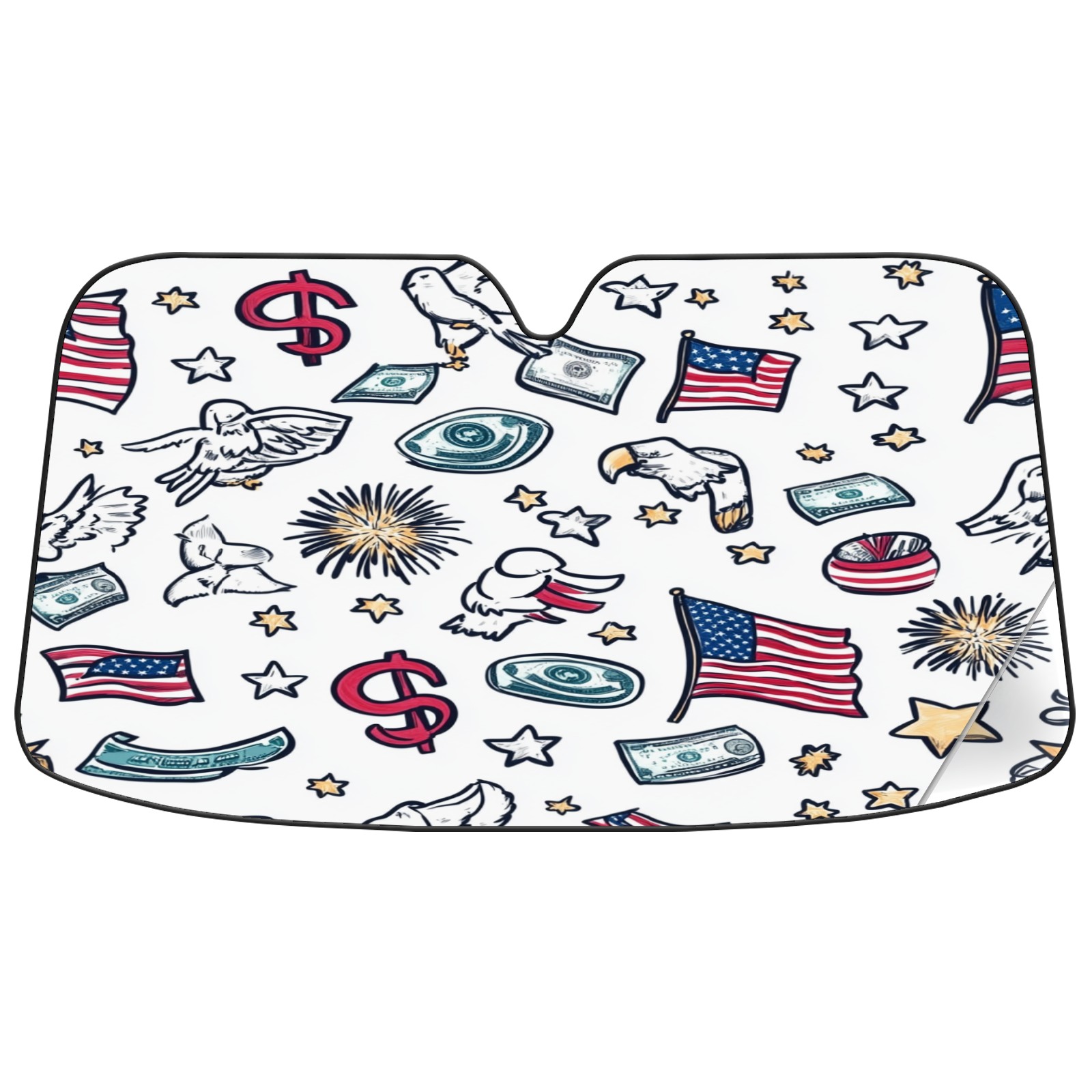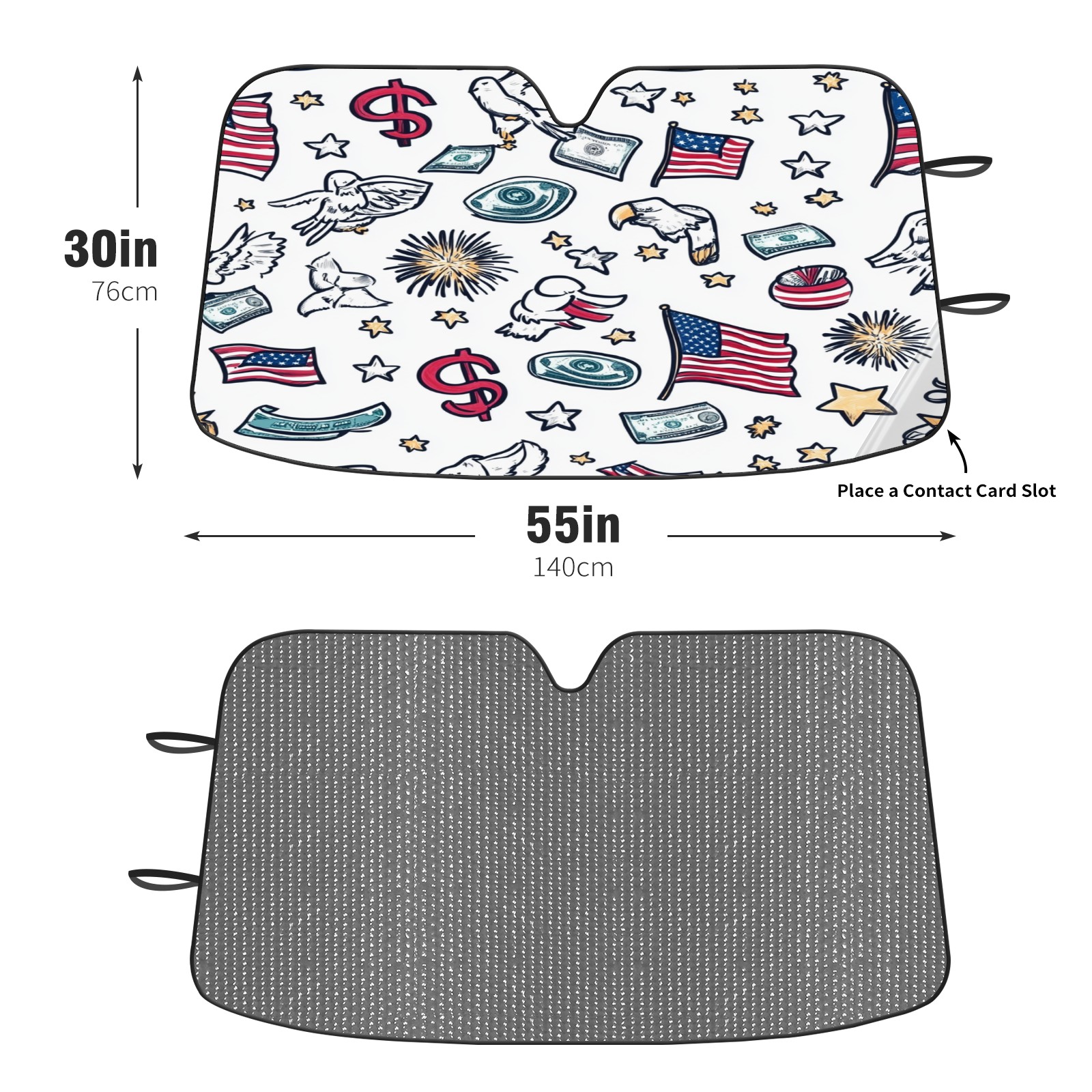 Car Windshield Sun Shade Foldable-Universal Fit Sunshade for Front Windows, UV Protection Heat Shield for Most Vehicles (55x30in)-Sun Visor Extender, Dashboard Cover(Patriotic Symbols)