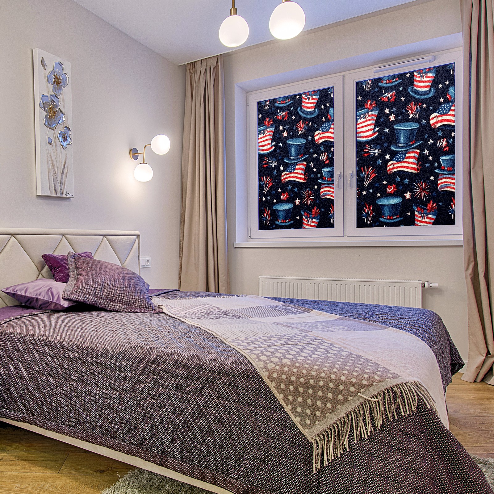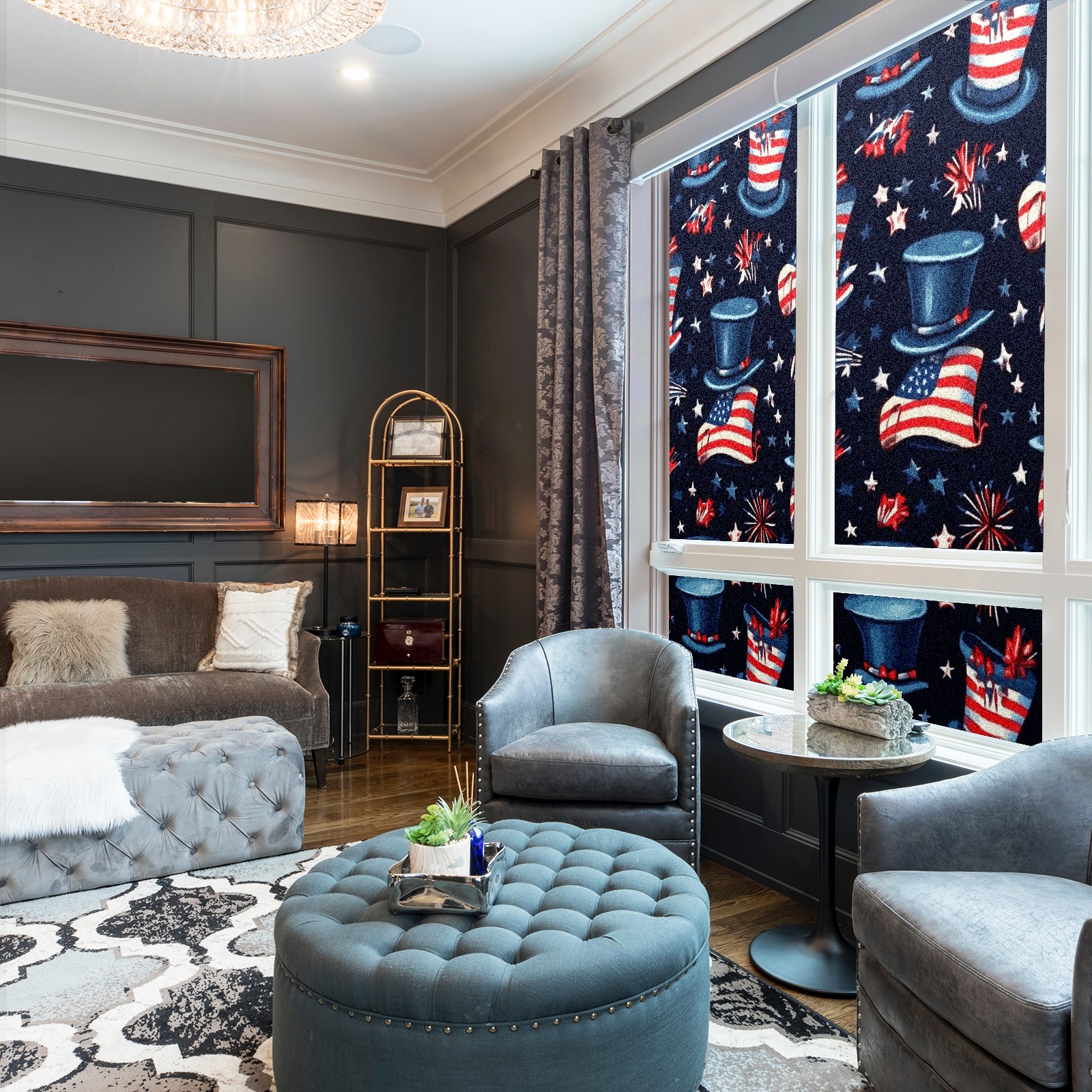 Window Privacy Film Stain Glass Window Privacy Film Stain Glass Static Stained Glass Cling Tint for Home Bedroom 17.7 x 23.6 Inches American Flag Pattern