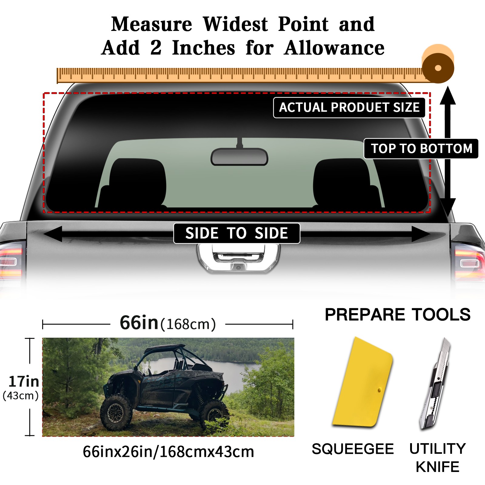 <p><strong>Truck Rear Window Graphics Decals Pickup Trucks Back Window Film Stickers 66" x 22" Perforated Vinyl Wrap Stickers Decorations for Car Rear Window</strong></p><p><strong><br /></strong></p><p><strong>Features :</strong></p><p>- Size of the rear window decals for trucks is 66x22 Inches (168x56cm).</p><p>- High quality perforated vinyl window film, one way vision sticker.</p><p>- Perforated is see through from the inside but not from outside.</p><p>- Clear printing, waterproof and durable.</p><p>- The car back window graphics stickers fits most truck and makes your vehicle more beautiful.&nbsp;</p><p><br /></p><p><strong>【Installation Instructions】</strong></p><p><strong>1. CLEAN SURFACE -</strong> Clean the rear window thoroughly and make sure the surface clean.</p><p><strong>2. STICK THE DECALS -</strong> Tear off the paper on the back and stick the decal on the window.</p><p><strong>3. SCRAPE OFF AIR BUBBLES -</strong> Use a squeegee or other card to scrape off the excess air bubbles.</p><p><strong>4. TRIM THE EXCESS -</strong> Use a knife to cut off the excess stickers of the window, finally complete.</p><p><br /></p><p>1. Please measure the size before purchasing, back window graphics decal for truck can be cut to your desired size.</p><p>2.The graphics stickers for truck back window is a great gift for yourself also can as a birthday / halloween / christmas gift for your friends and family.</p>