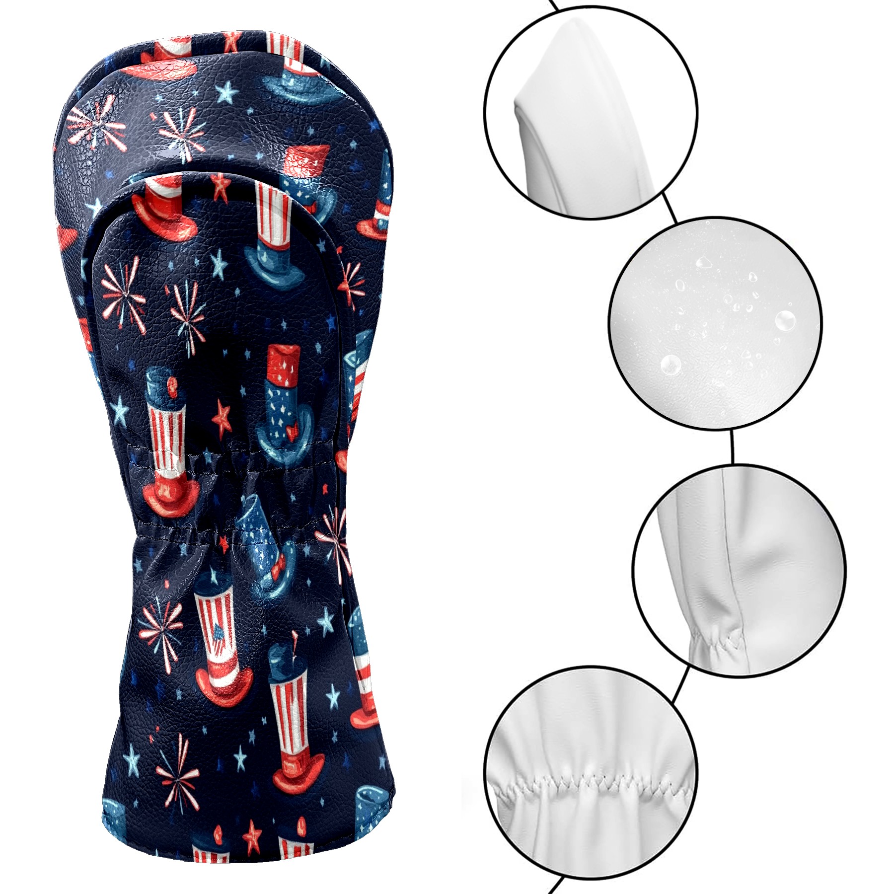 Professional Golf Club Head Covers Set for Fairway Woods and Hybrid - Waterproof Design with Stretchable Fit, Universal Club Protection for Men & Women (American Flag Top Hats)