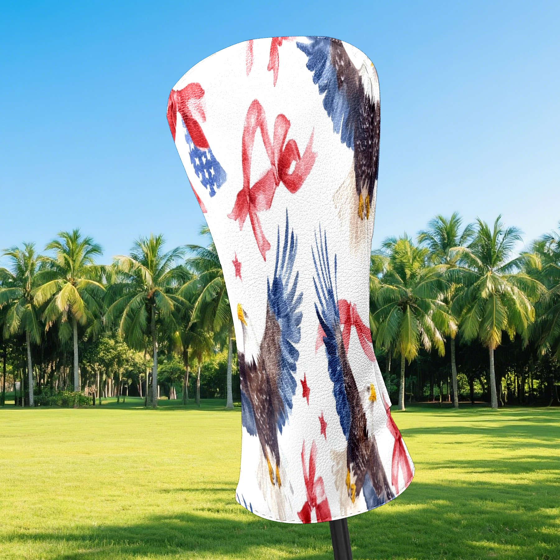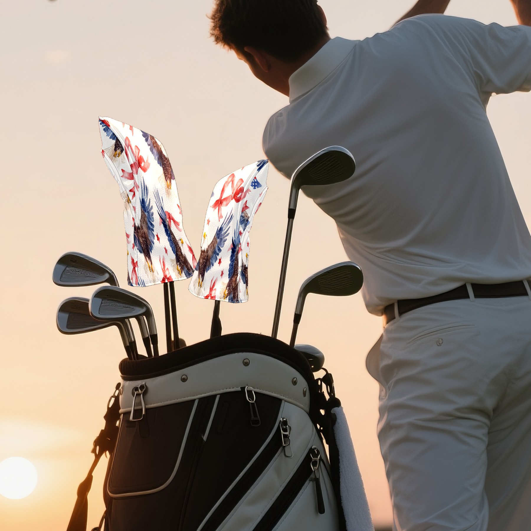 Professional Golf Club Head Covers Set for Fairway Woods and Hybrid - Waterproof Design with Stretchable Fit, Universal Club Protection for Men & Women (American Flag Bows And Eagles)