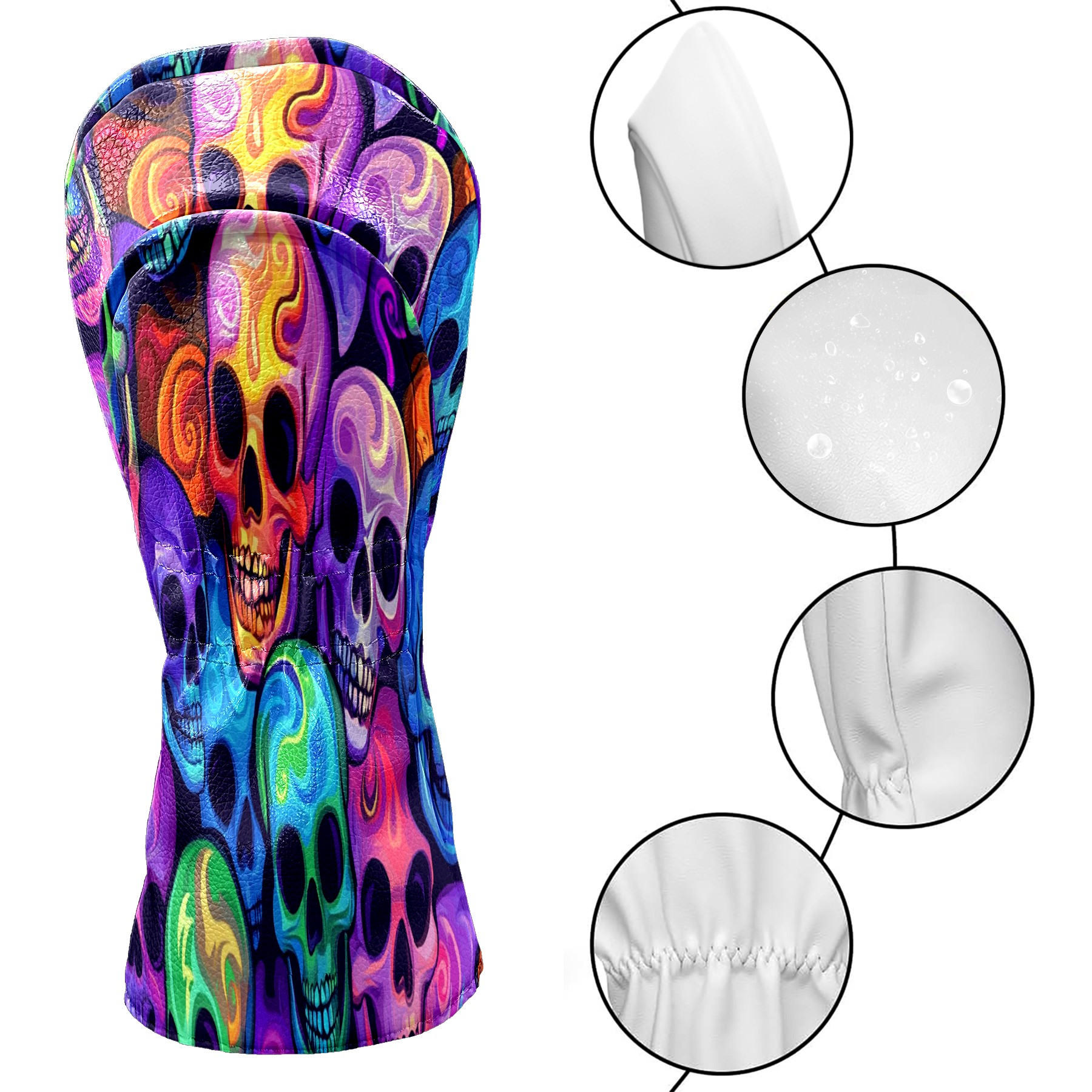 Professional Golf Club Head Covers Set for Fairway Woods and Hybrid - Waterproof Design with Stretchable Fit, Universal Club Protection for Men & Women (Colorful Skulls)