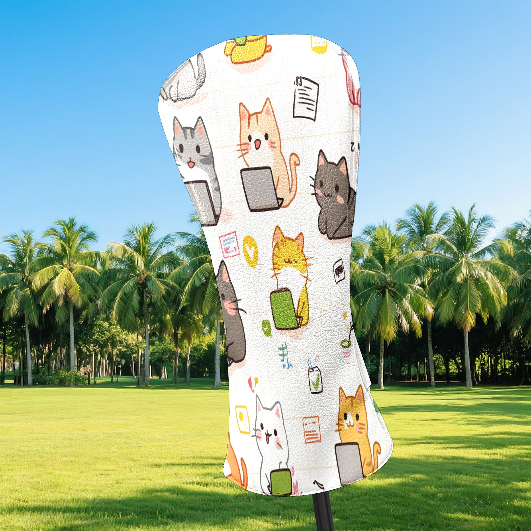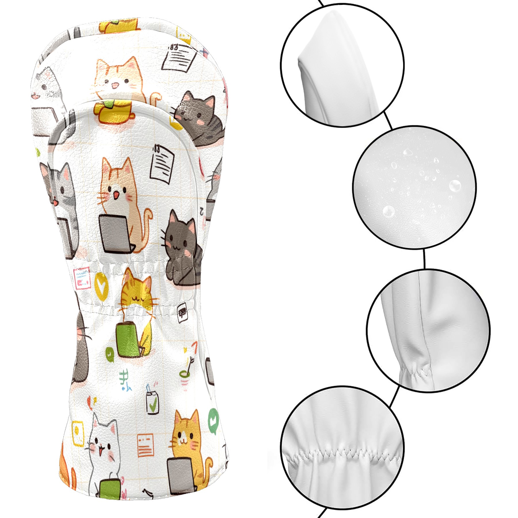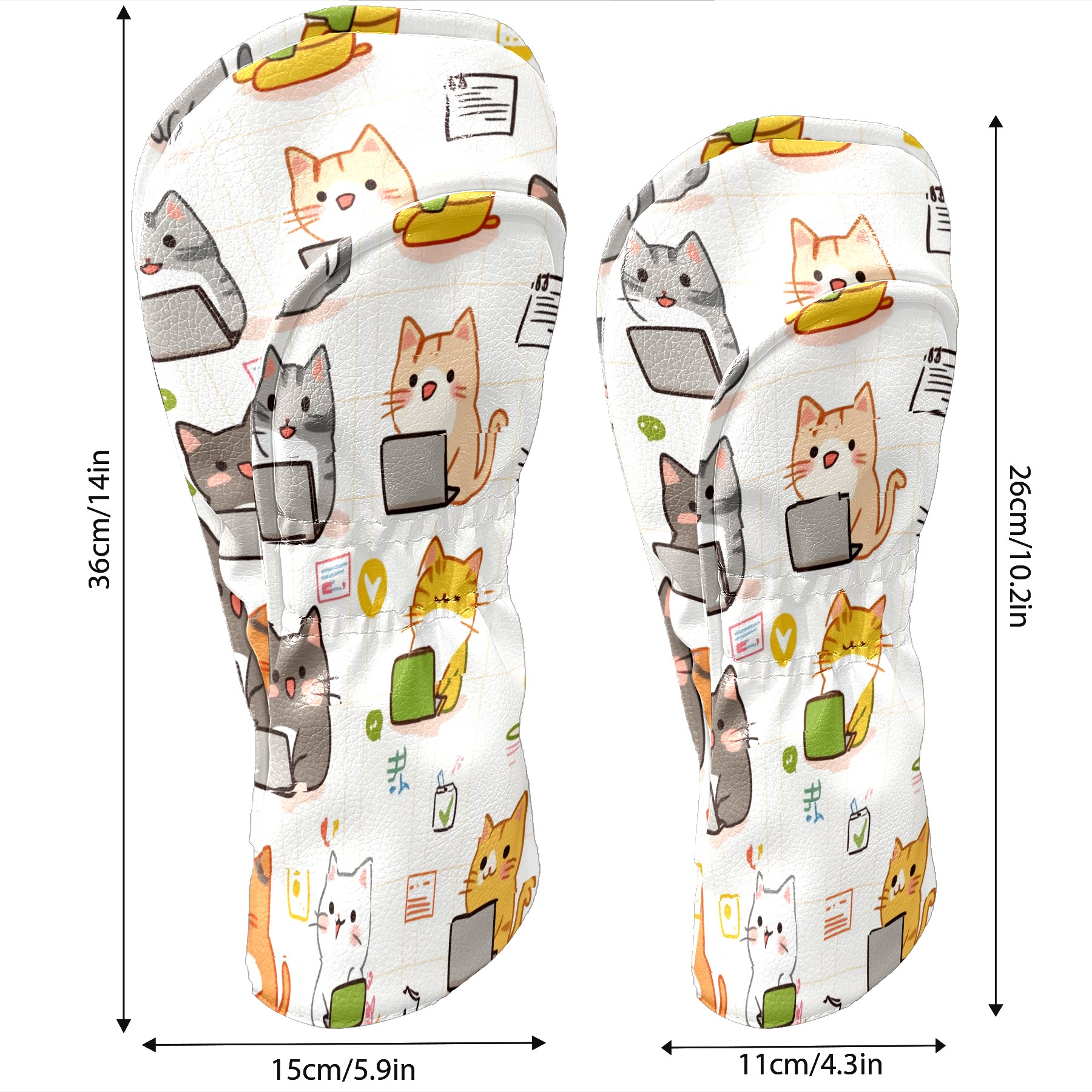 Professional Golf Club Head Covers Set for Fairway Woods and Hybrid - Waterproof Design with Stretchable Fit, Universal Club Protection for Men & Women (Cats Working)