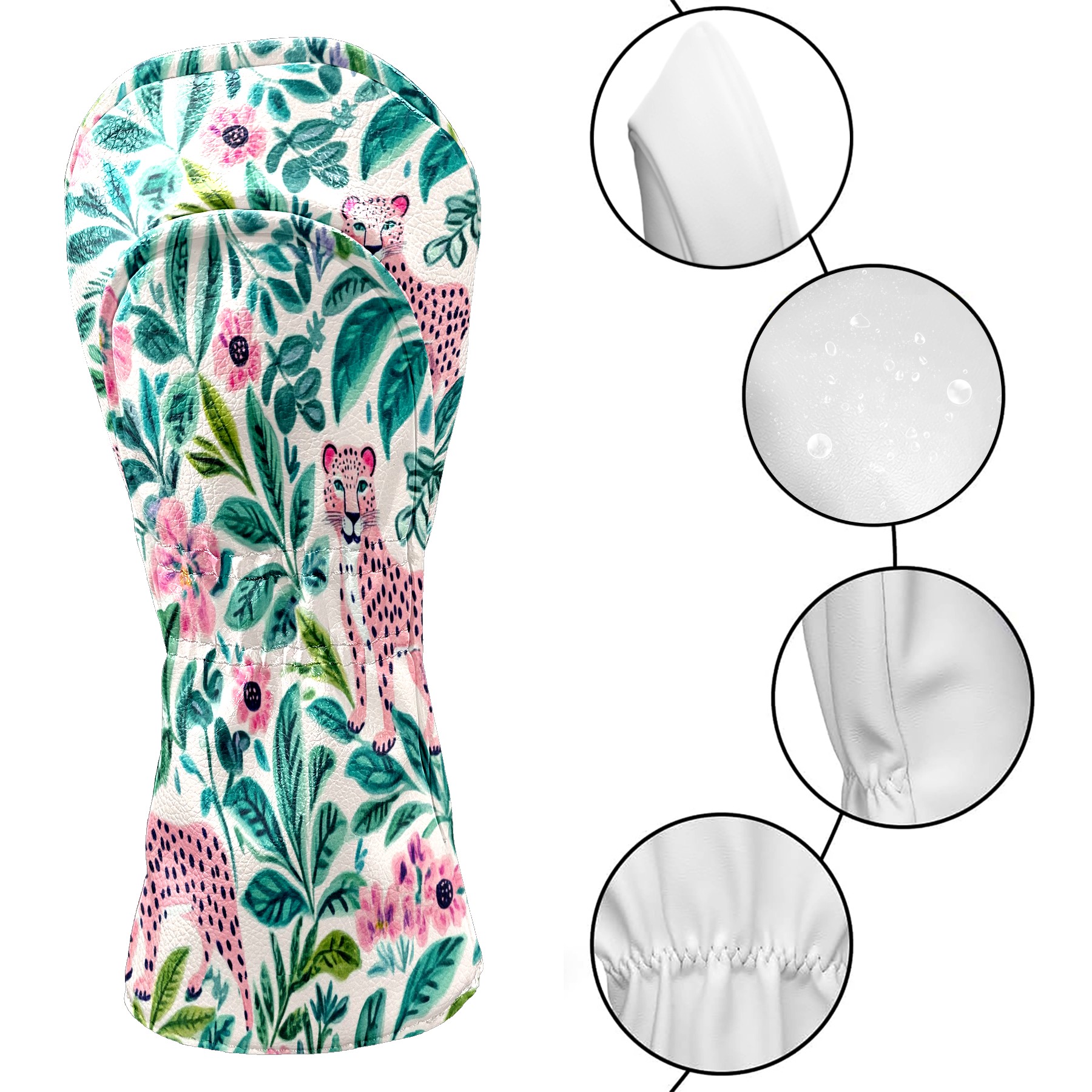 Professional Golf Club Head Covers Set for Fairway Woods and Hybrid - Waterproof Design with Stretchable Fit, Universal Club Protection for Men & Women (Pink Cheetahs)
