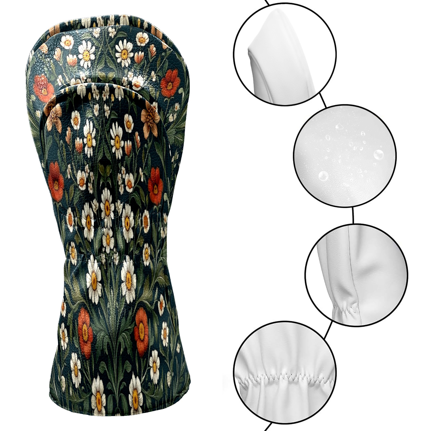 Professional Golf Club Head Covers Set for Fairway Woods and Hybrid - Waterproof Design with Stretchable Fit, Universal Club Protection for Men & Women (Spring Pattern)