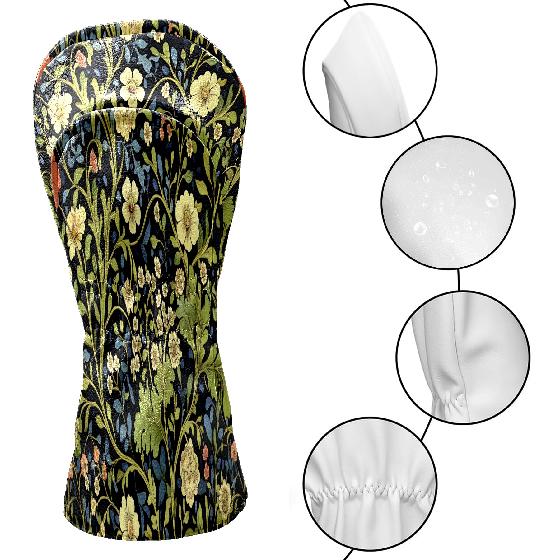 Professional Golf Club Head Covers Set for Fairway Woods and Hybrid - Waterproof Design with Stretchable Fit, Universal Club Protection for Men & Women (Red Yellow Floral)