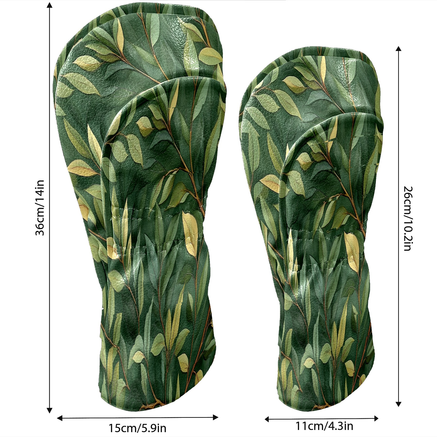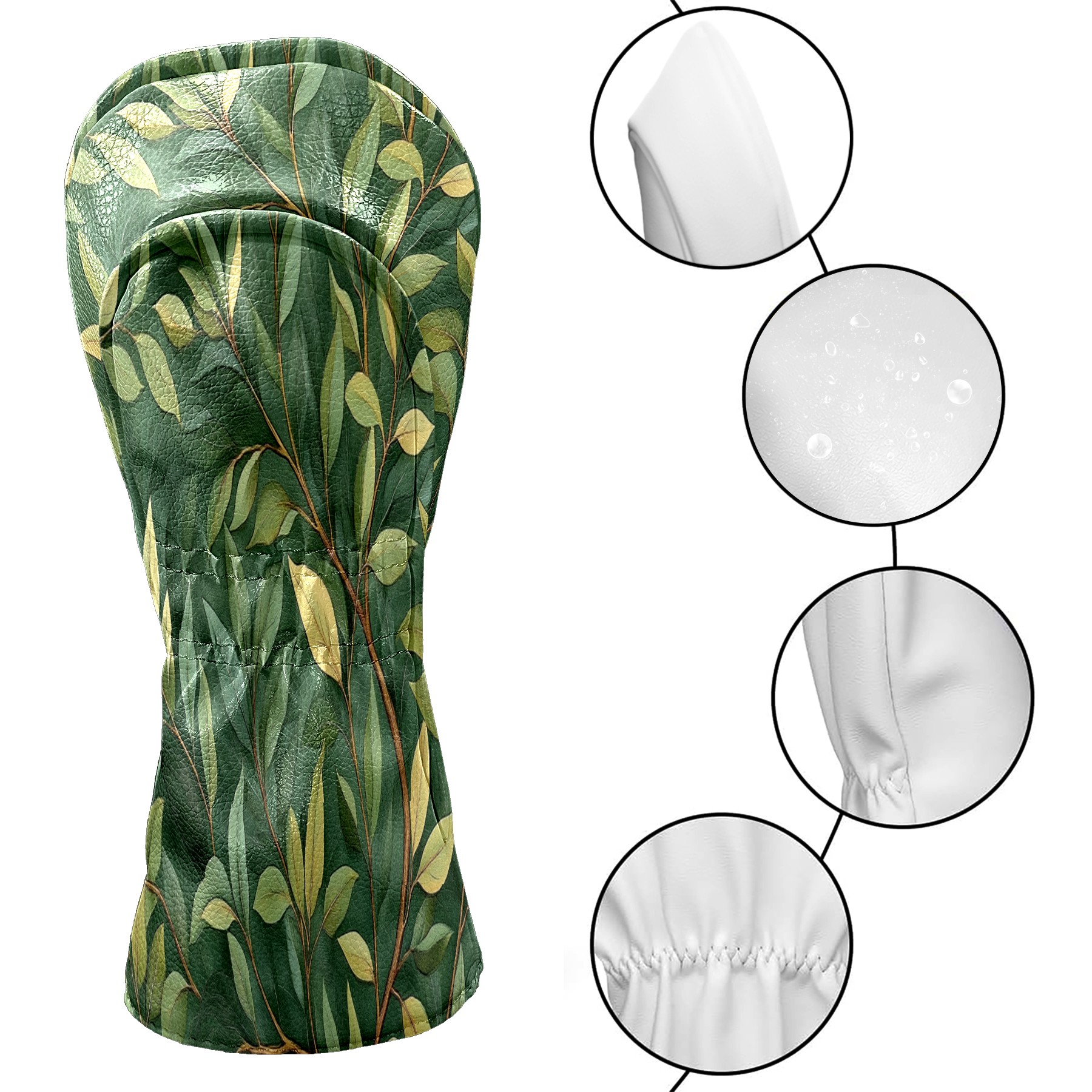 Professional Golf Club Head Covers Set for Fairway Woods and Hybrid - Waterproof Design with Stretchable Fit, Universal Club Protection for Men & Women (Green Leaves)