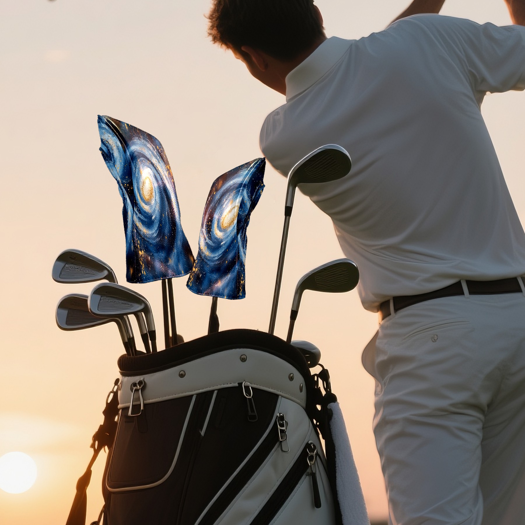 Professional Golf Club Head Covers Set for Fairway Woods and Hybrid - Waterproof Design with Stretchable Fit, Universal Club Protection for Men & Women (Watercolor Swirling Galaxy)