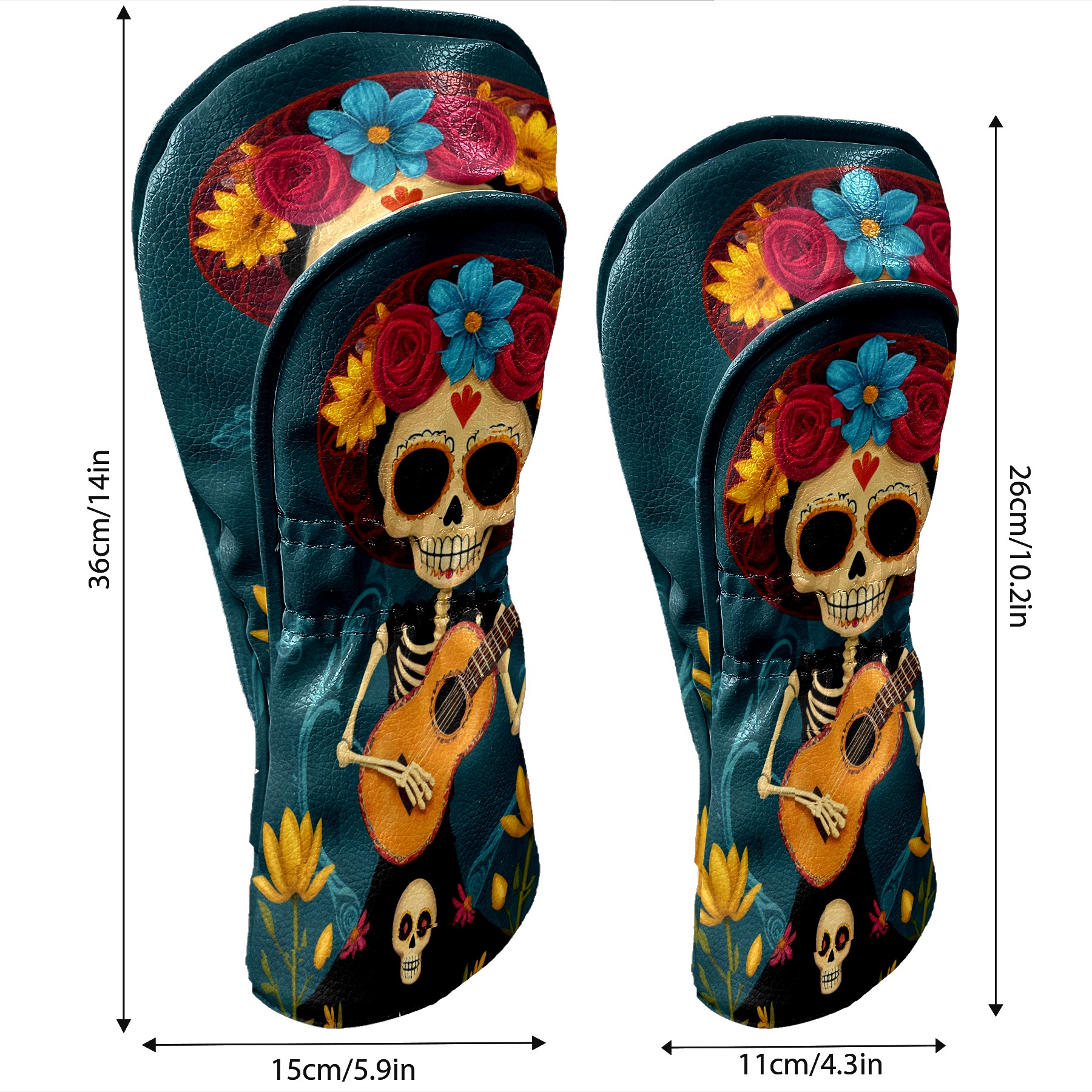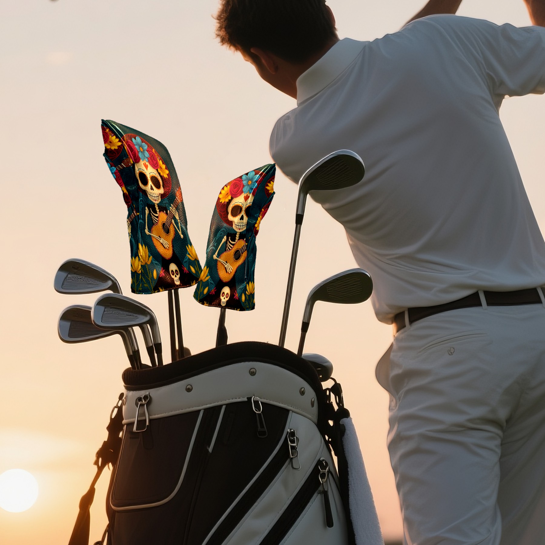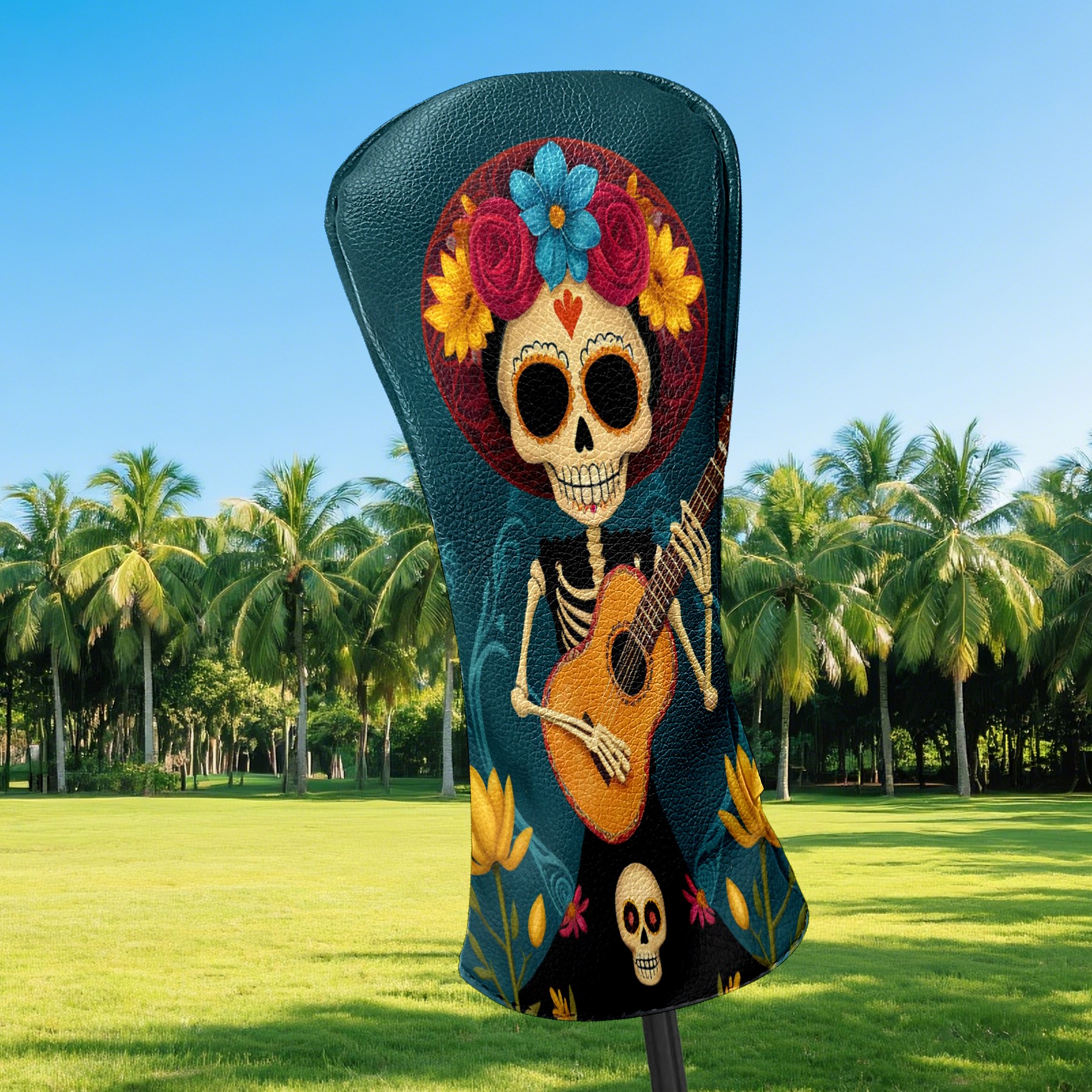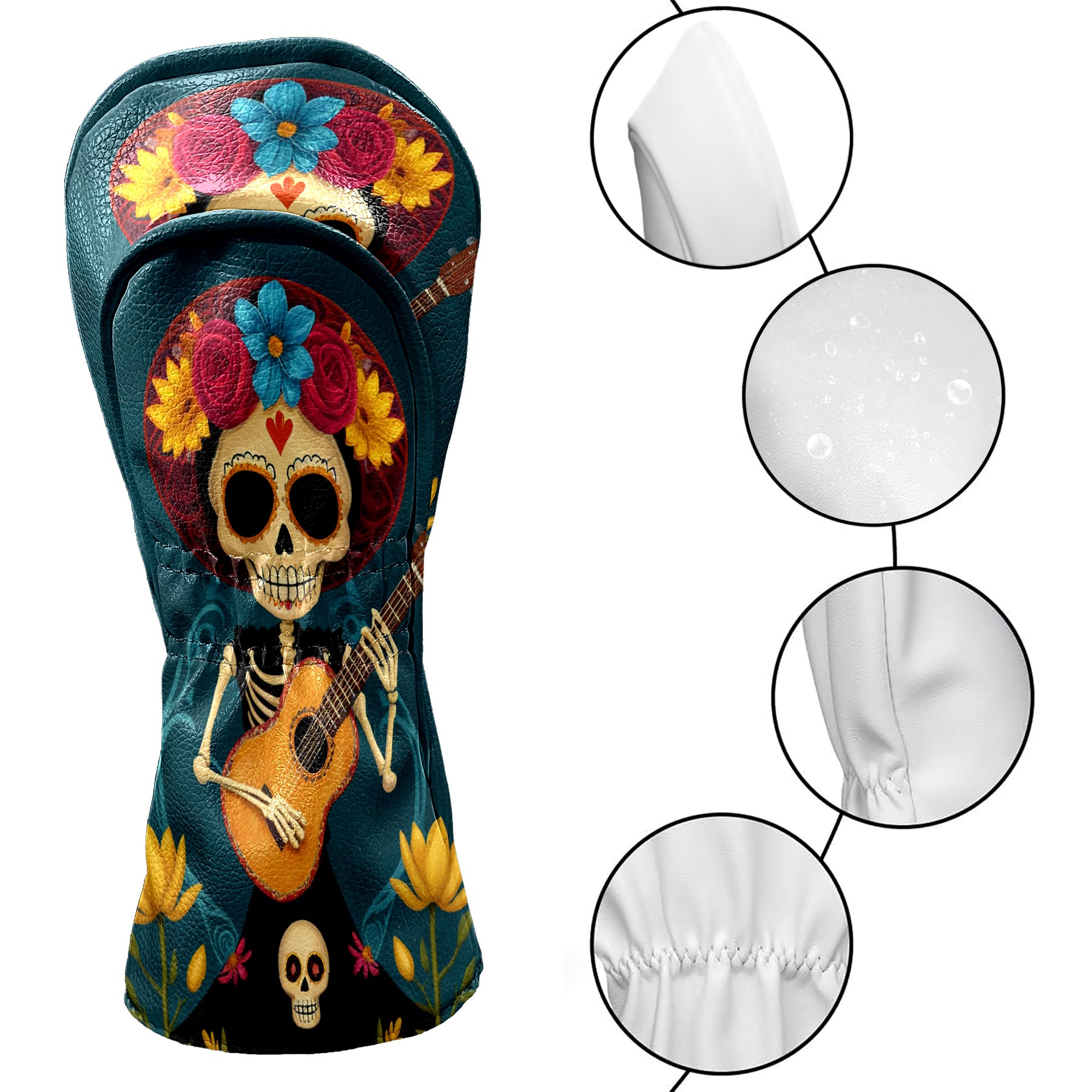 Golf Club Head Cover Premium Leather Driver Headcover, Golf Head Covers for Woods and Driver Waterproof Golf Headcovers with Anti-Scratch Lining for Men Women (Skull Floral)