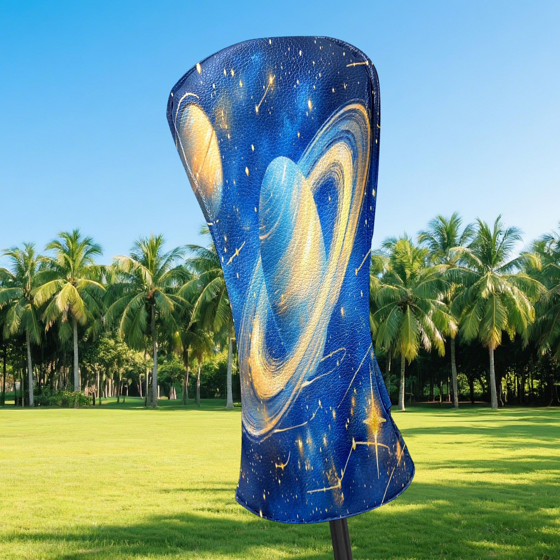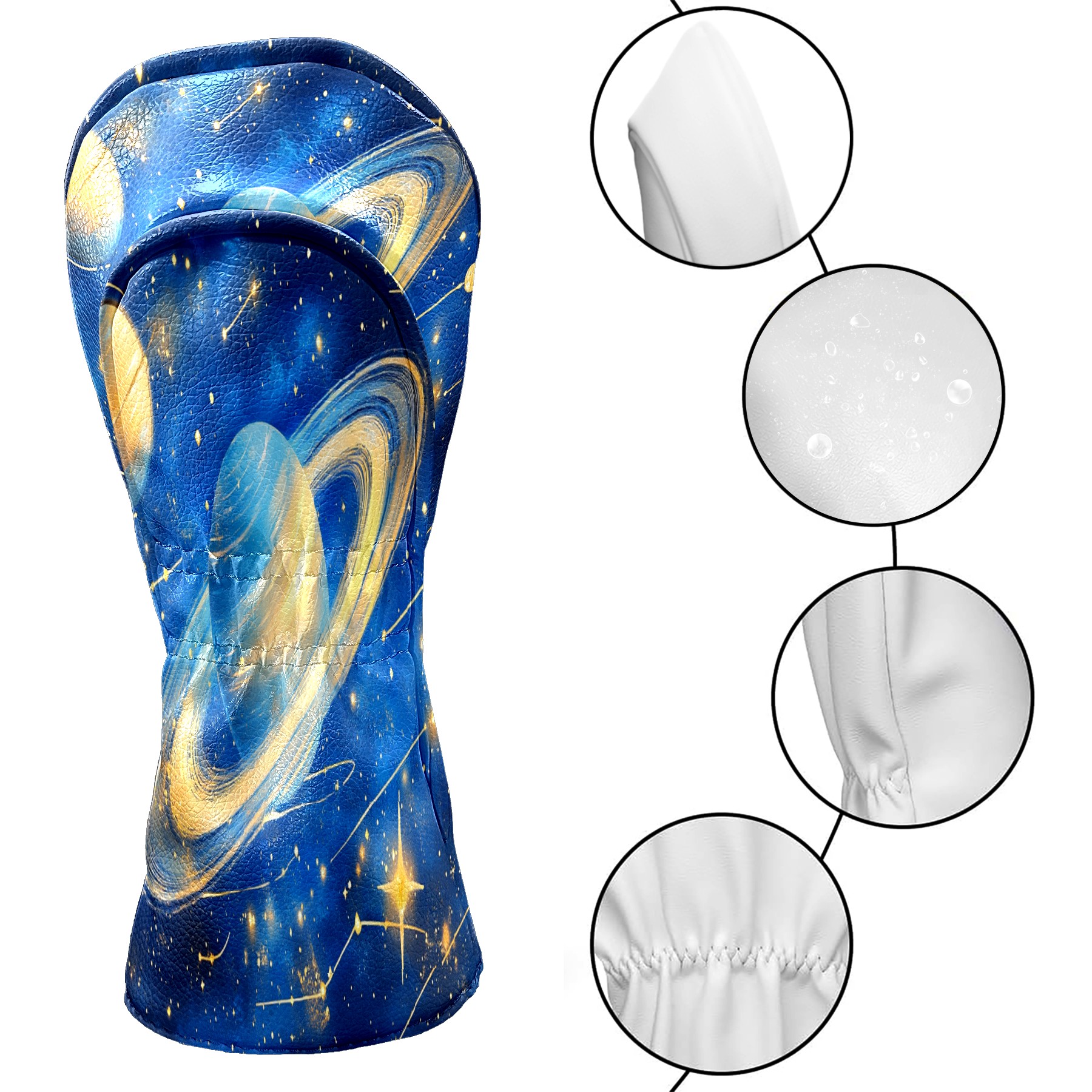 Professional Golf Club Head Covers Set for Fairway Woods and Hybrid - Waterproof Design with Stretchable Fit, Universal Club Protection for Men & Women (Golden Lines Planets)