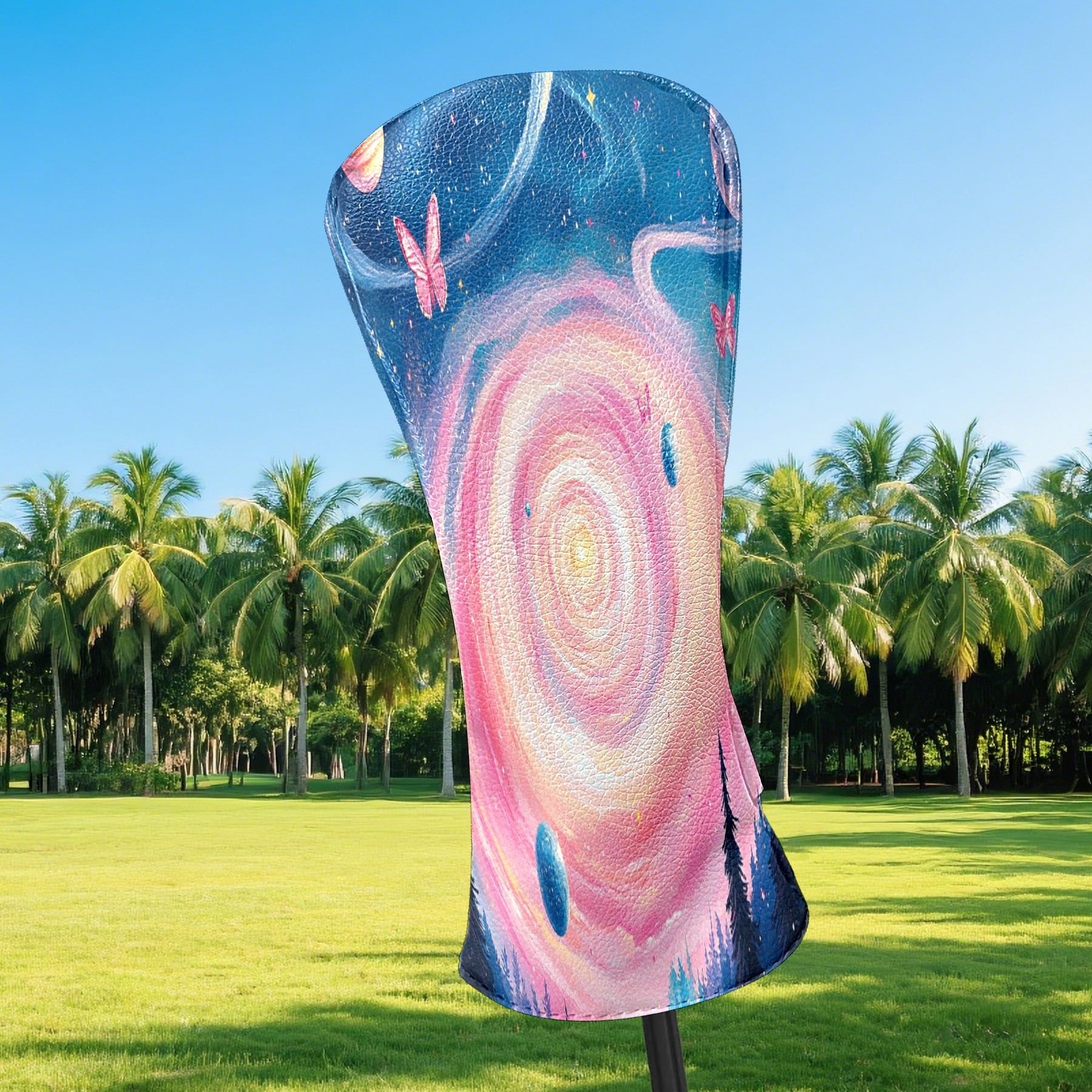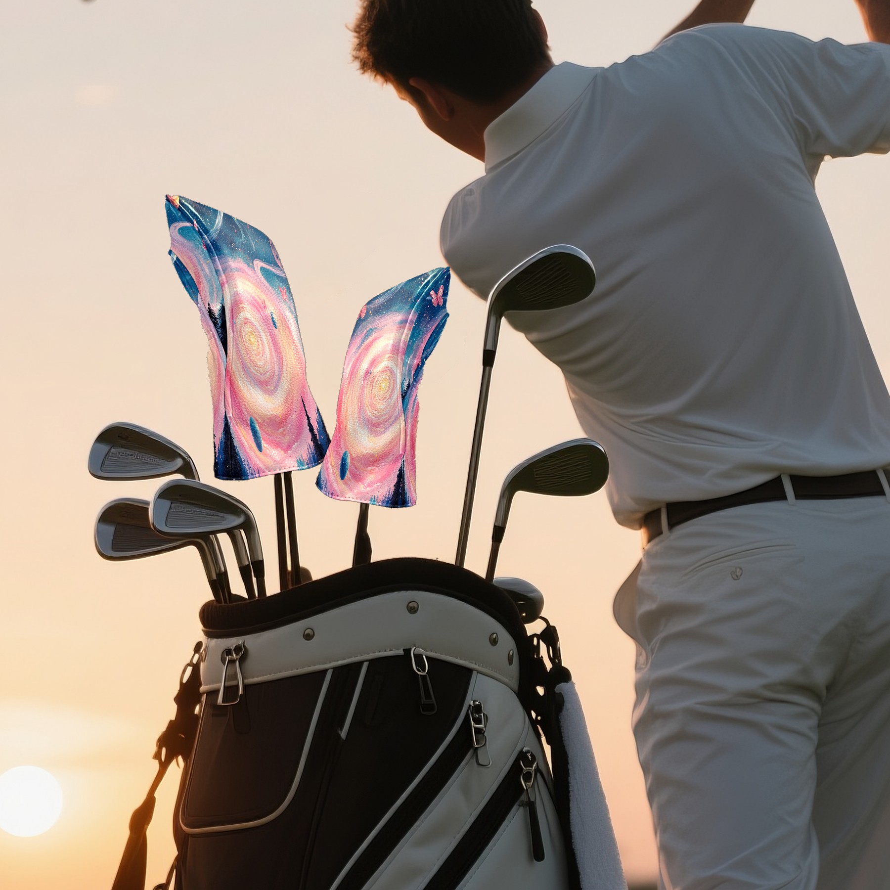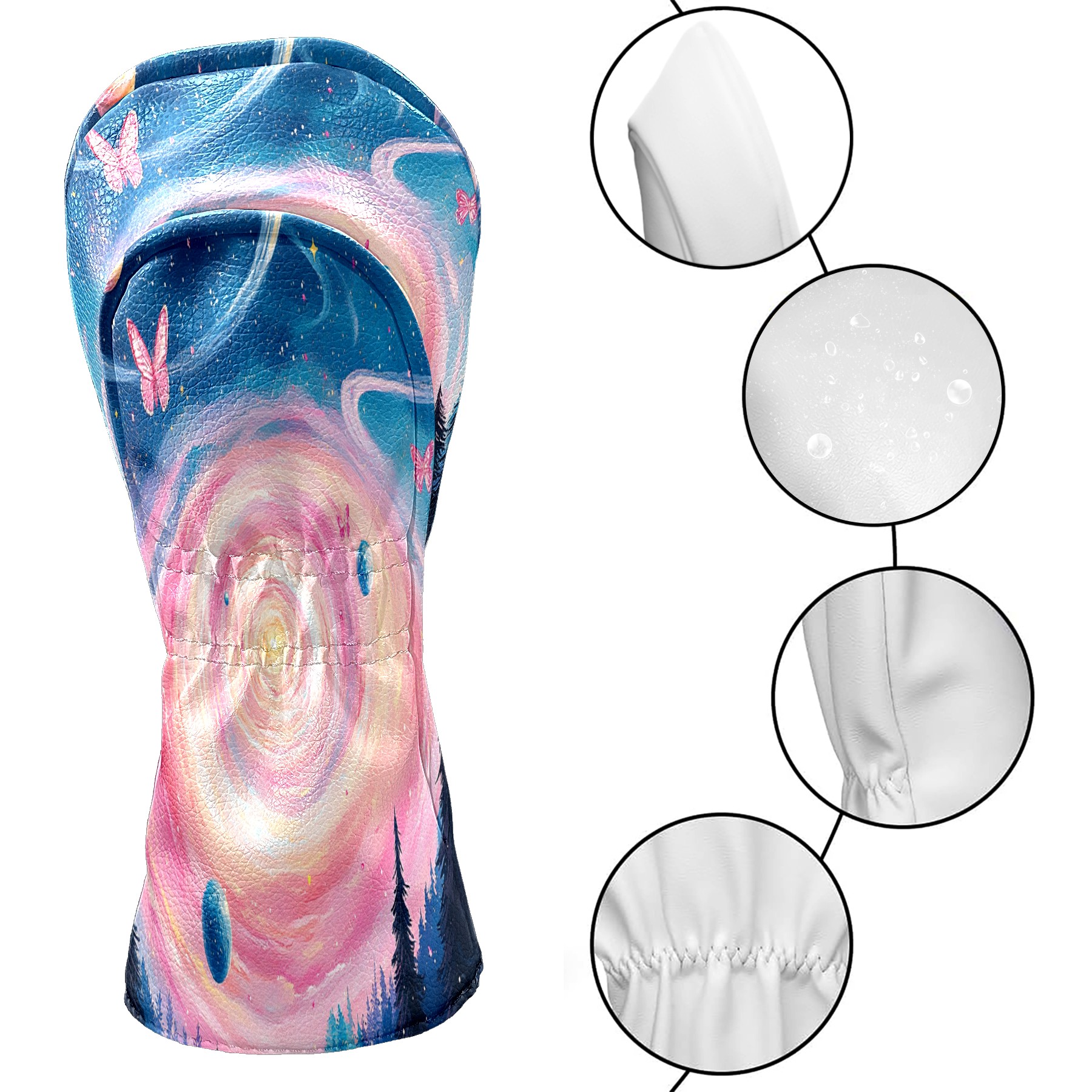Professional Golf Club Head Covers Set for Fairway Woods and Hybrid - Waterproof Design with Stretchable Fit, Universal Club Protection for Men & Women (Pink Spiral Galaxy)