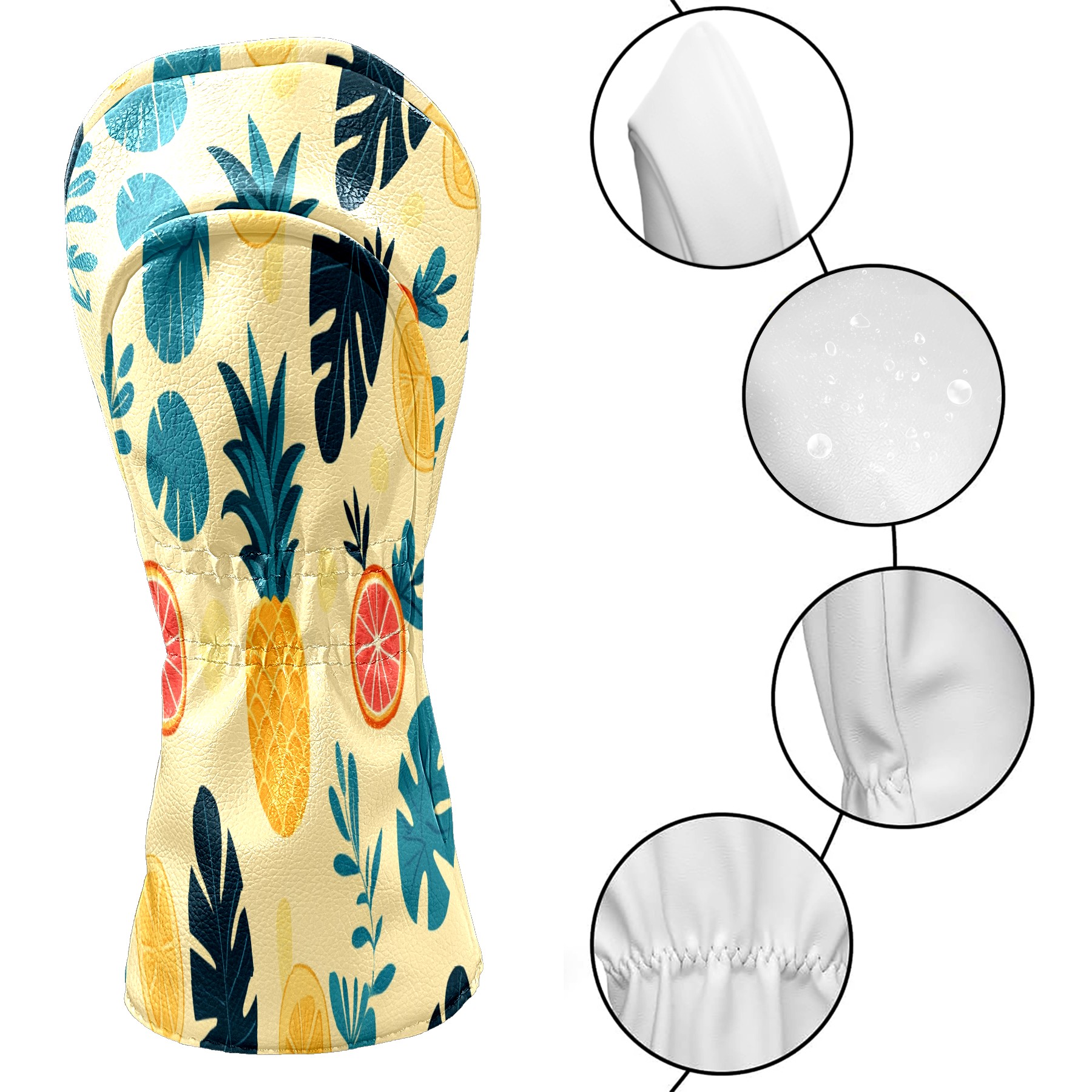 Professional Golf Club Head Covers Set for Fairway Woods and Hybrid - Waterproof Design with Stretchable Fit, Universal Club Protection for Men & Women (Pineapples Tropical Leaves)