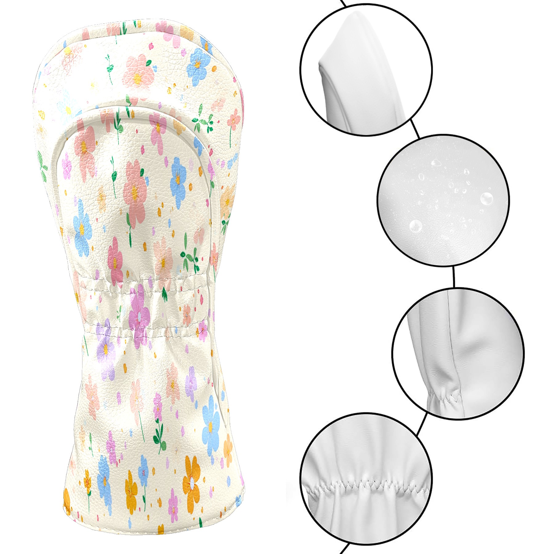 Professional Golf Club Head Covers Set for Fairway Woods and Hybrid - Waterproof Design with Stretchable Fit, Universal Club Protection for Men & Women (Spring Flowers)
