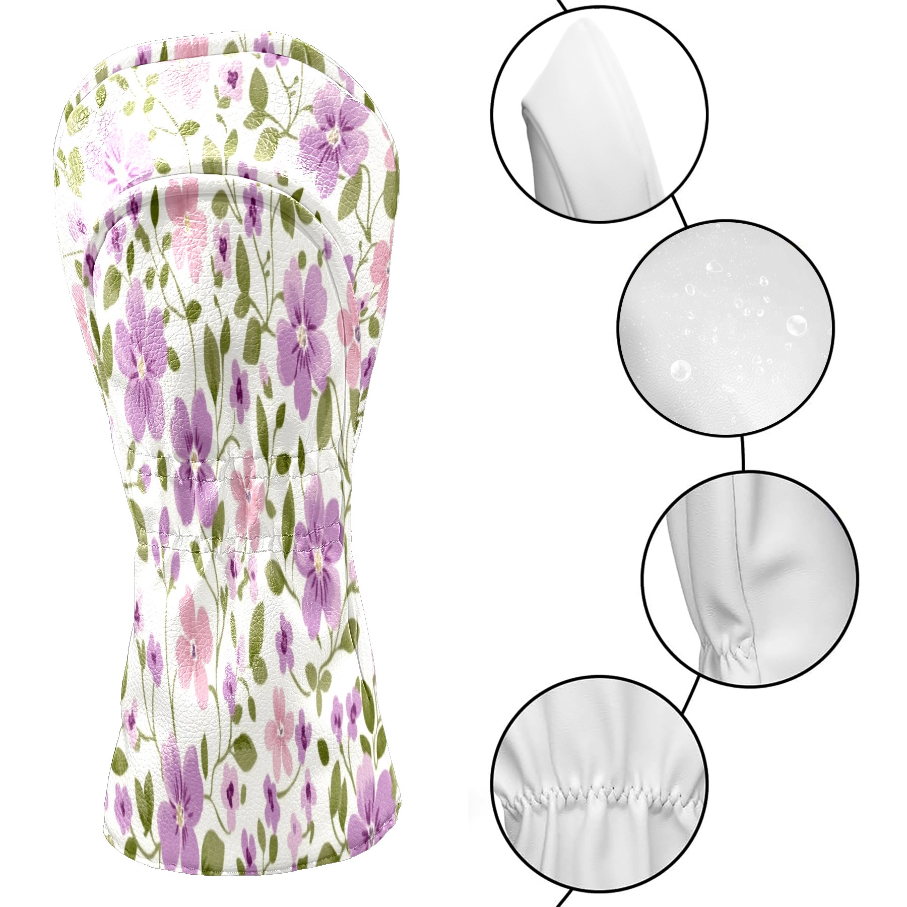 Professional Golf Club Head Covers Set for Fairway Woods and Hybrid - Waterproof Design with Stretchable Fit, Universal Club Protection for Men & Women (Small Purple Flowers)