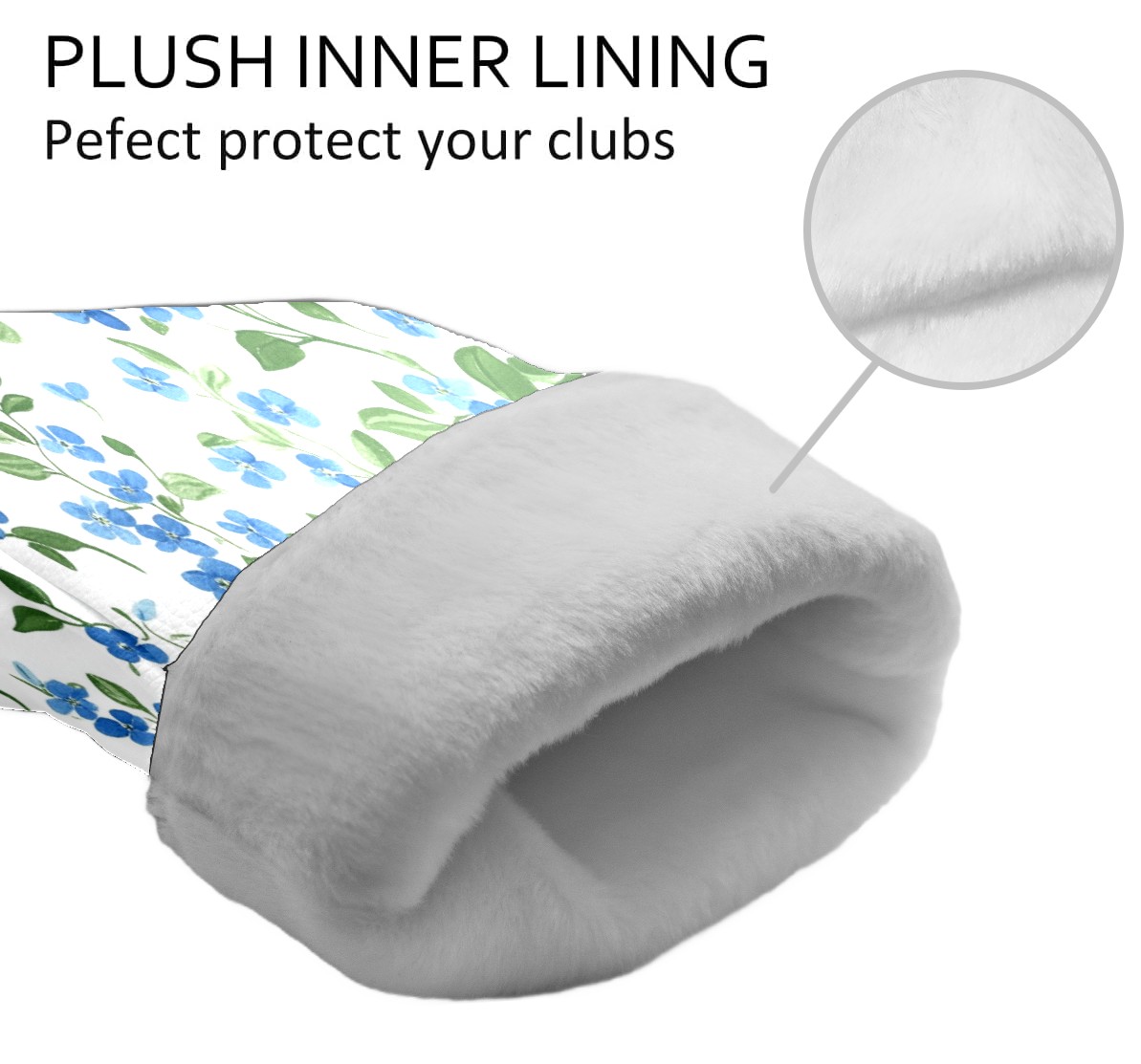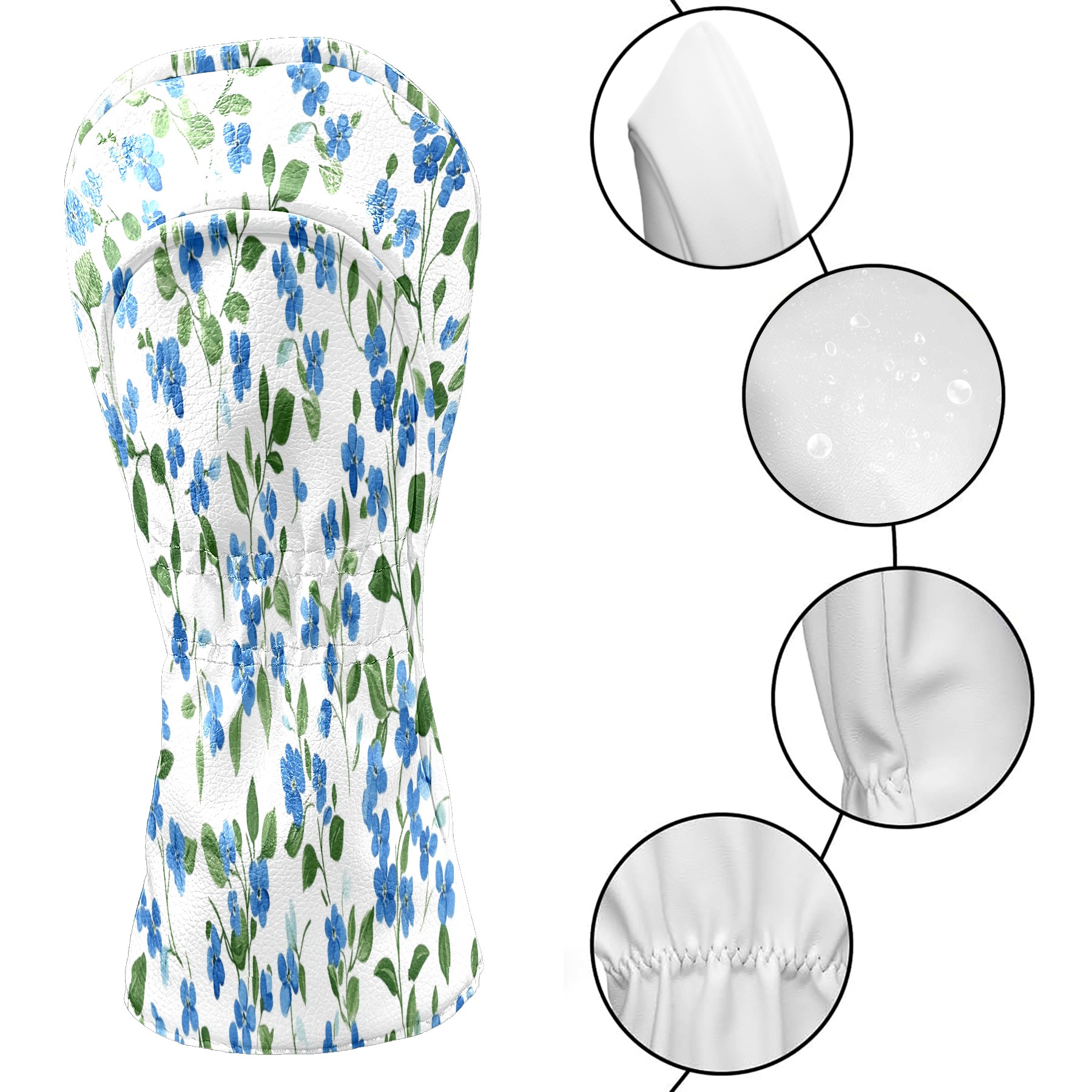 Professional Golf Club Head Covers Set for Fairway Woods and Hybrid - Waterproof Design with Stretchable Fit, Universal Club Protection for Men & Women (Blue Forget-me-not Pattern)