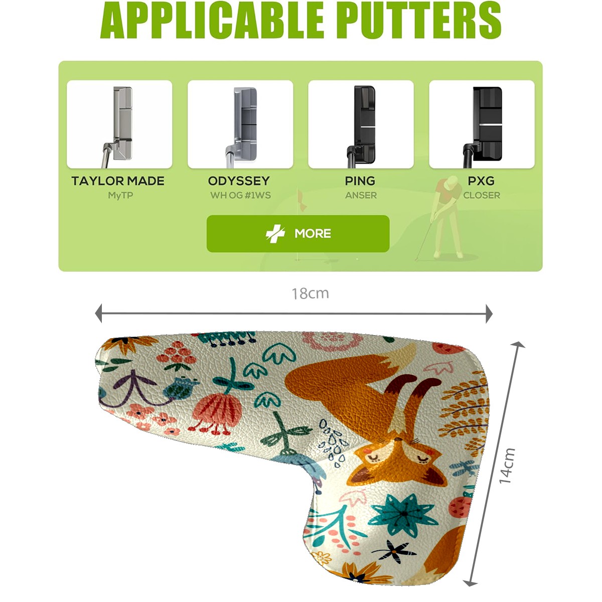 • Protect your golf clubs in style with our high-quality PU Leather Headcovers, combining durability and elegance for every golfer.Designed to fit most blade putters (14cm x 18cm).