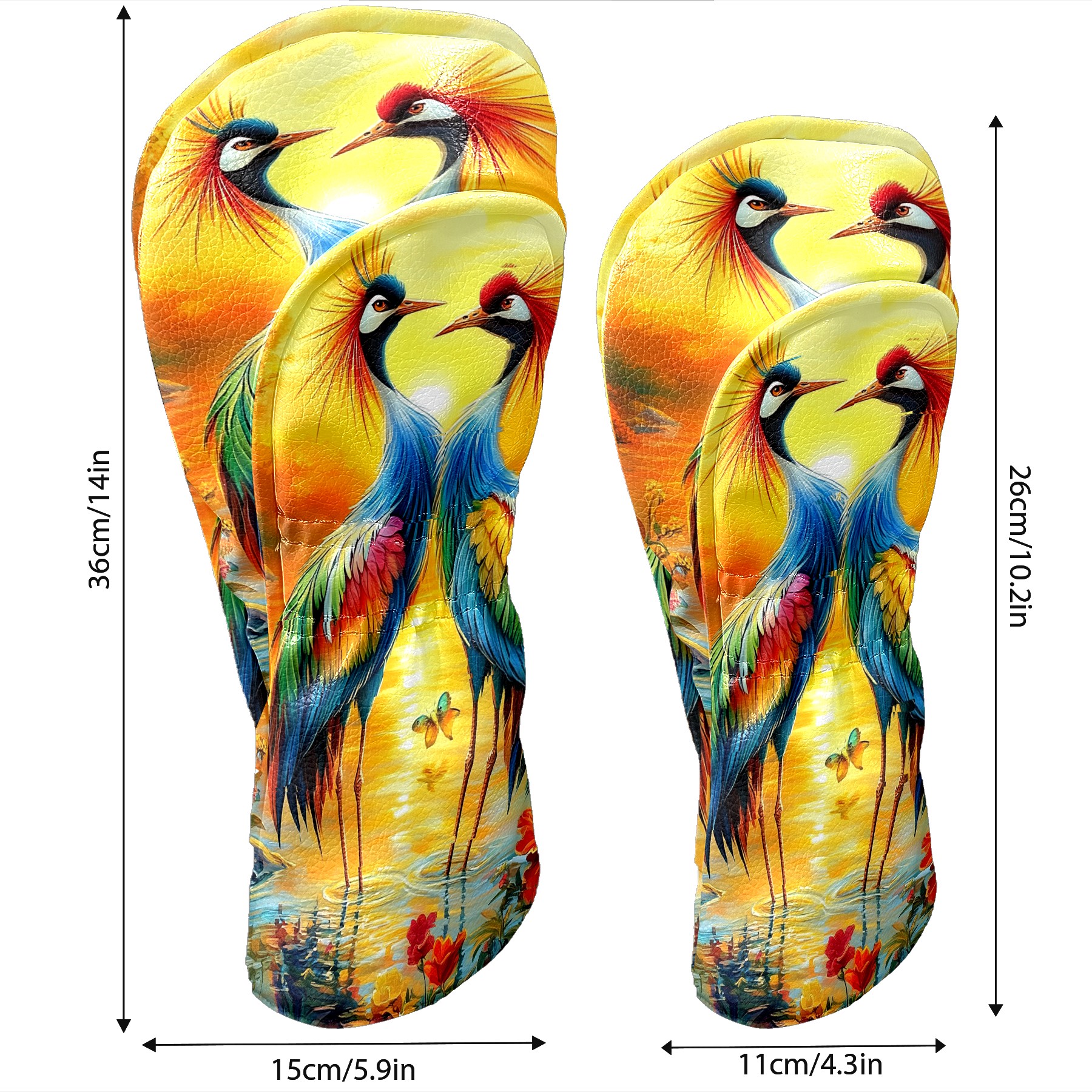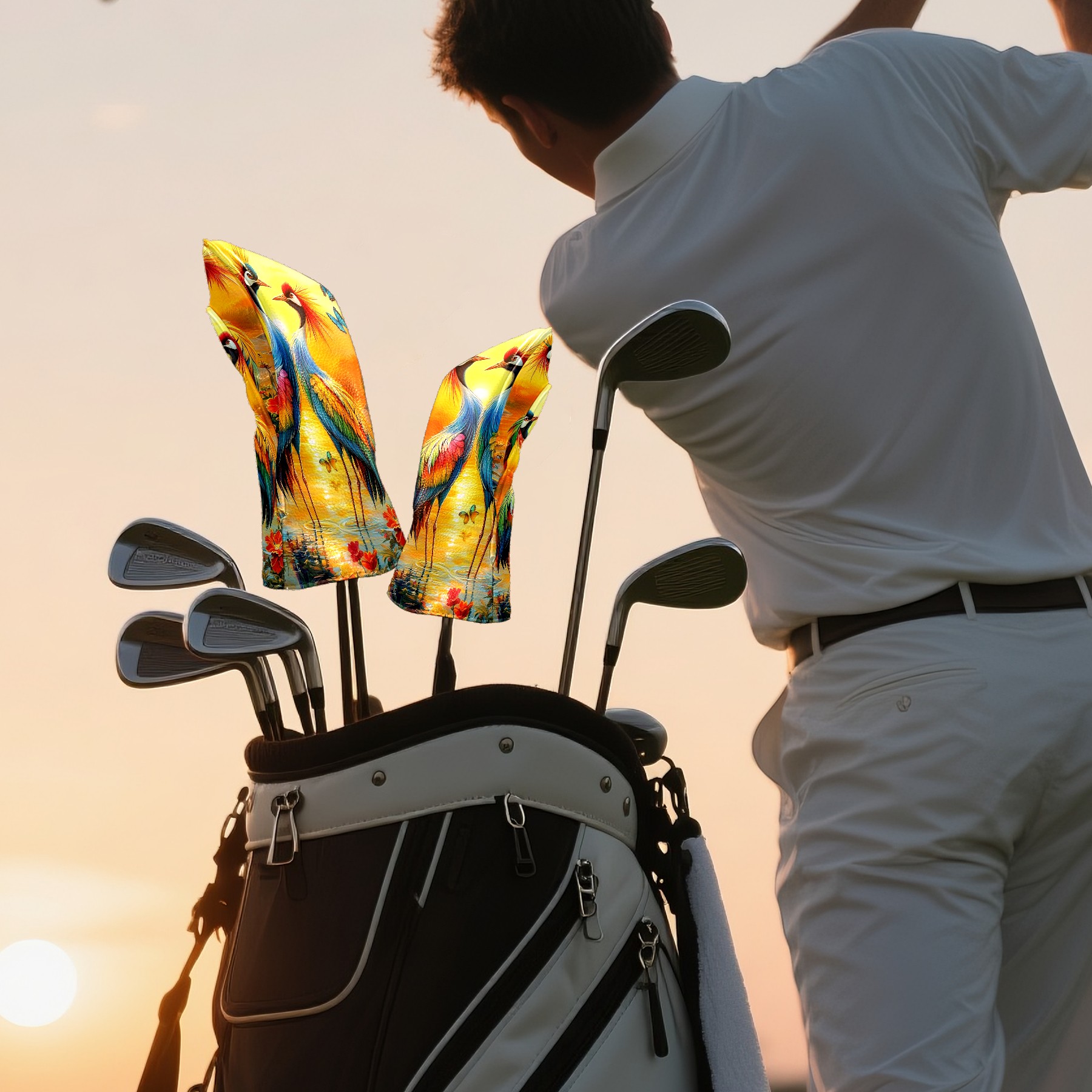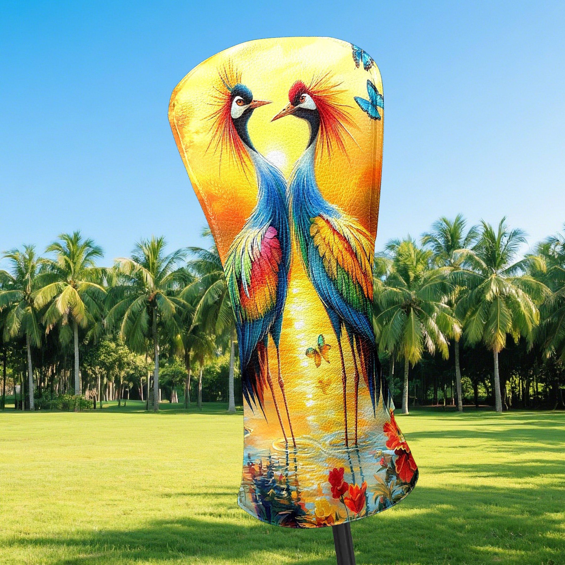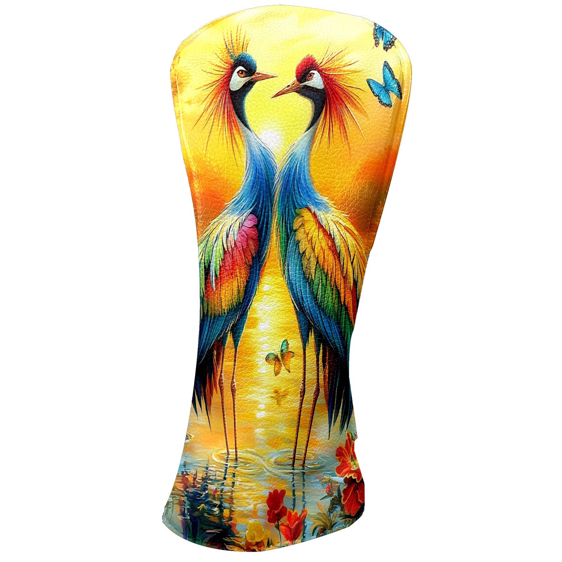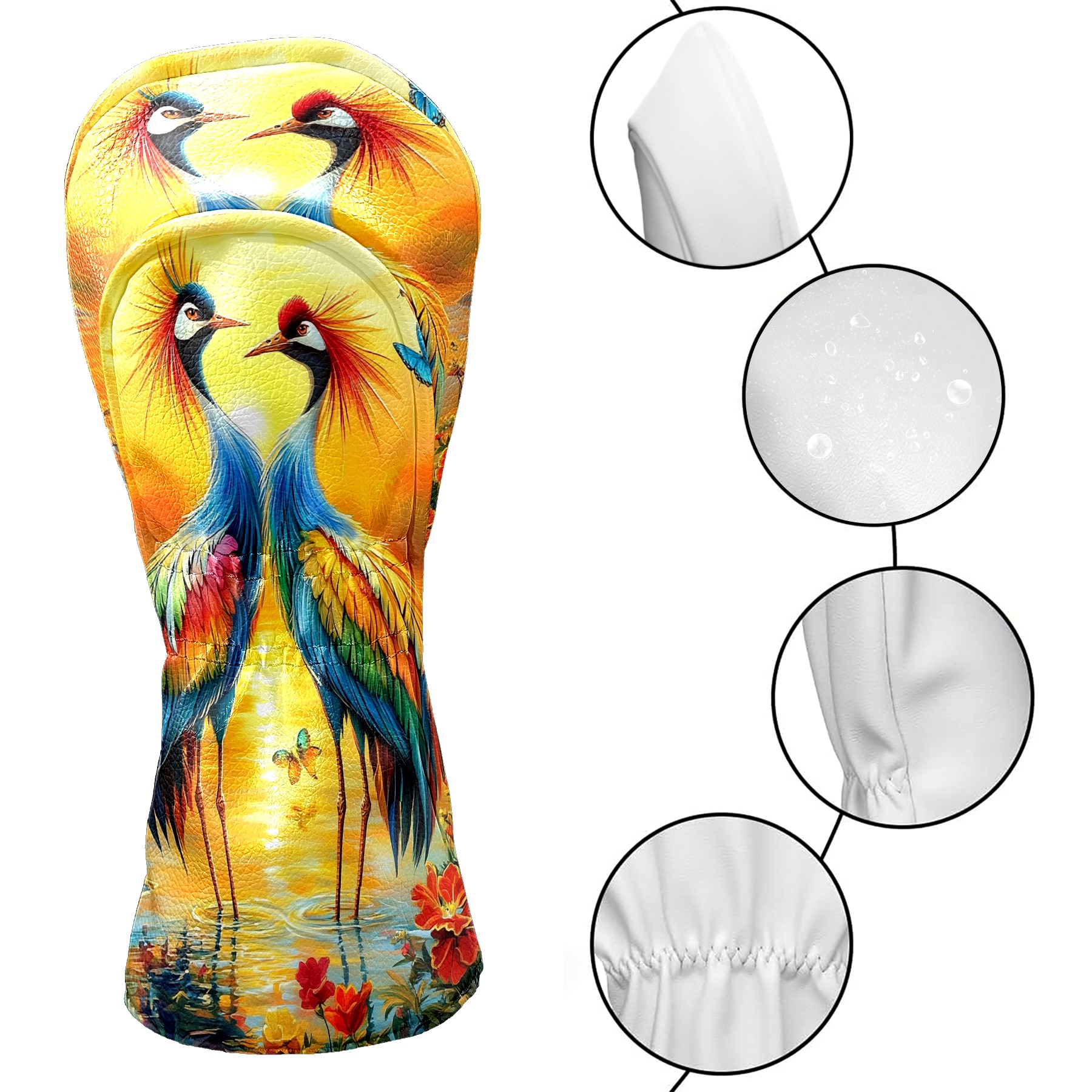 Golf Club Head Cover Premium Leather Driver Headcover, Golf Head Covers for Woods and Driver Waterproof Golf Headcovers with Anti-Scratch Lining for Men Women (Colorful Cranes)