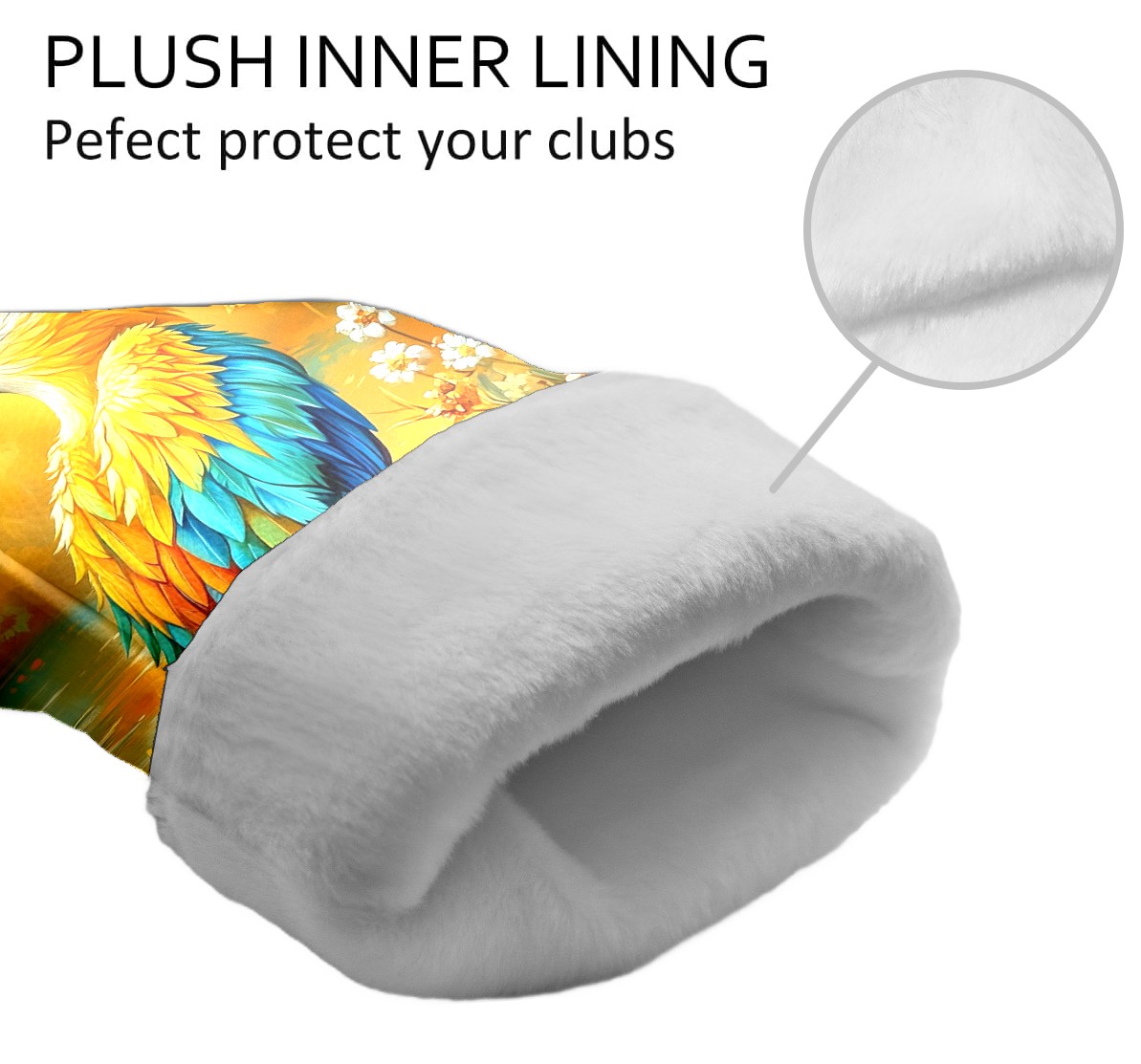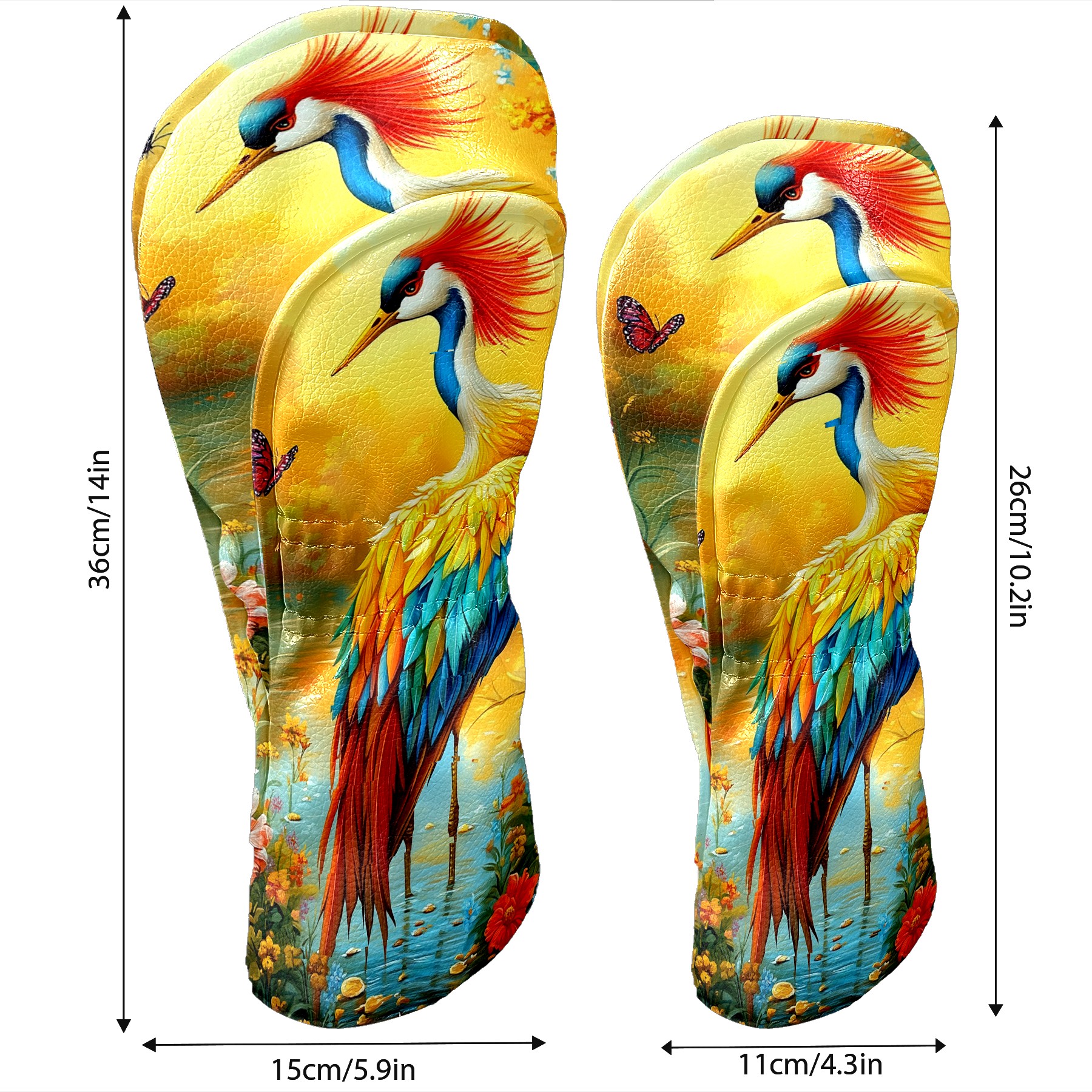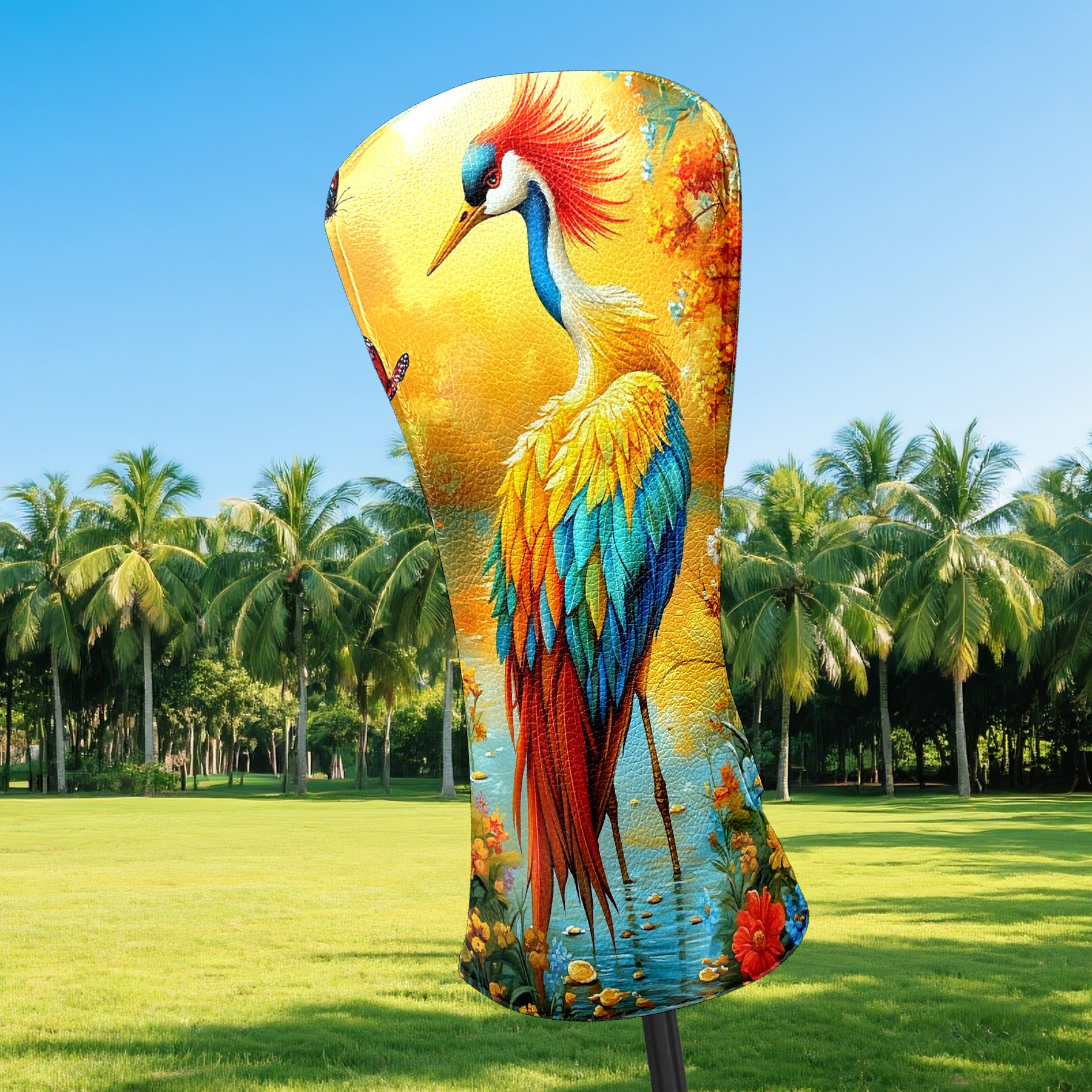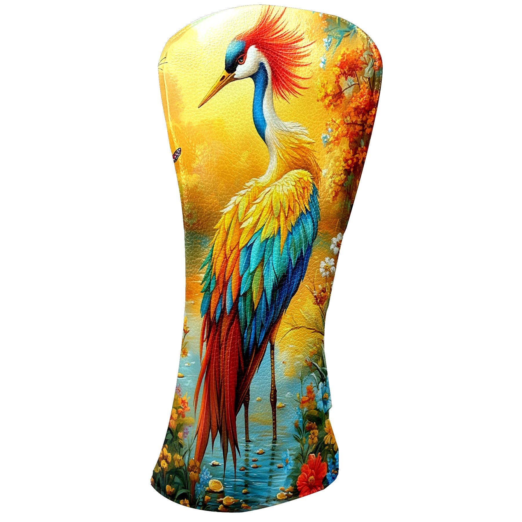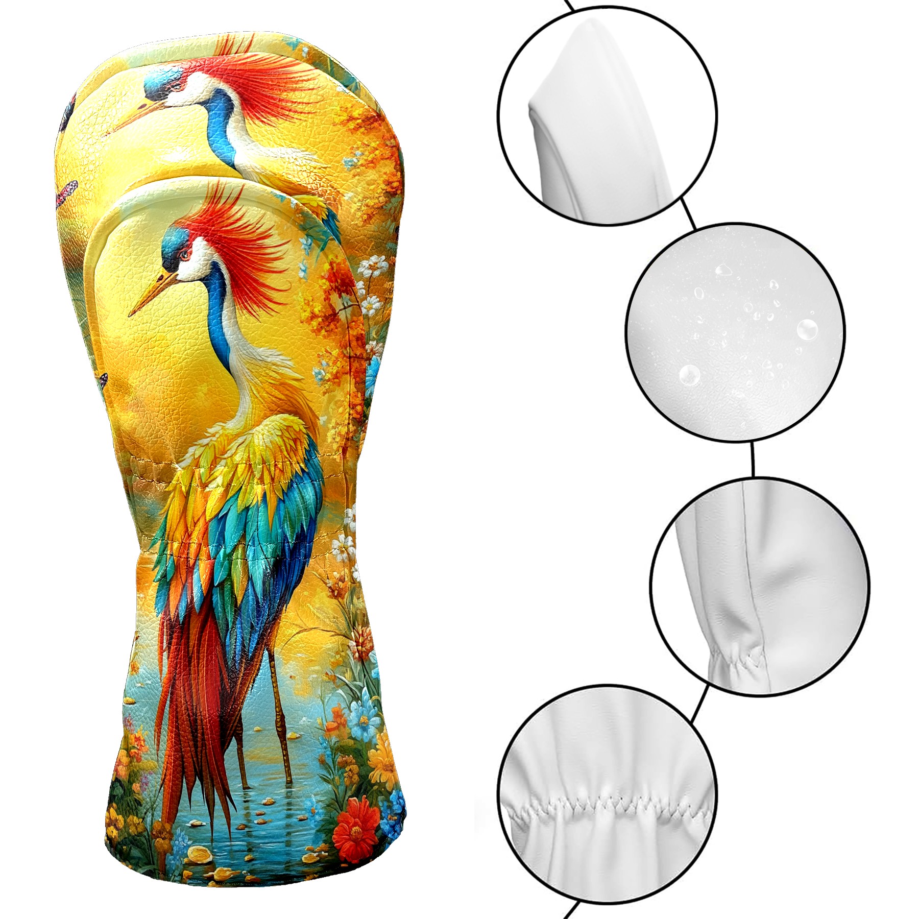Golf Club Head Cover Premium Leather Driver Headcover, Golf Head Covers for Woods and Driver Waterproof Golf Headcovers with Anti-Scratch Lining for Men Women (Colorful Crane)