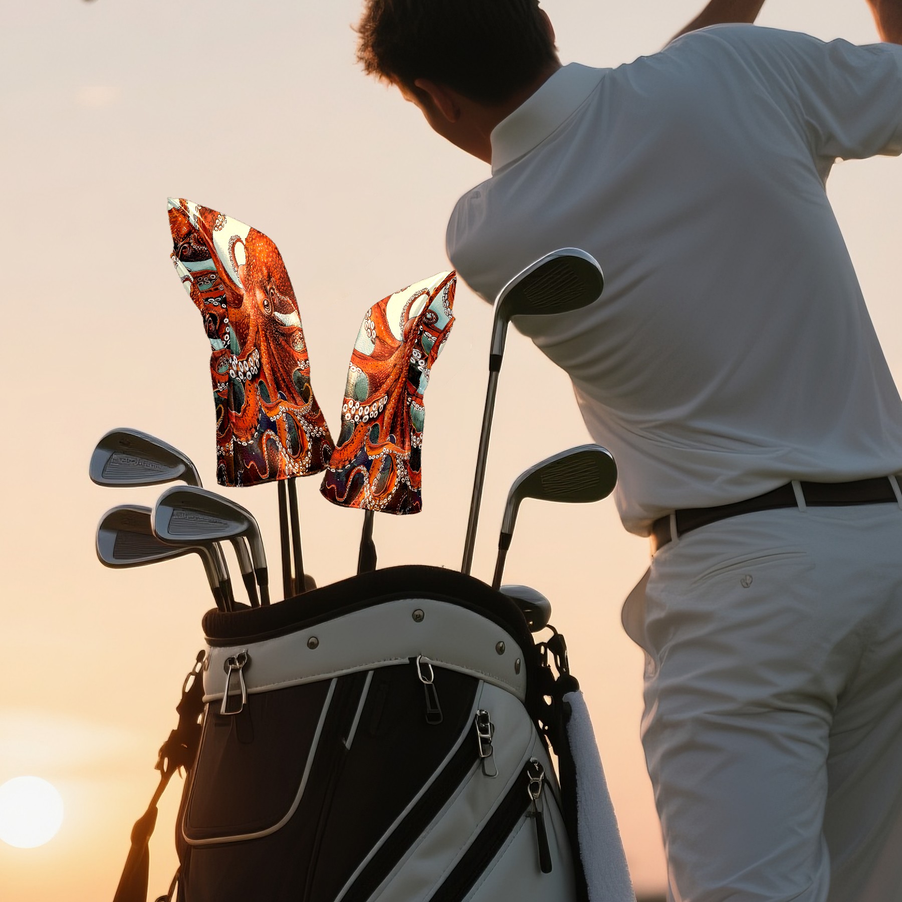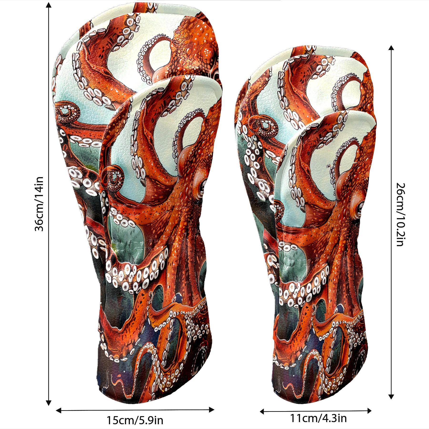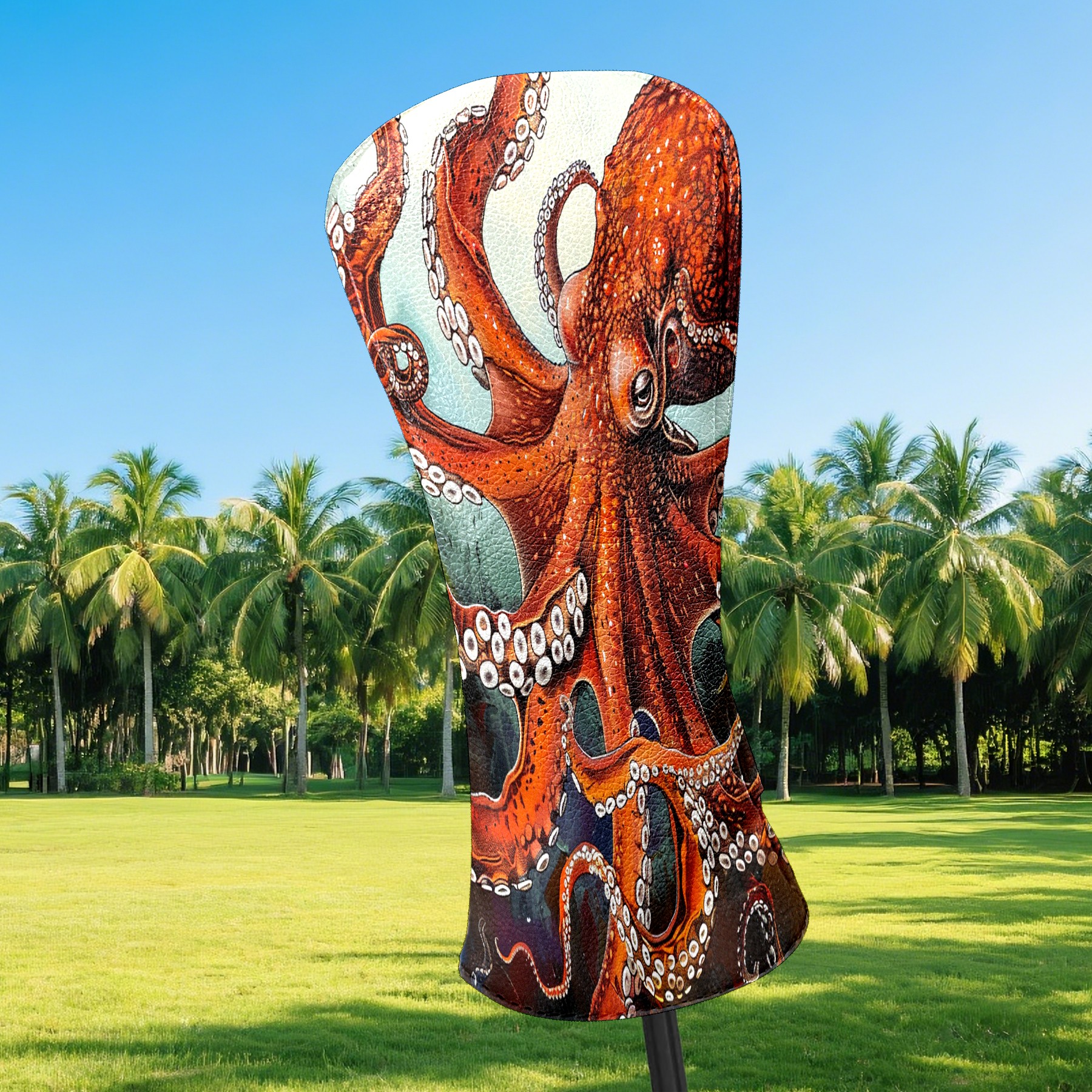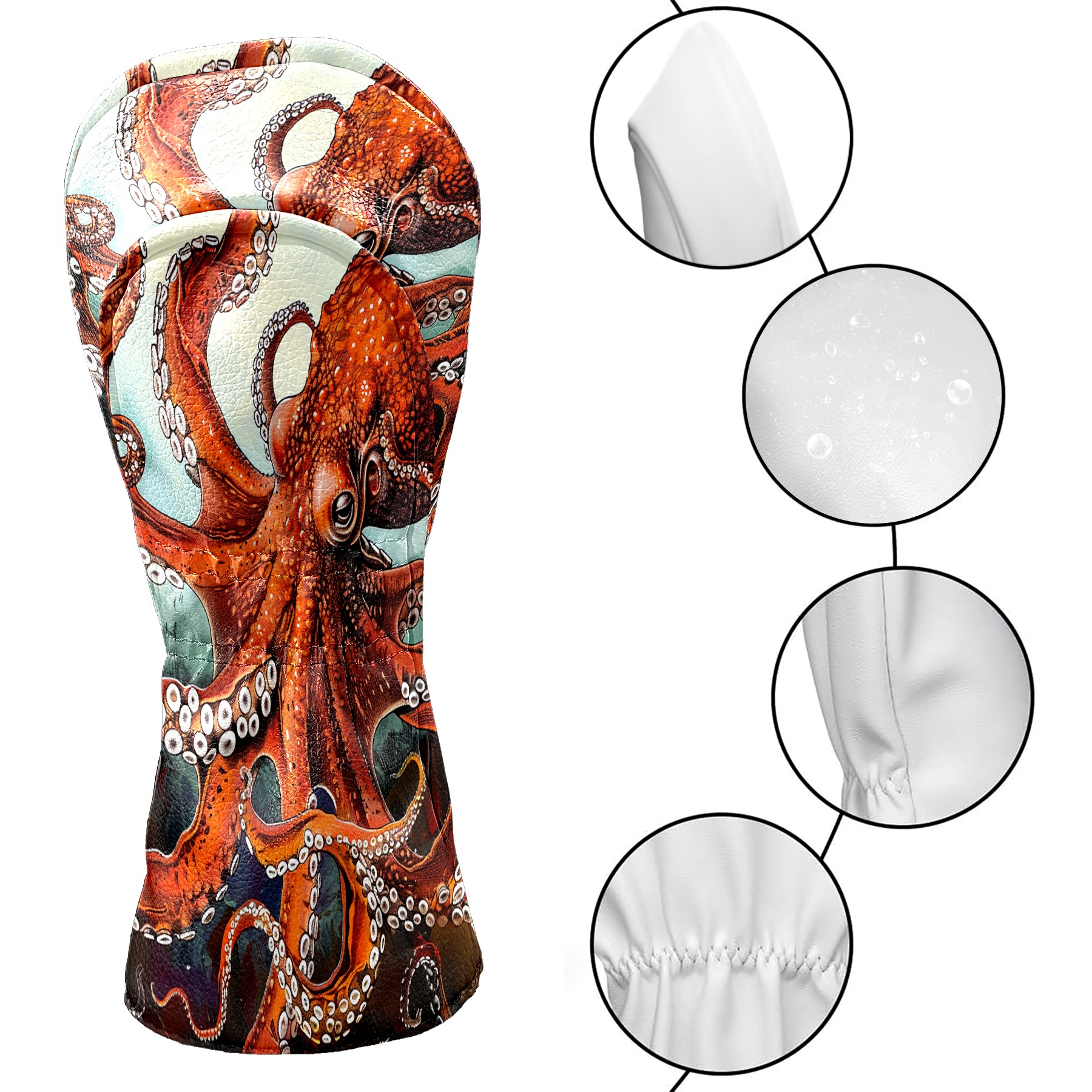 Golf Club Head Cover Premium Leather Driver Headcover, Golf Head Covers for Woods and Driver Waterproof Golf Headcovers with Anti-Scratch Lining for Men Women (Red Octopus)