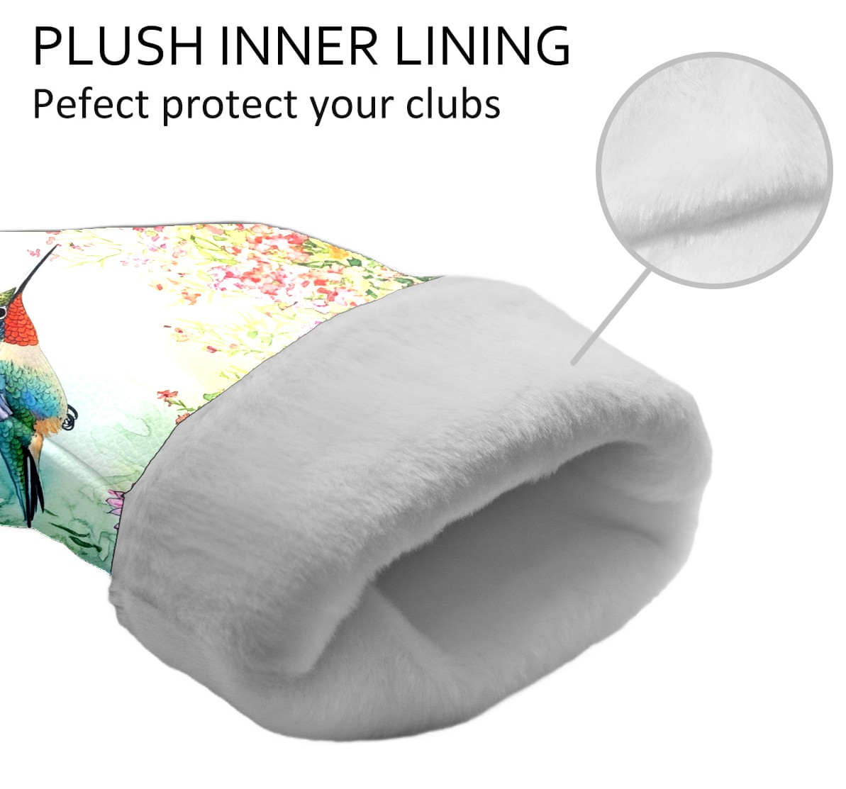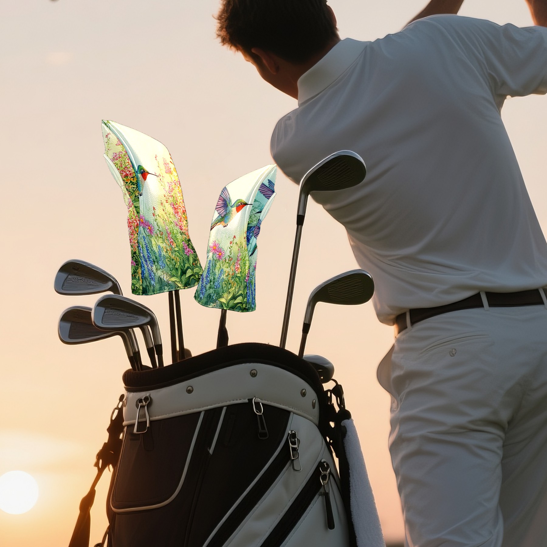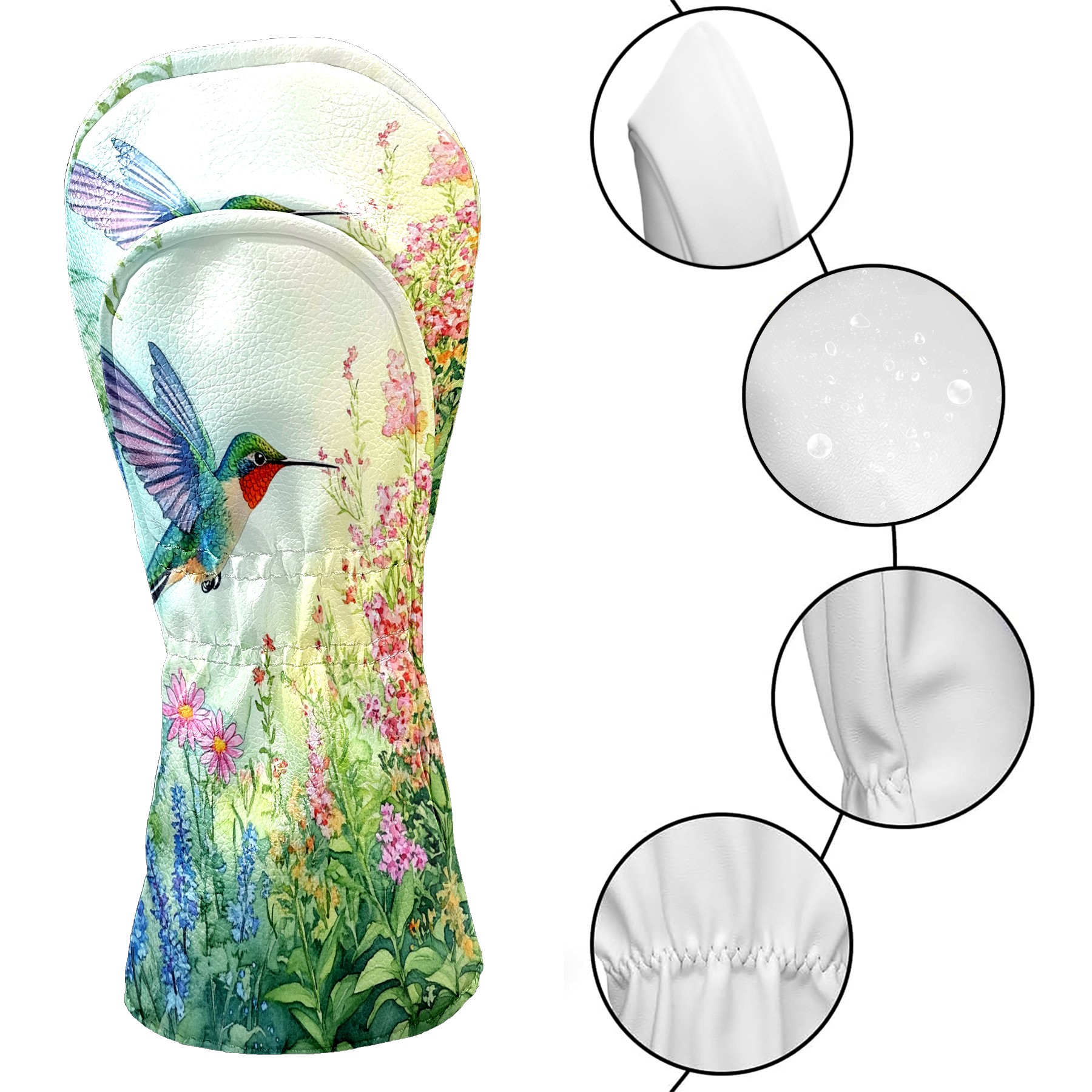 Golf Club Head Cover Premium Leather Driver Headcover, Golf Head Covers for Woods and Driver Waterproof Golf Headcovers with Anti-Scratch Lining for Men Women (Watercolor Hummingbird)