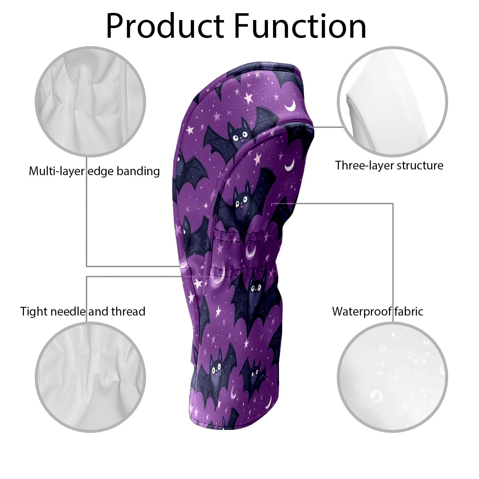 Professional Golf Club Head Covers Set for Fairway Woods and Hybrid - Waterproof Design with Stretchable Fit, Universal Club Protection for Men & Women (Bats With Tiny Stars)
