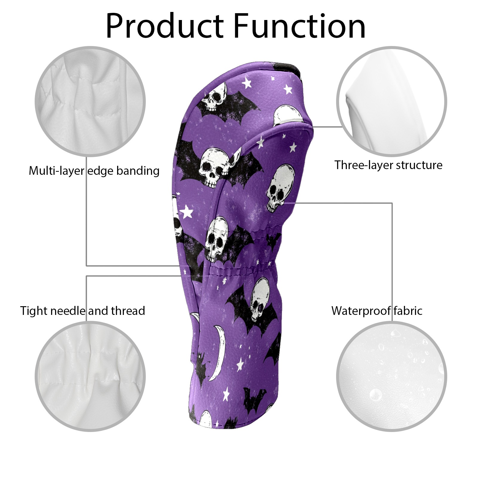 Professional Golf Club Head Covers Set for Fairway Woods and Hybrid - Waterproof Design with Stretchable Fit, Universal Club Protection for Men & Women (Bats And Skulls)