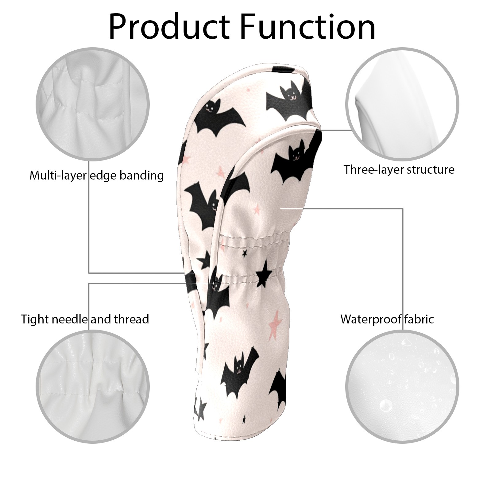 Professional Golf Club Head Covers Set for Fairway Woods and Hybrid - Waterproof Design with Stretchable Fit, Universal Club Protection for Men & Women (Black Bats And Stars)