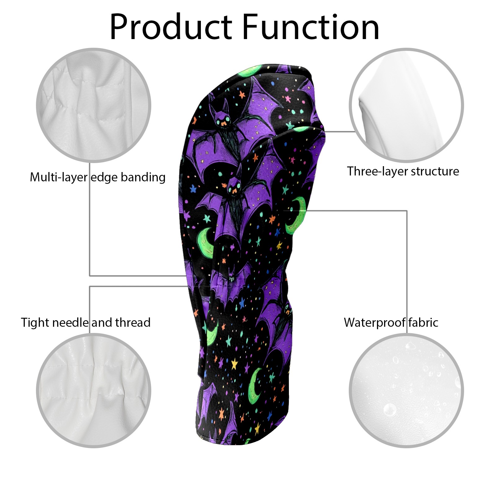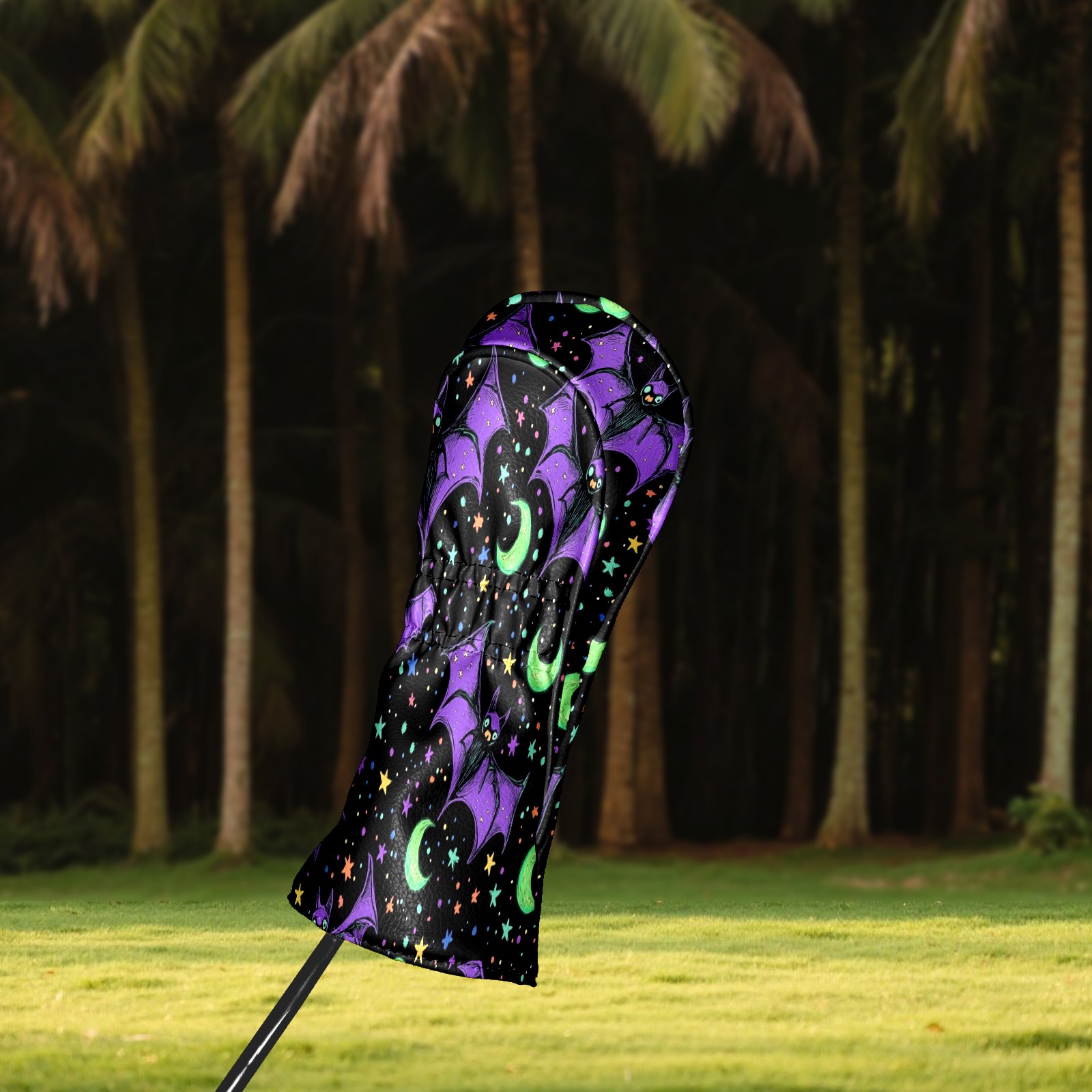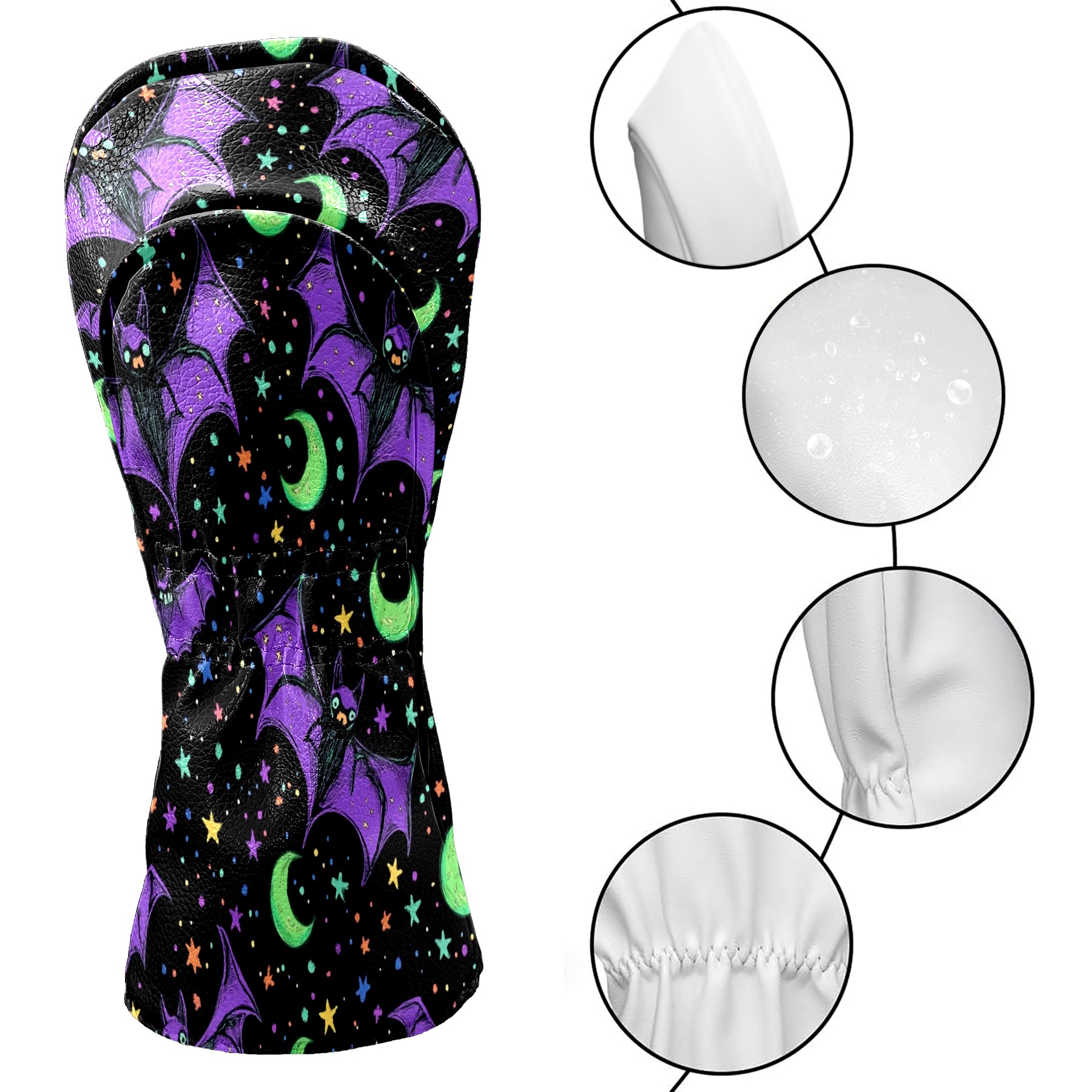 Professional Golf Club Head Covers Set for Fairway Woods and Hybrid - Waterproof Design with Stretchable Fit, Universal Club Protection for Men & Women (Bats And Green Moons)
