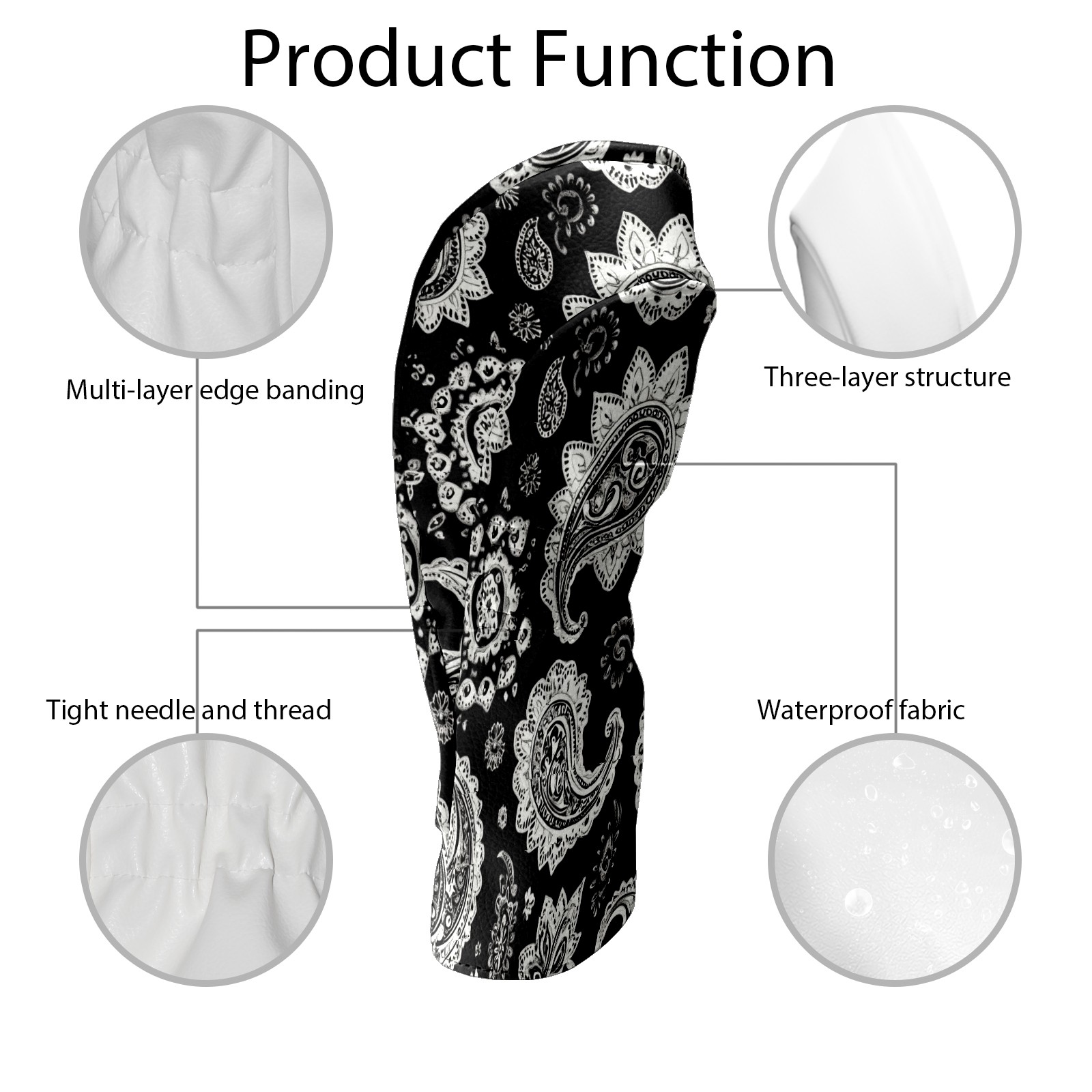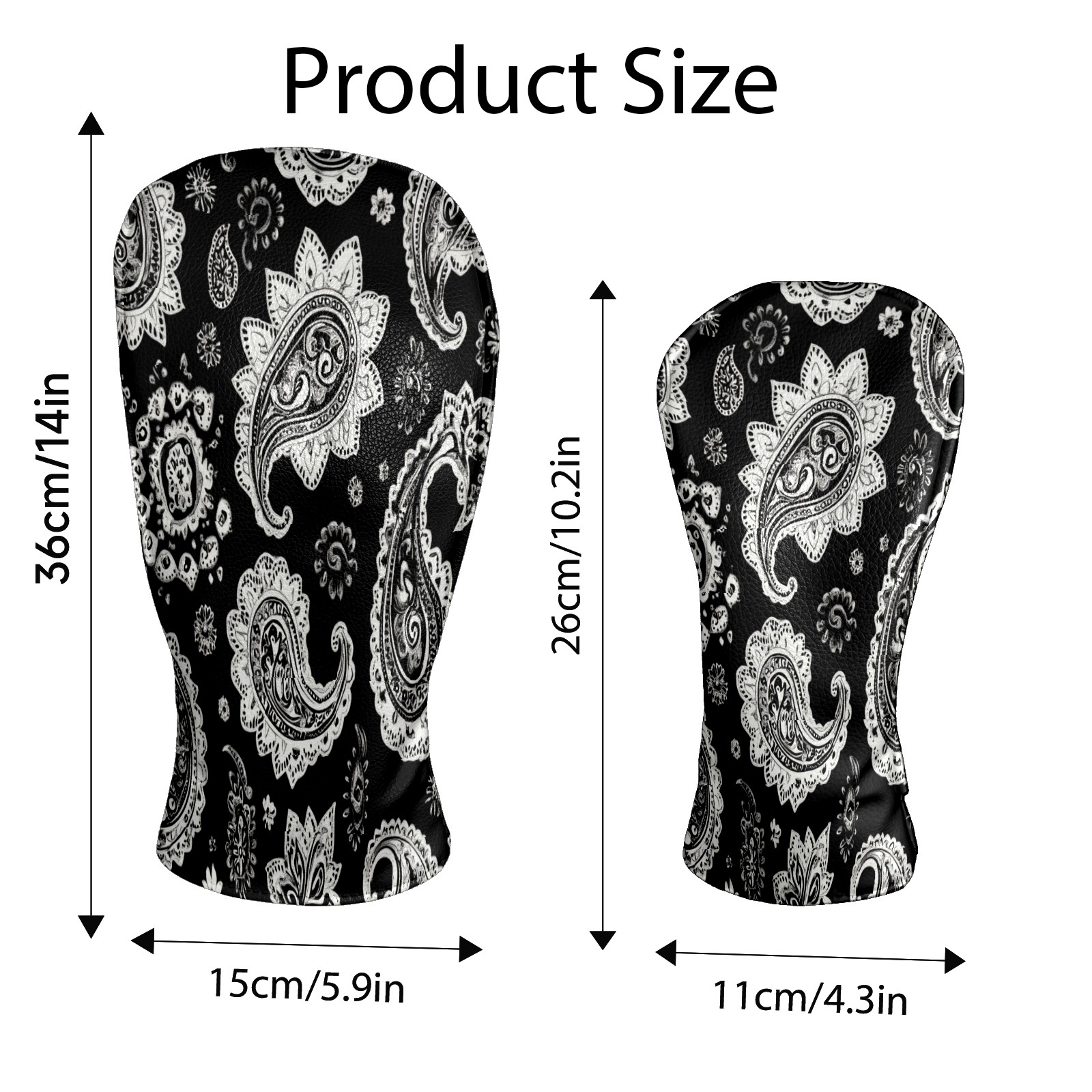 Professional Golf Club Head Covers Set for Fairway Woods and Hybrid - Waterproof Design with Stretchable Fit, Universal Club Protection for Men & Women (Black And White Paisley)